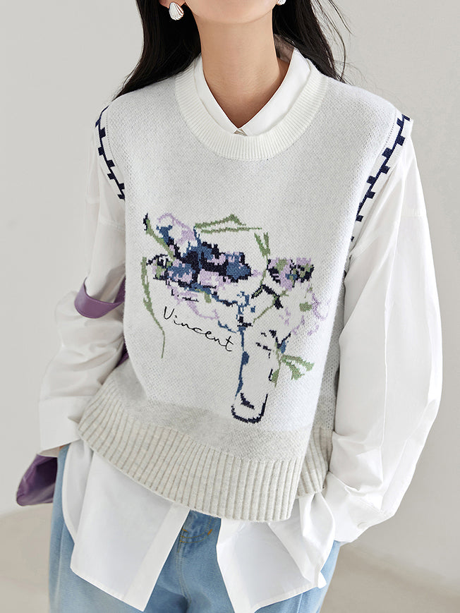 メタルボタンニットベスト+キャンディースリーブシャツ 3色入