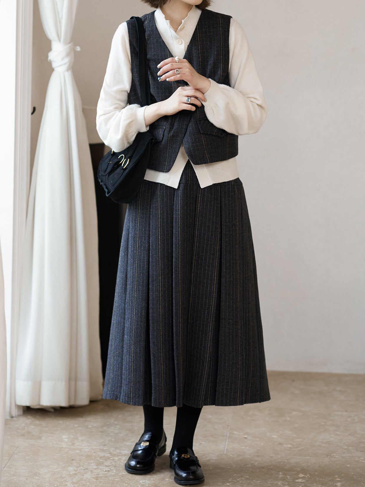 ・同素材で作ったスカートと合わせてセットアップとして着用いただけます。