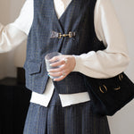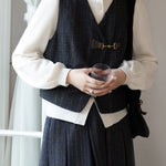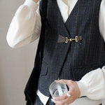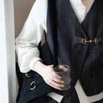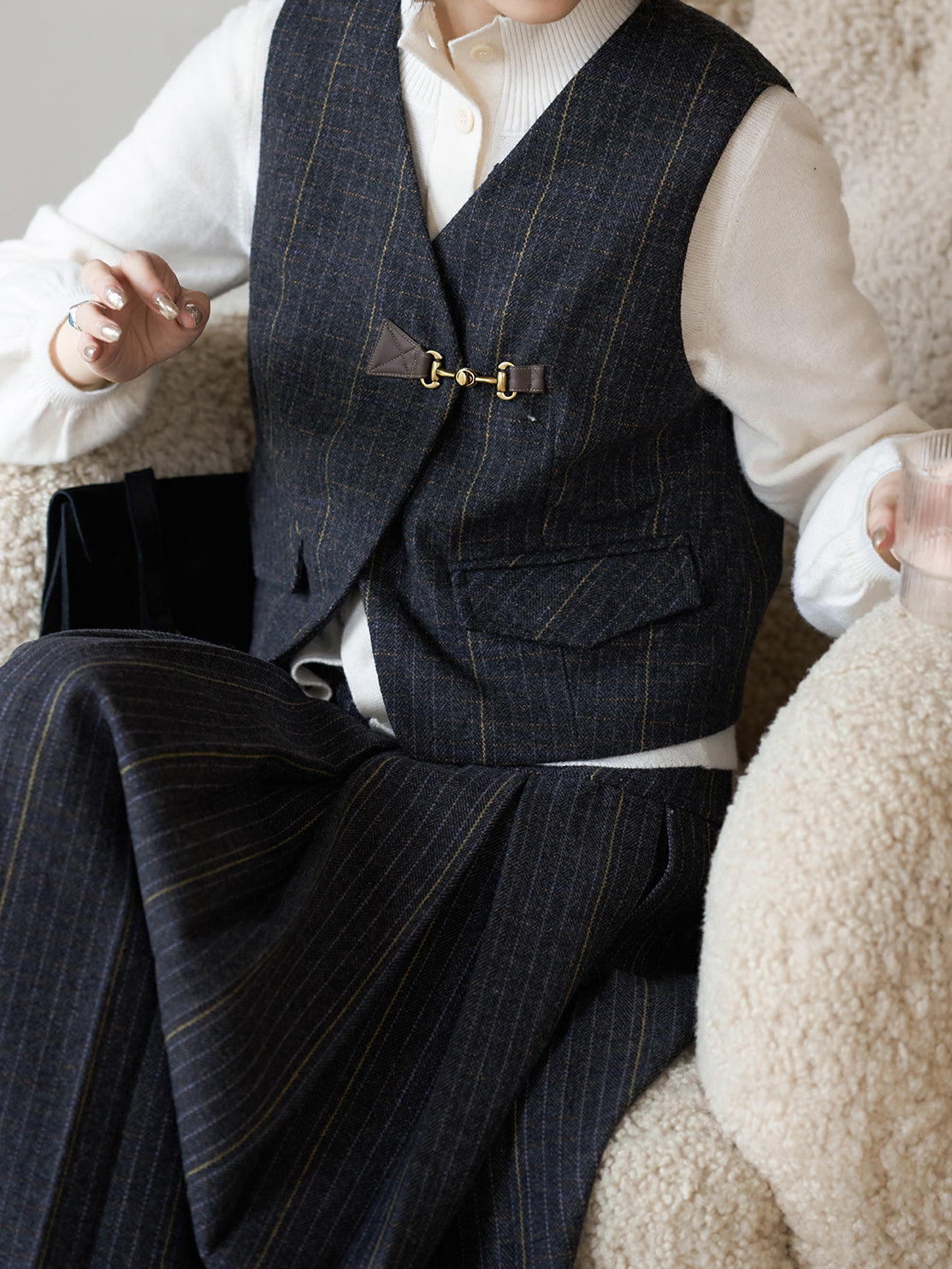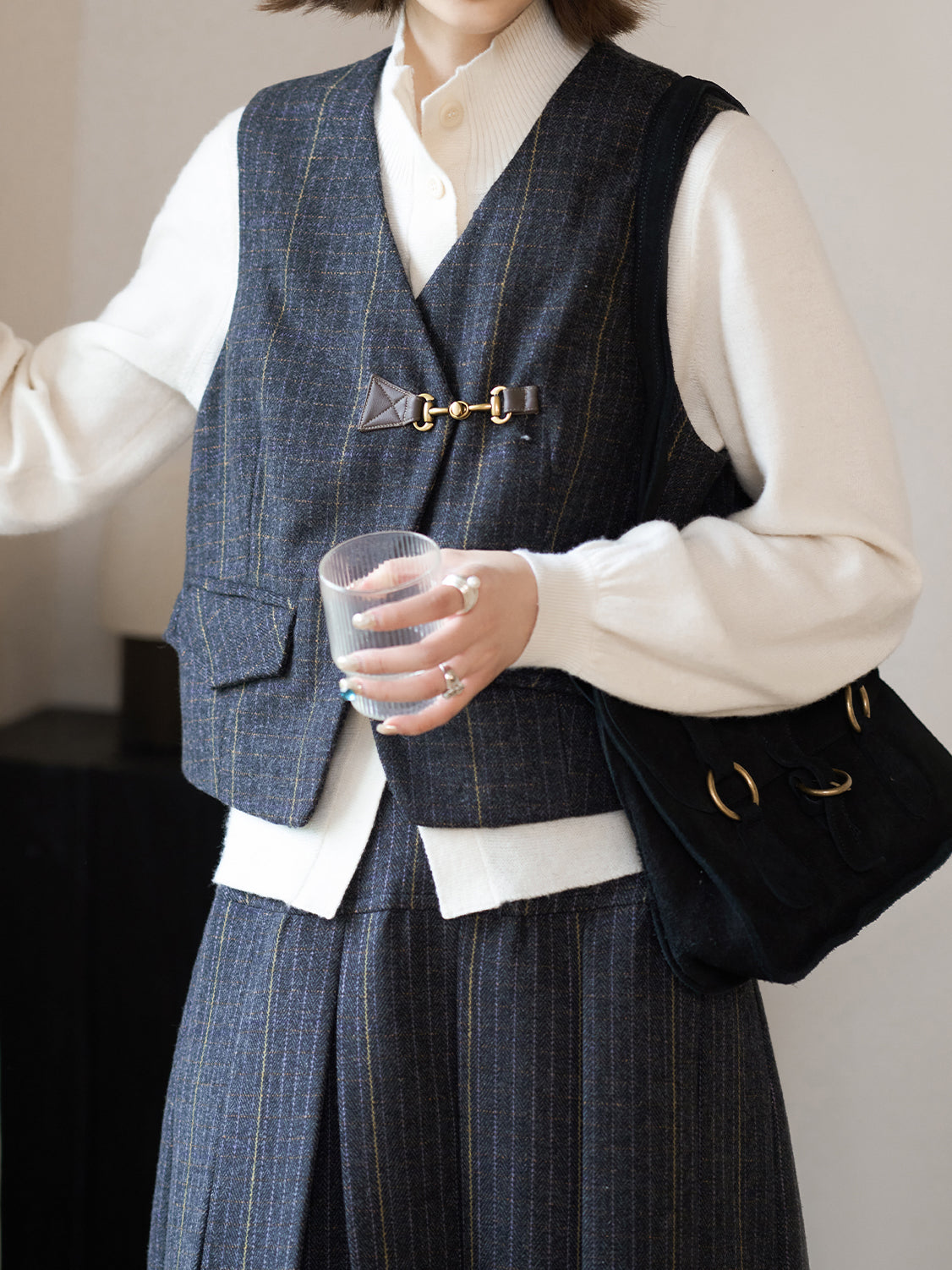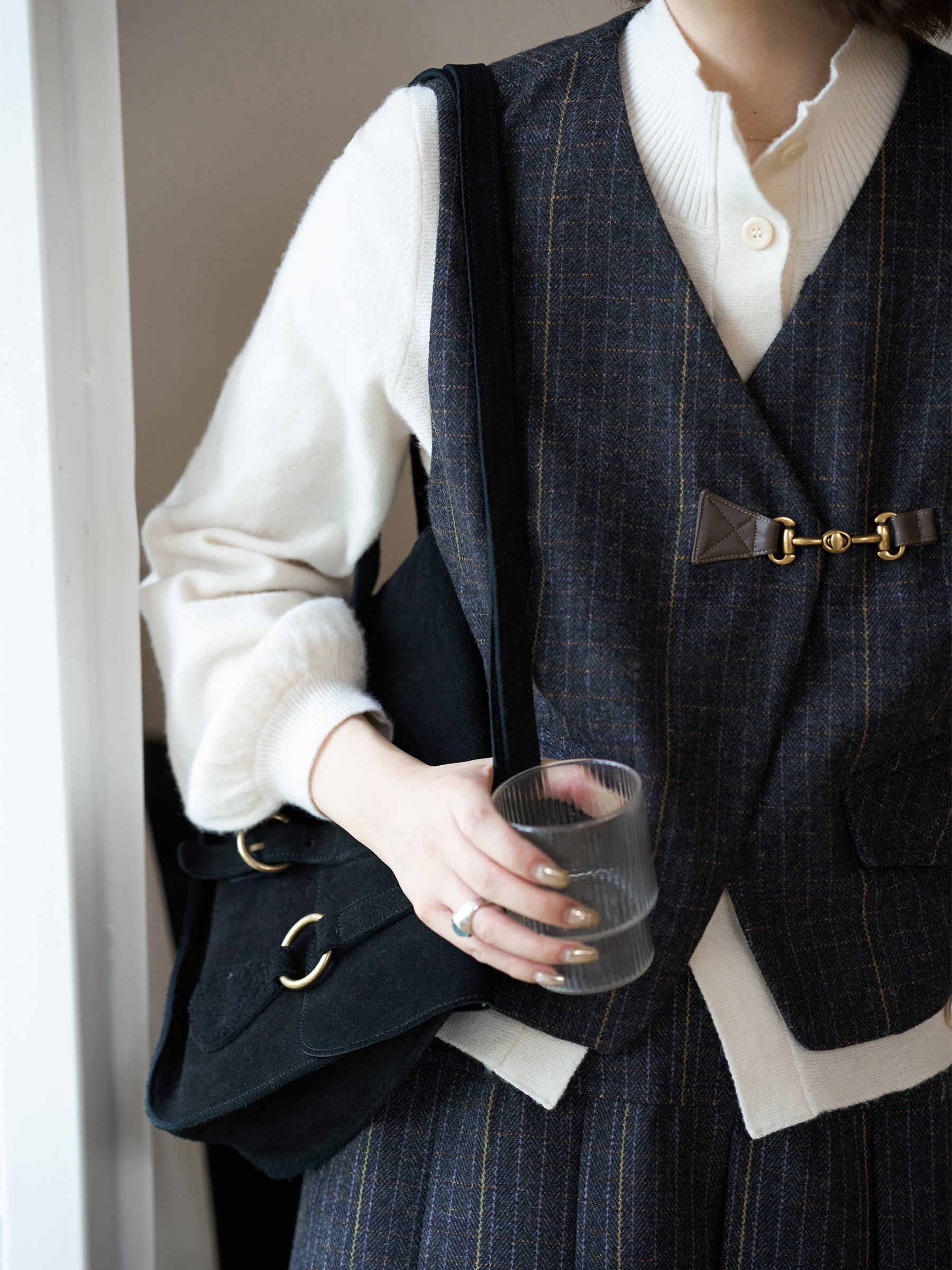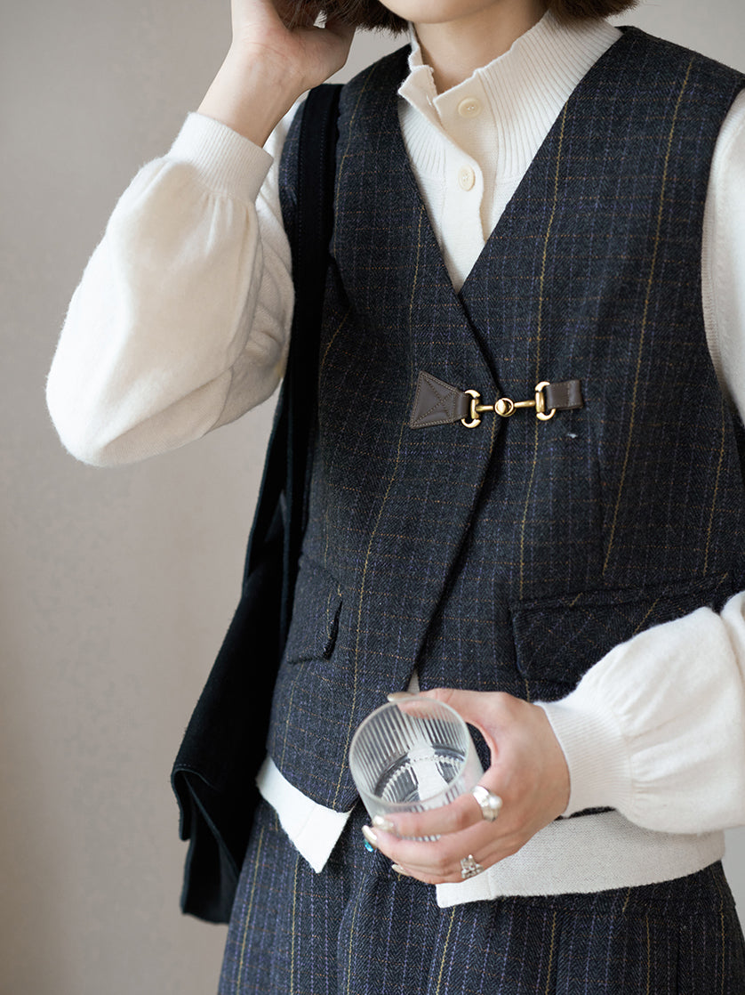 きちんと感を漂わせビットをいかし、大人の上品さが薫るチェックベスト。
