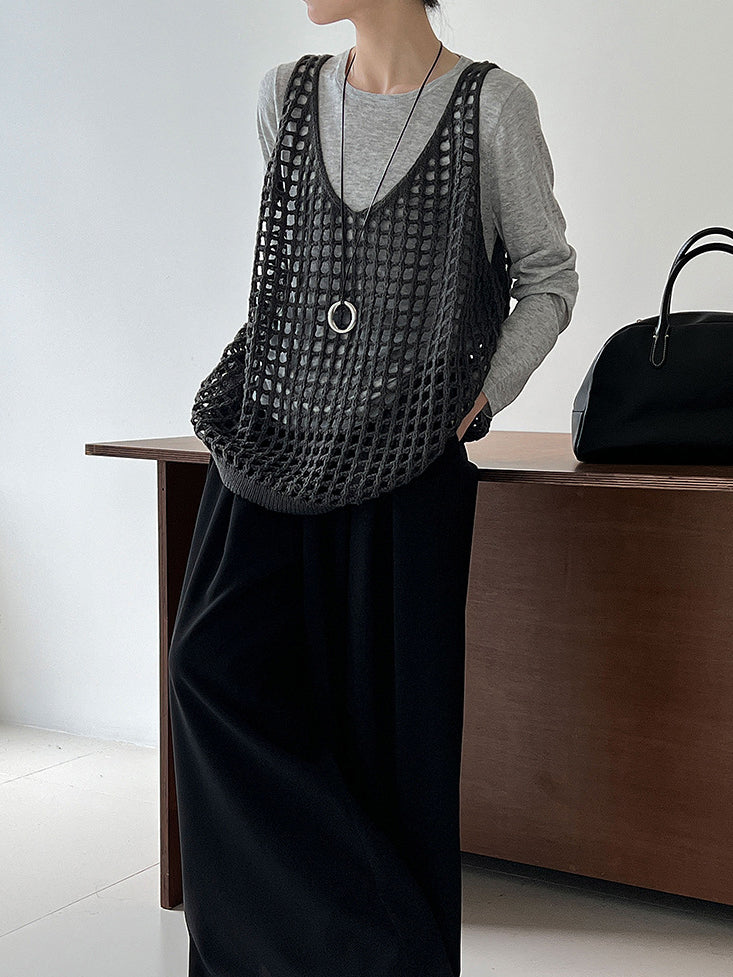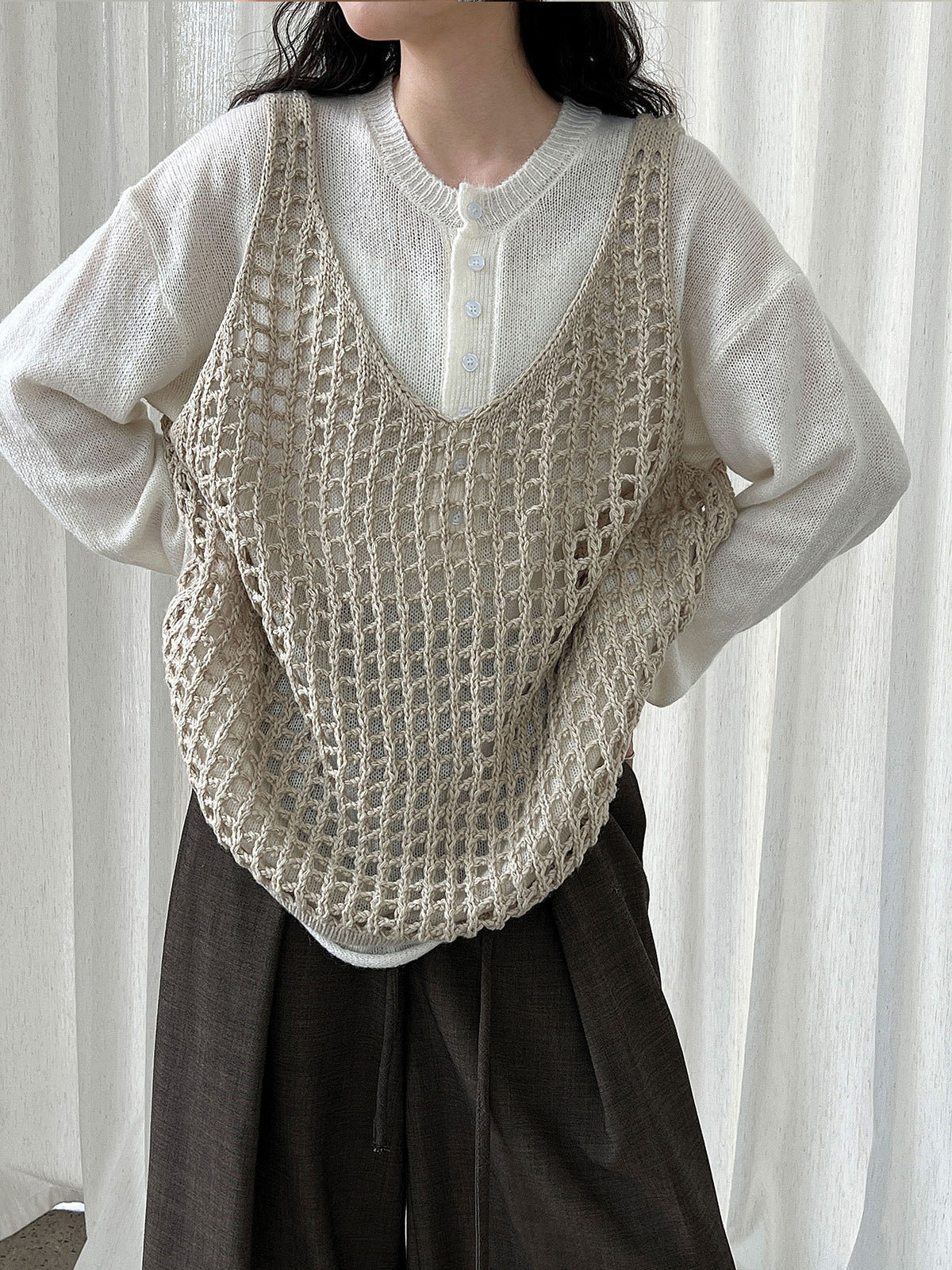 ☆細かな透かし編み柄が抜け感を演出し、軽やかな印象にも◎