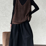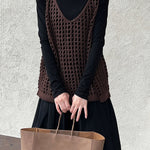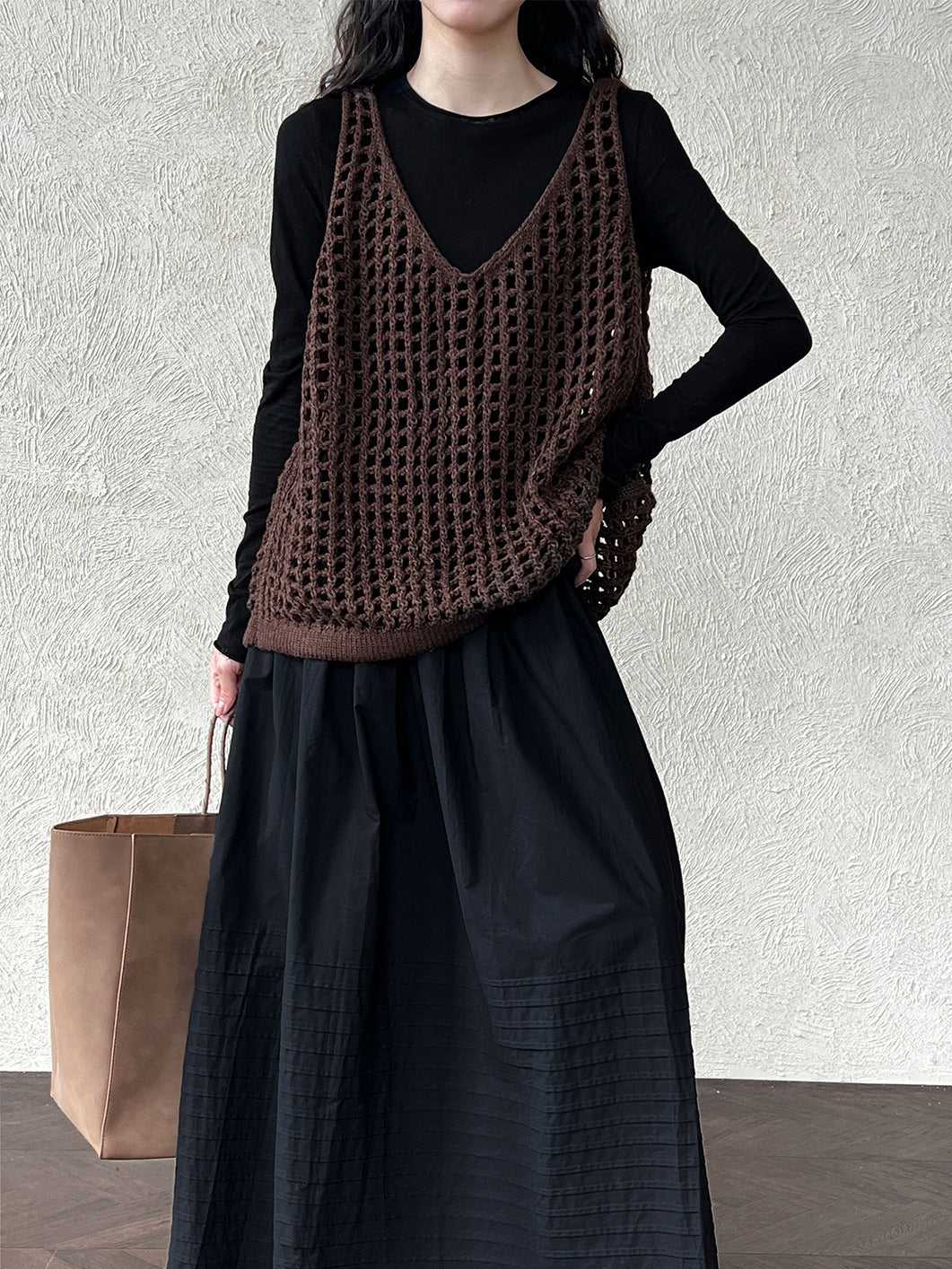・透かし編みの表情をいかした、シンプルなスタイリングがおすすめ。