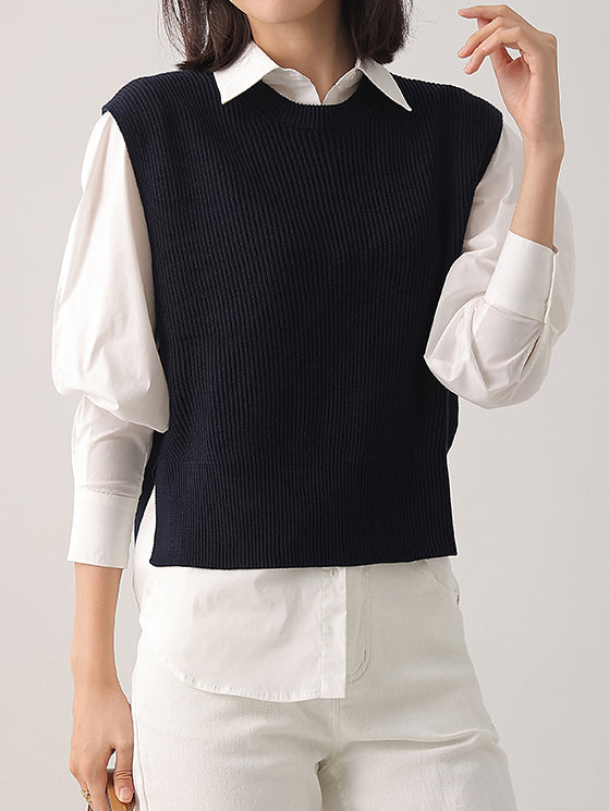 シンプルなディテールながら、クルーネックとサイドスリットでトレンド感のある1枚に仕上げています。