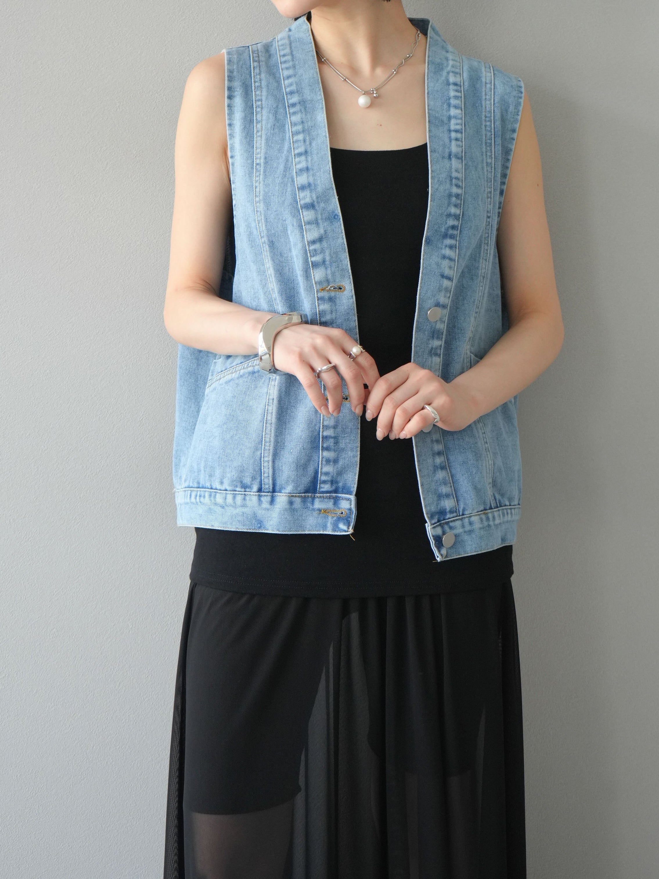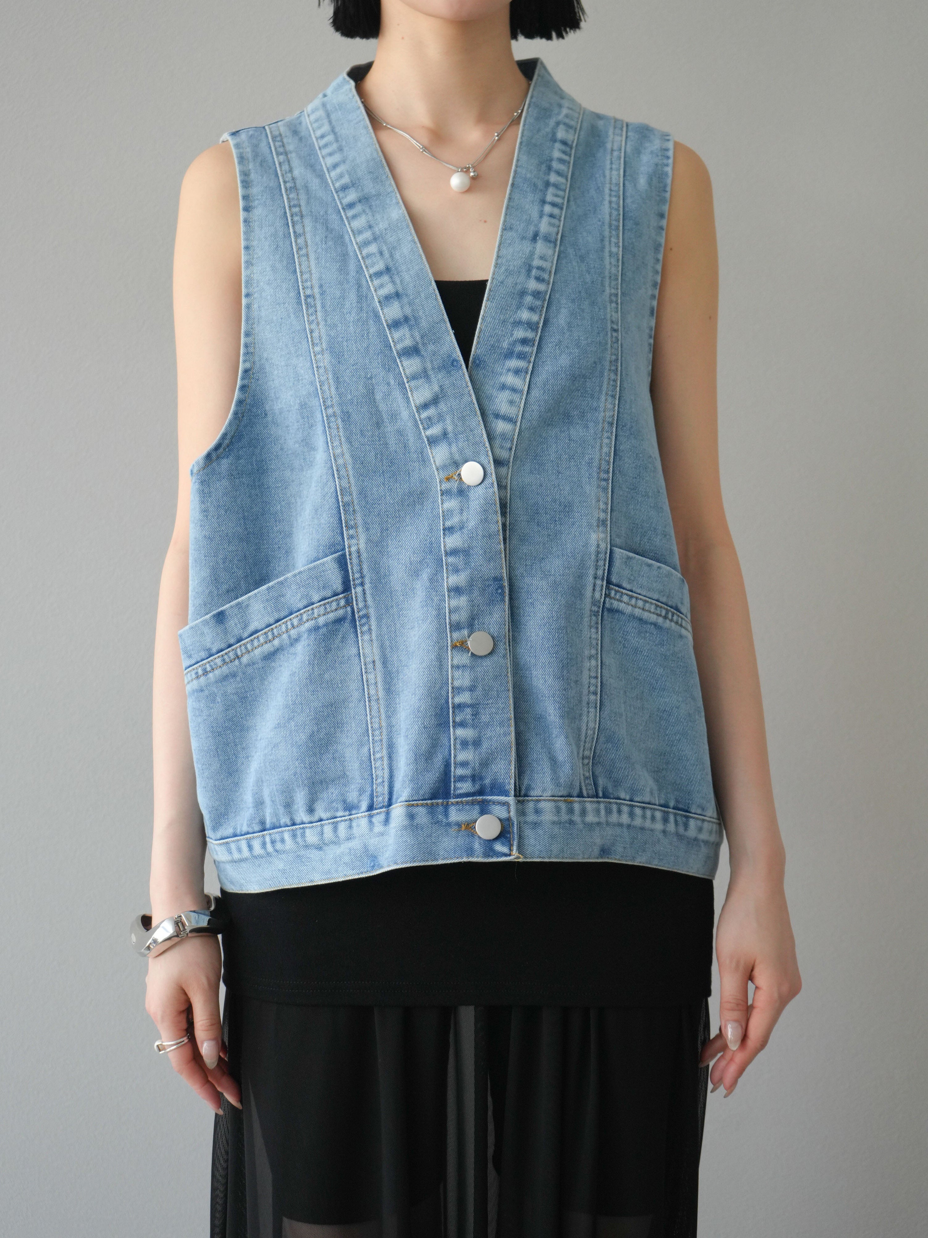Vネックデザインデニムベスト 2色入