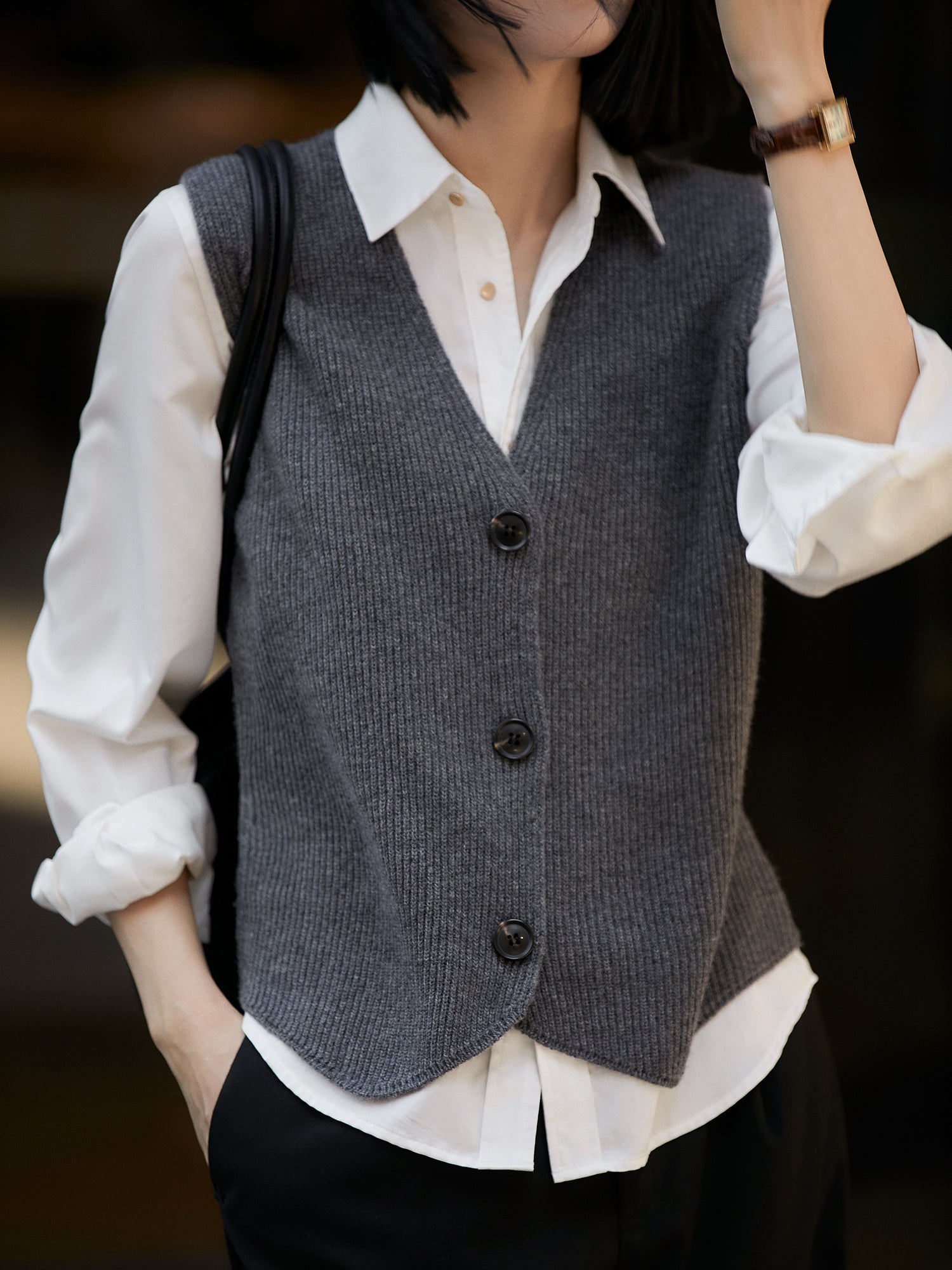 Vネックウッドボタンニットベスト 2色入