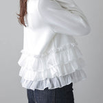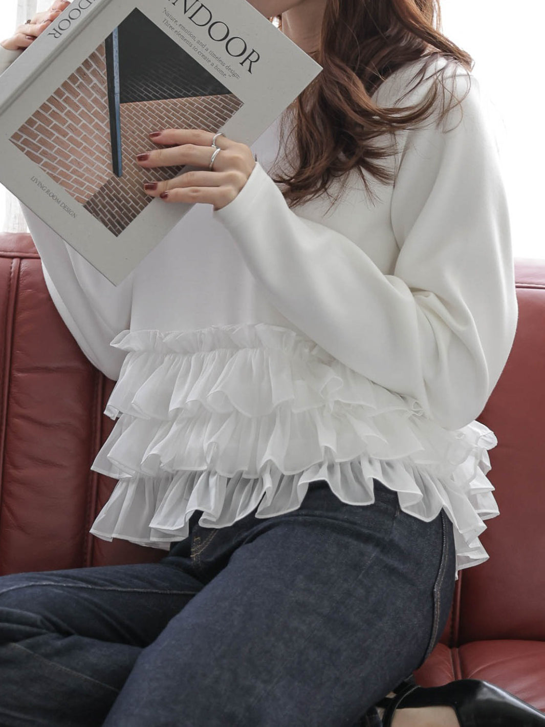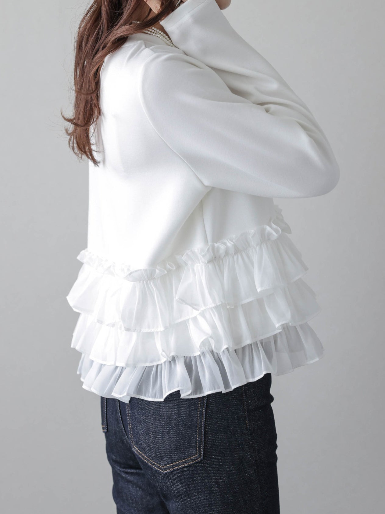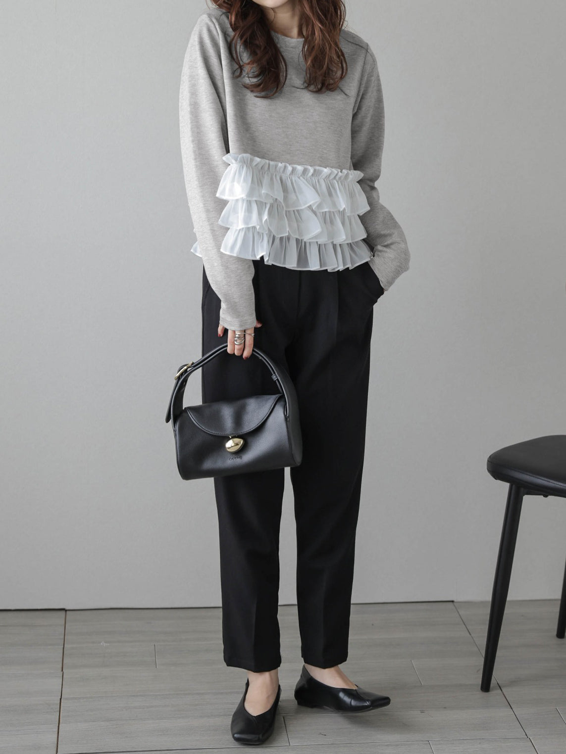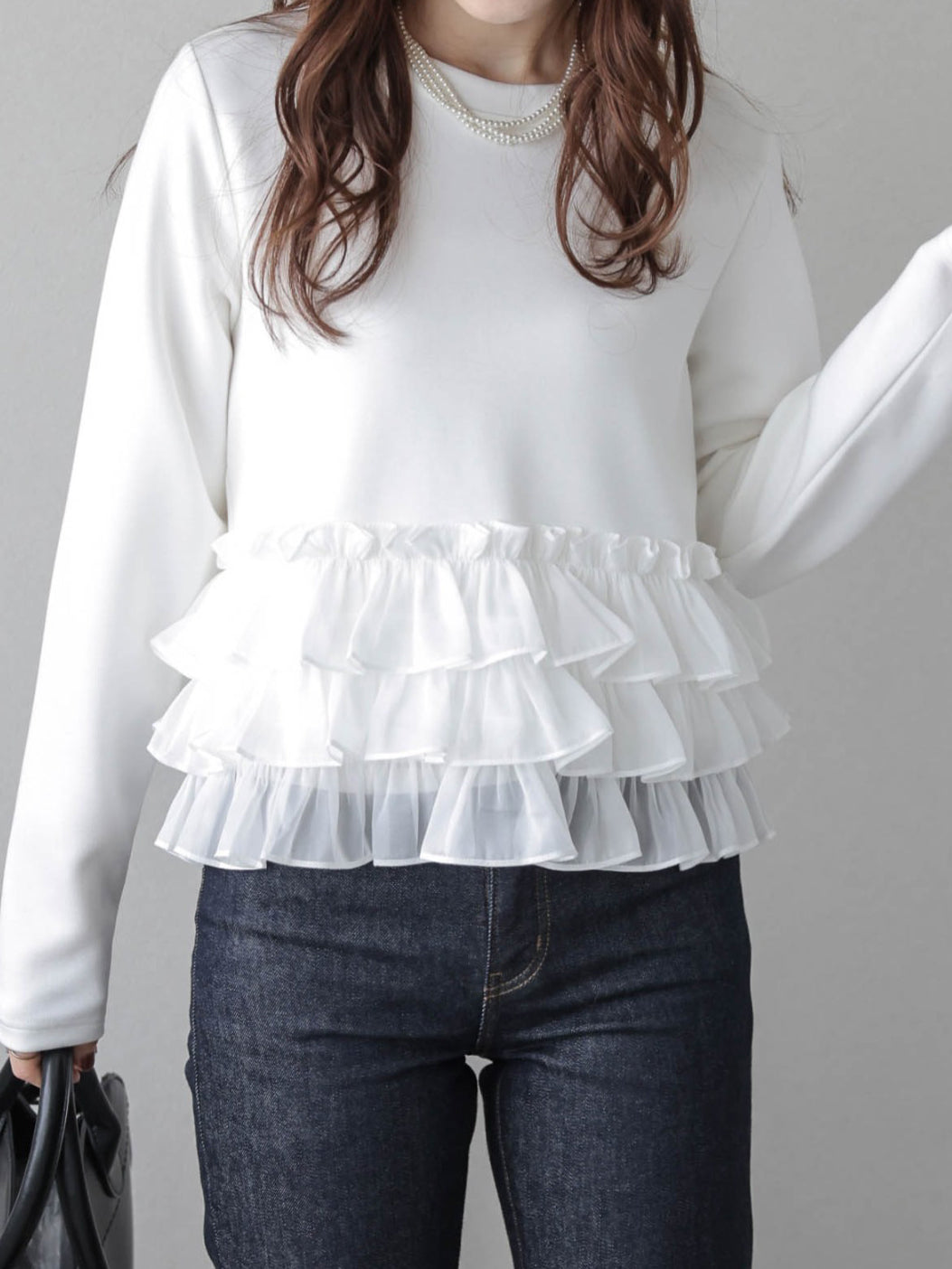 ・タイトスカートや細身のパンツあわせで裾のフリルを際立たせたスタイリングがおすすめです。