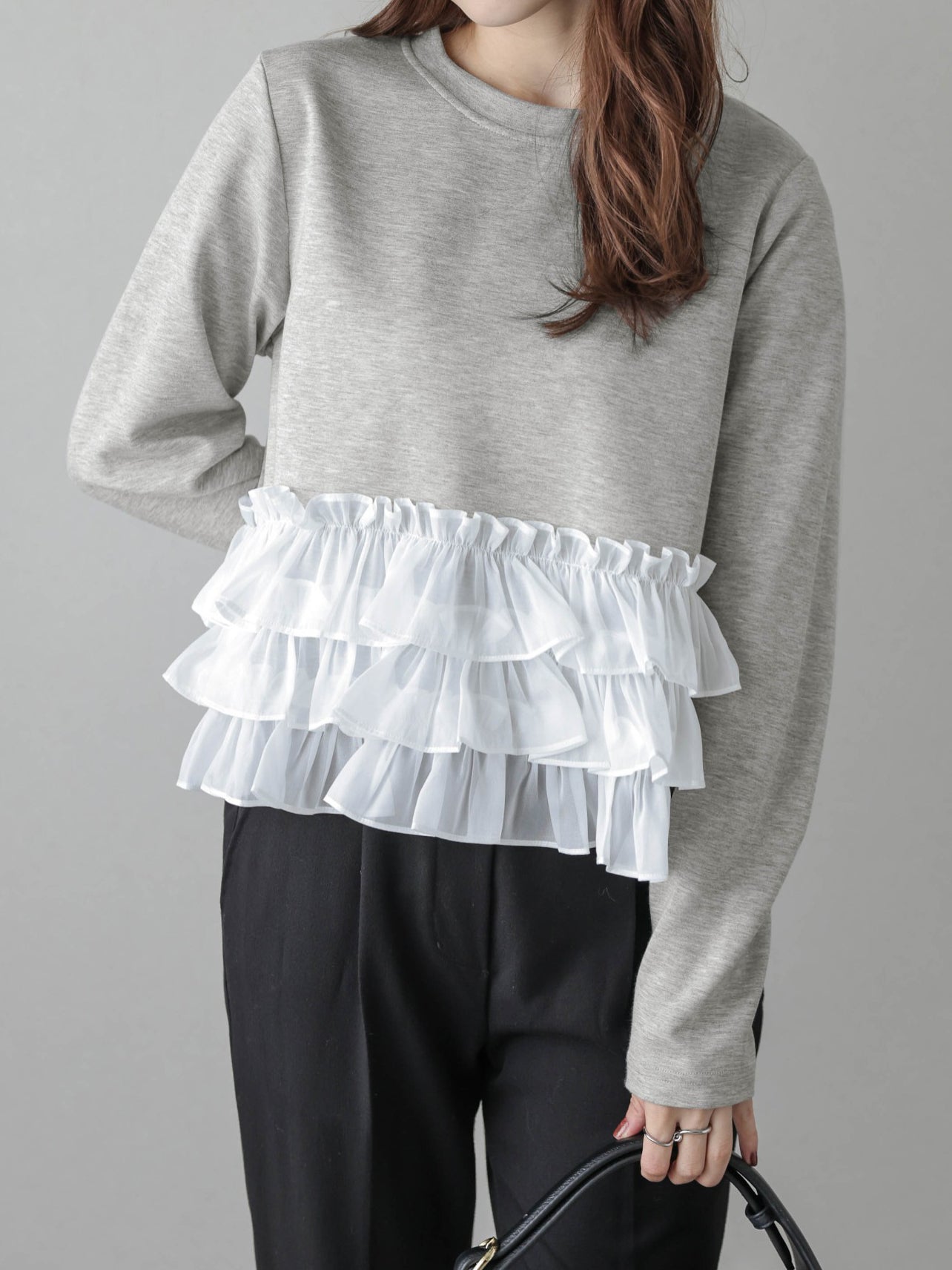 上品な透け感のあるシアーフリルをたっぷりとあしらった、着映えカットソー。