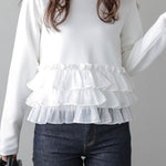 身頃はシンプルな長袖デザインで、さりげなく甘さを取り入れられる一着です。