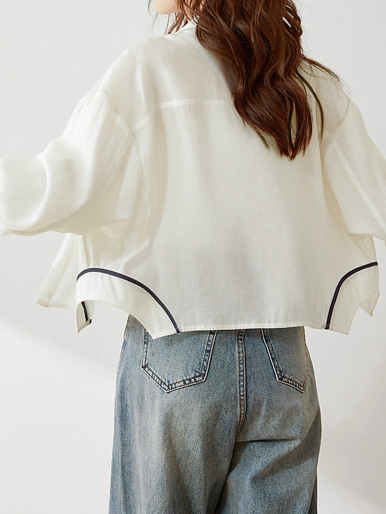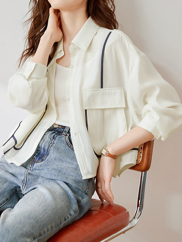 【季節の変わり目にぴったりの、柔らかさが目を惹くシアーシャツ】
