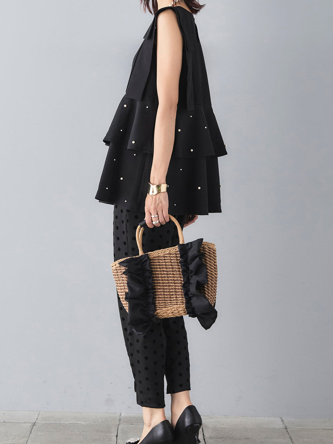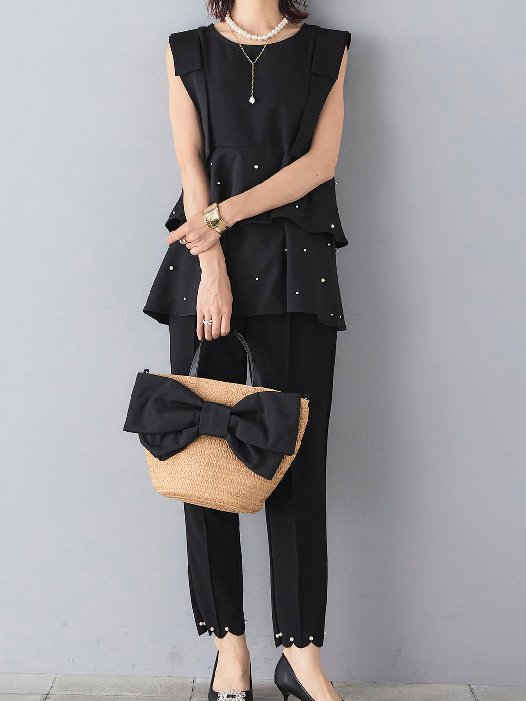 ☆ランダムにちりばめられたパールがフェミニンな印象に◎