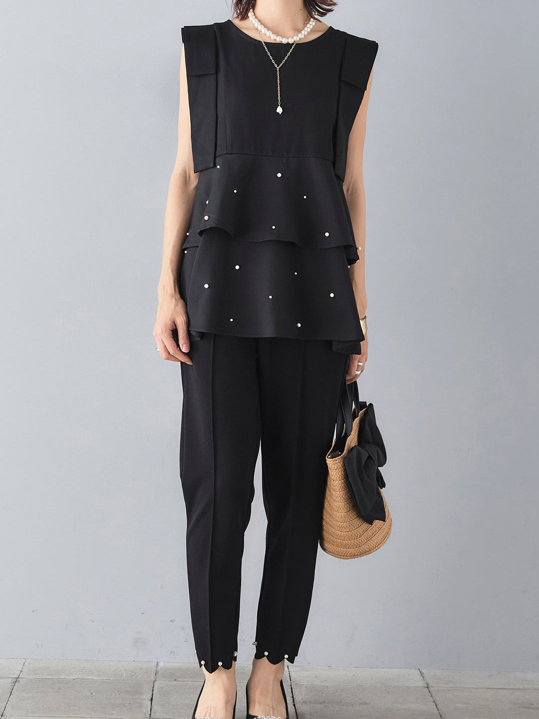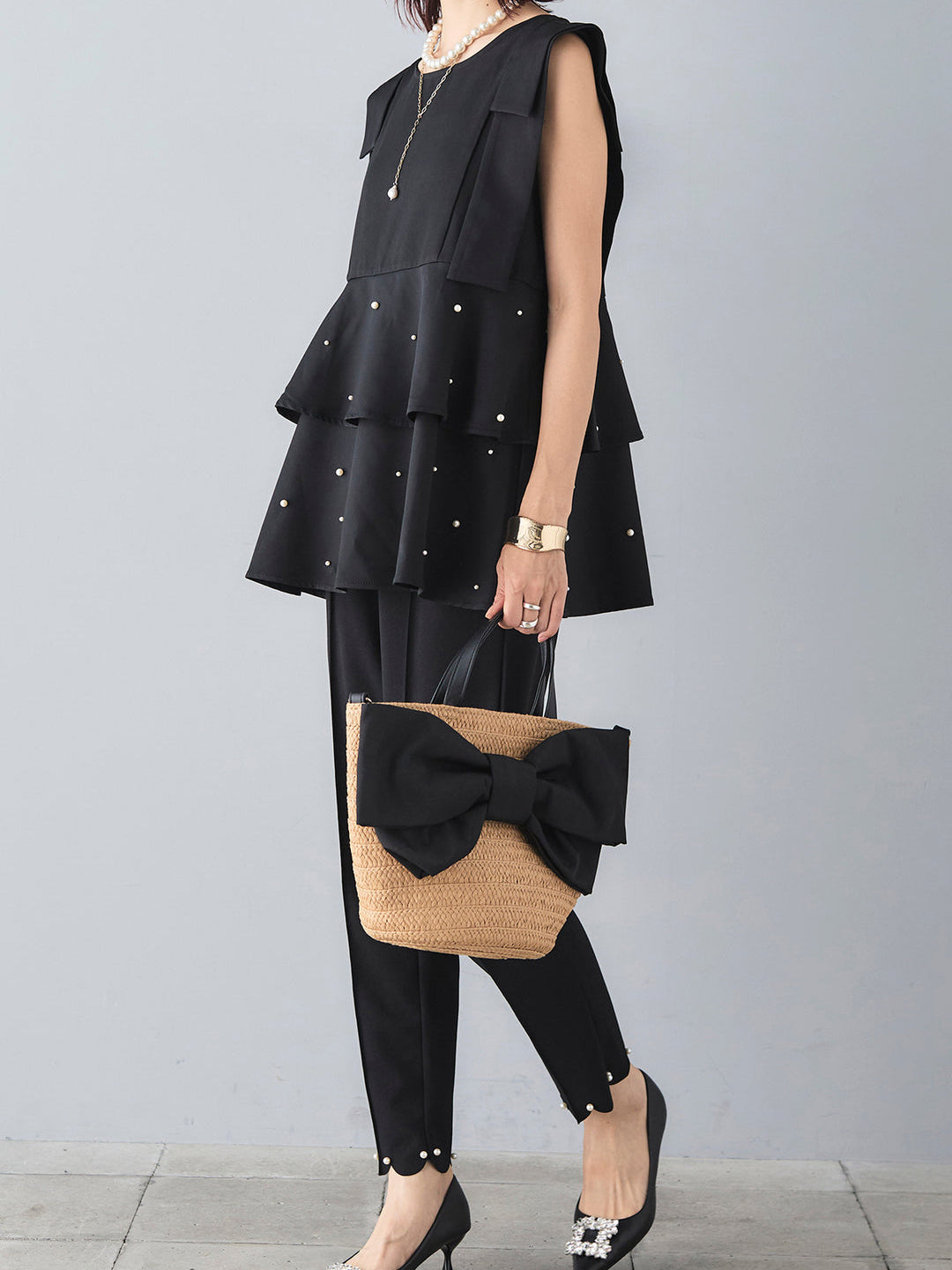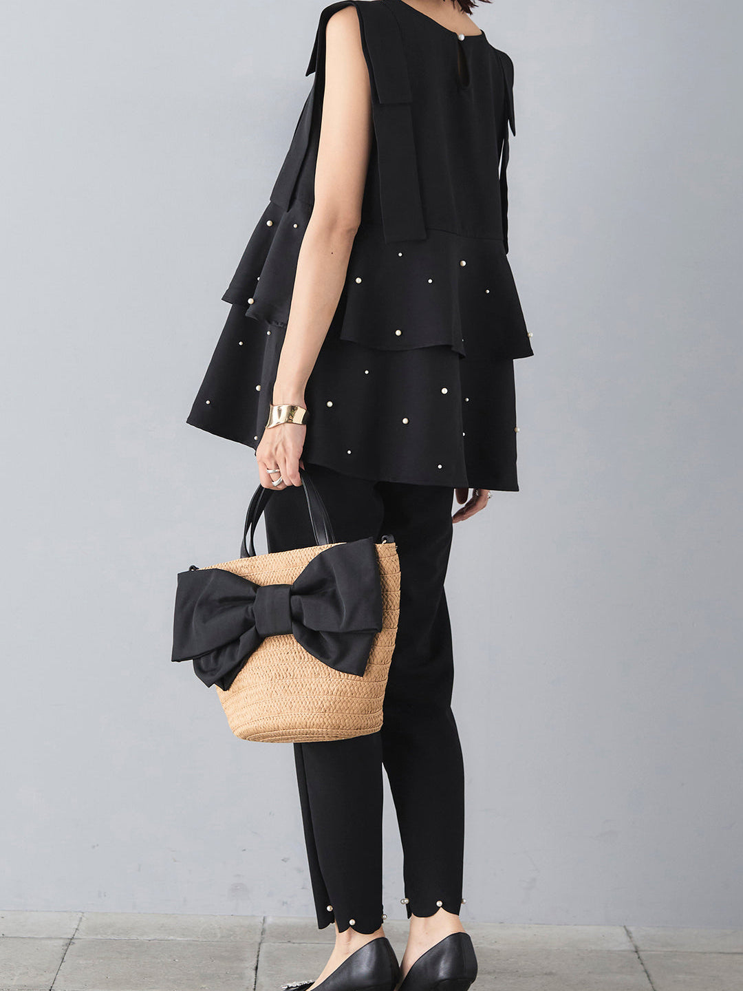 【エレガントなティアードデザインが特徴のペプラムチュニック】