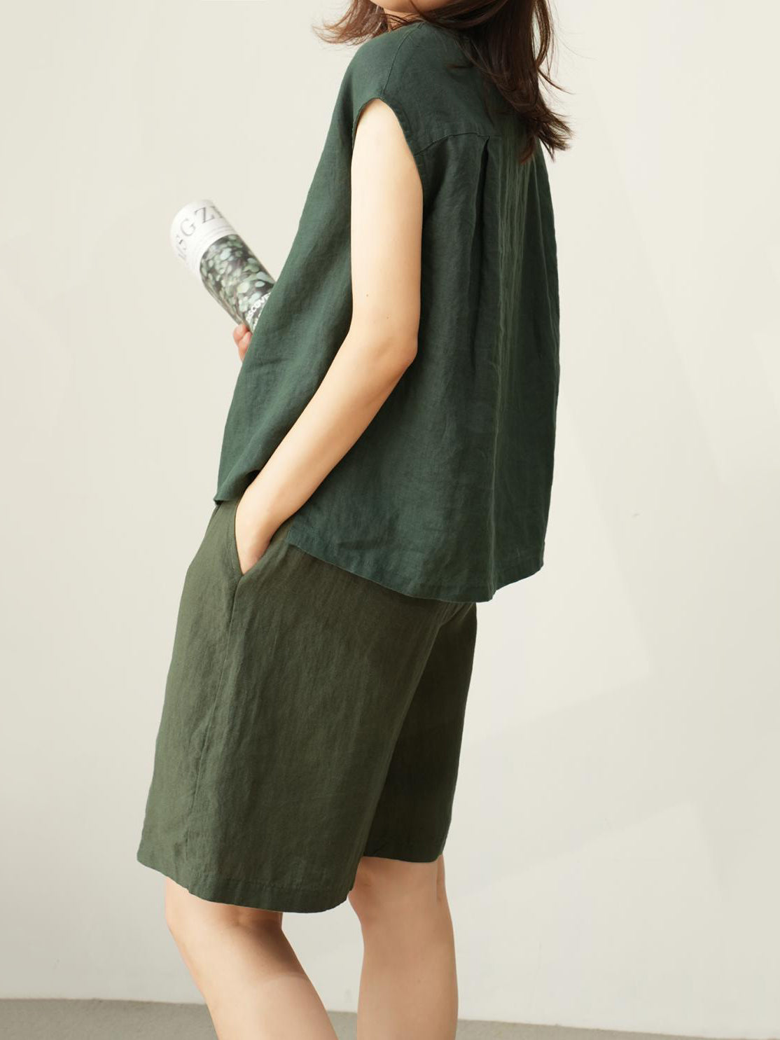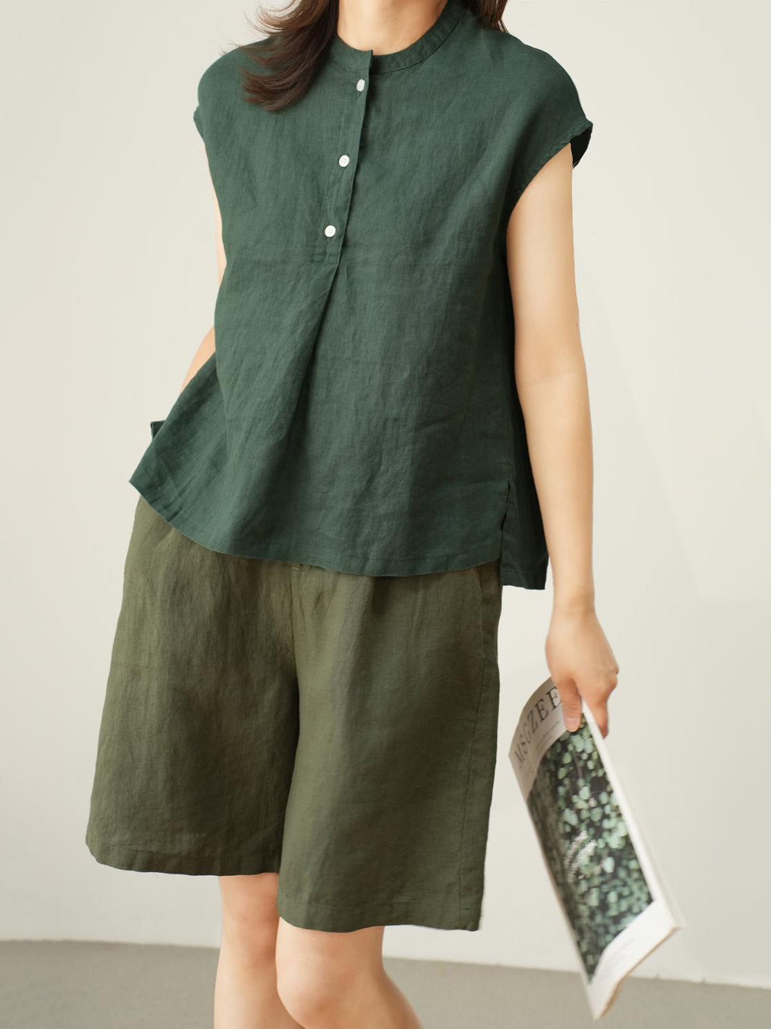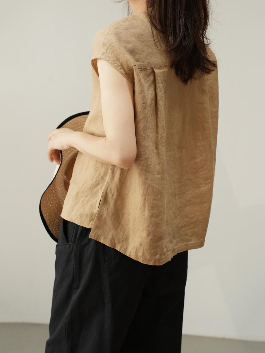 ナチュラルリネンフレンチスリーブブラウス 3色入