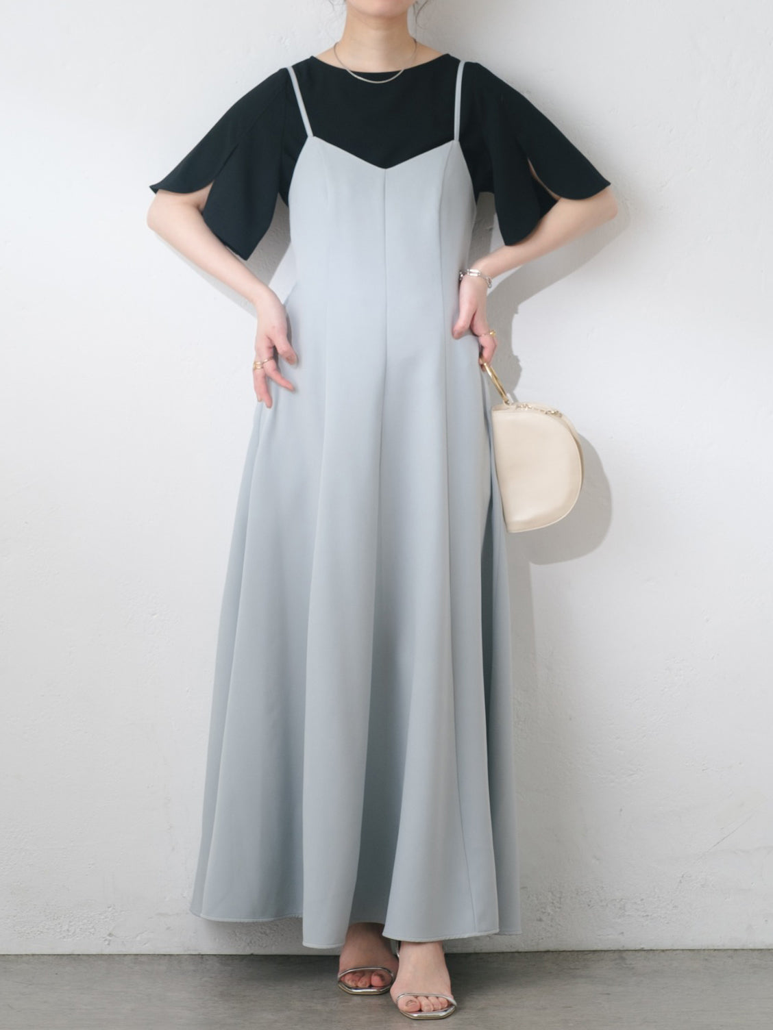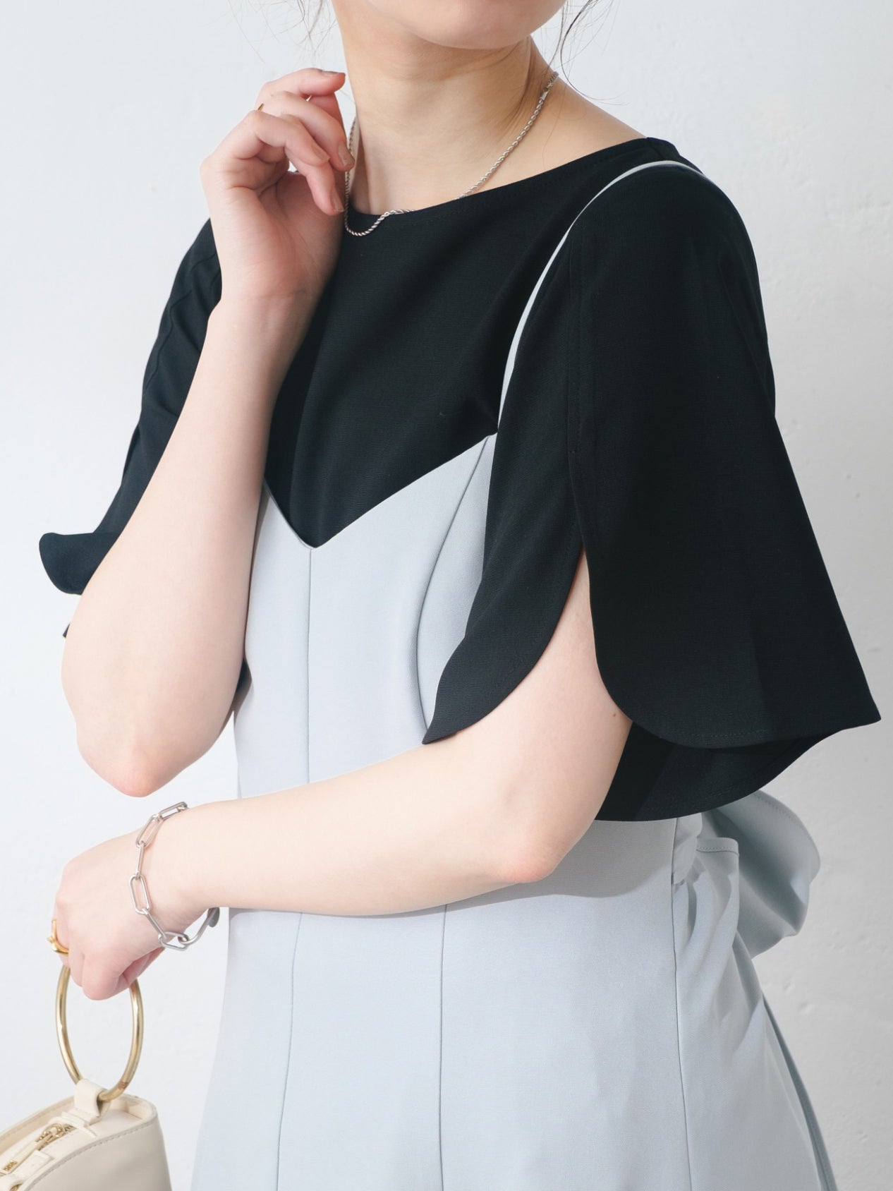 ☆袖にハチワレのようなスリットを施した、フレアーデザインと合わせて気になる腕周りもしっかりカバー。
