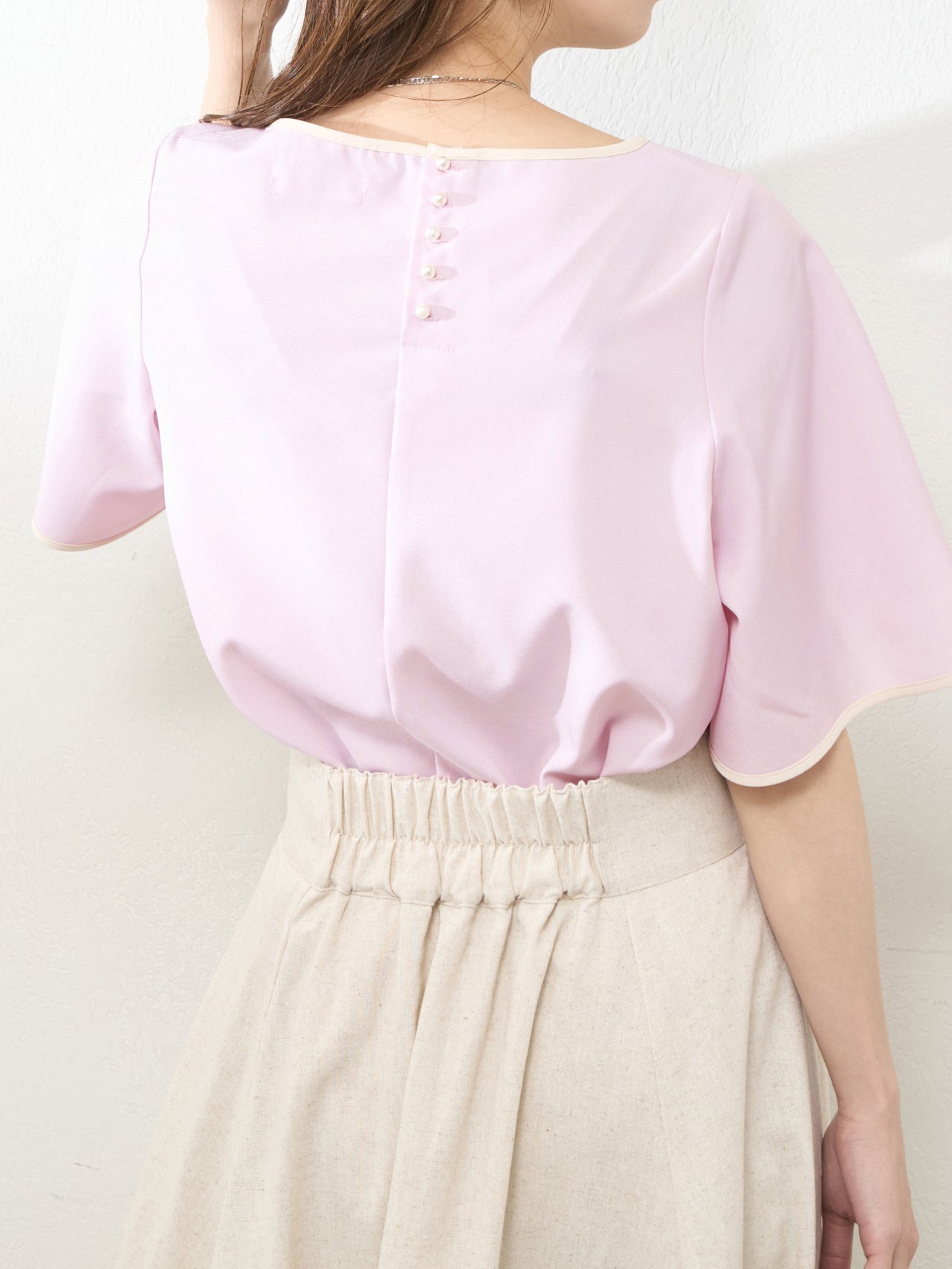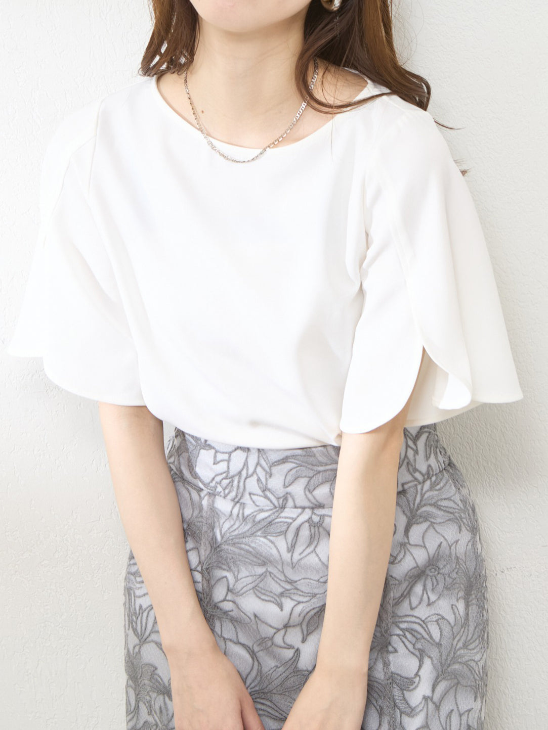 袖にハチワレのようなスリットを施した遊び心のある半袖ブラウス。