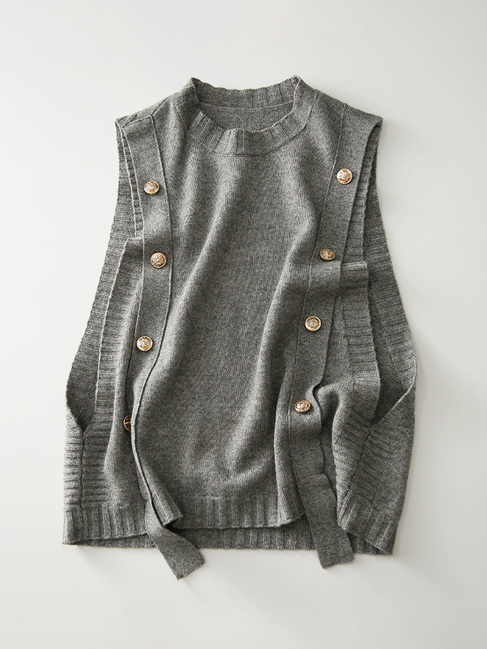 メタルボタンニットベスト+キャンディースリーブシャツ 3色入