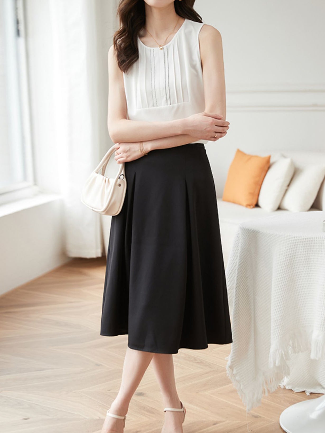 ・ボトムスはマーメイドスカートやフレアスカートとのコーデがおすすめ。