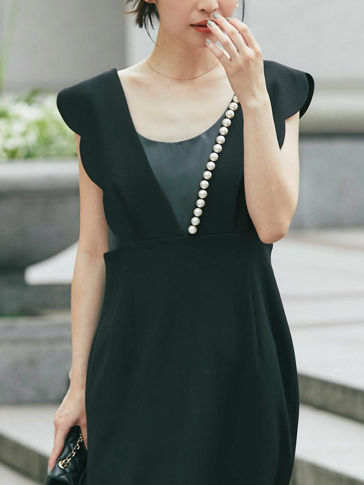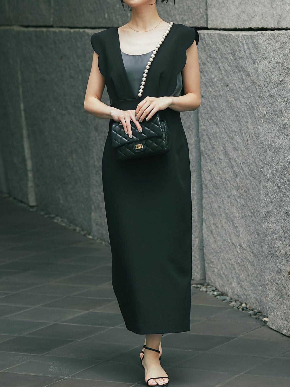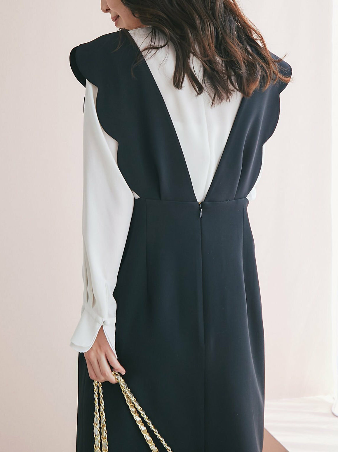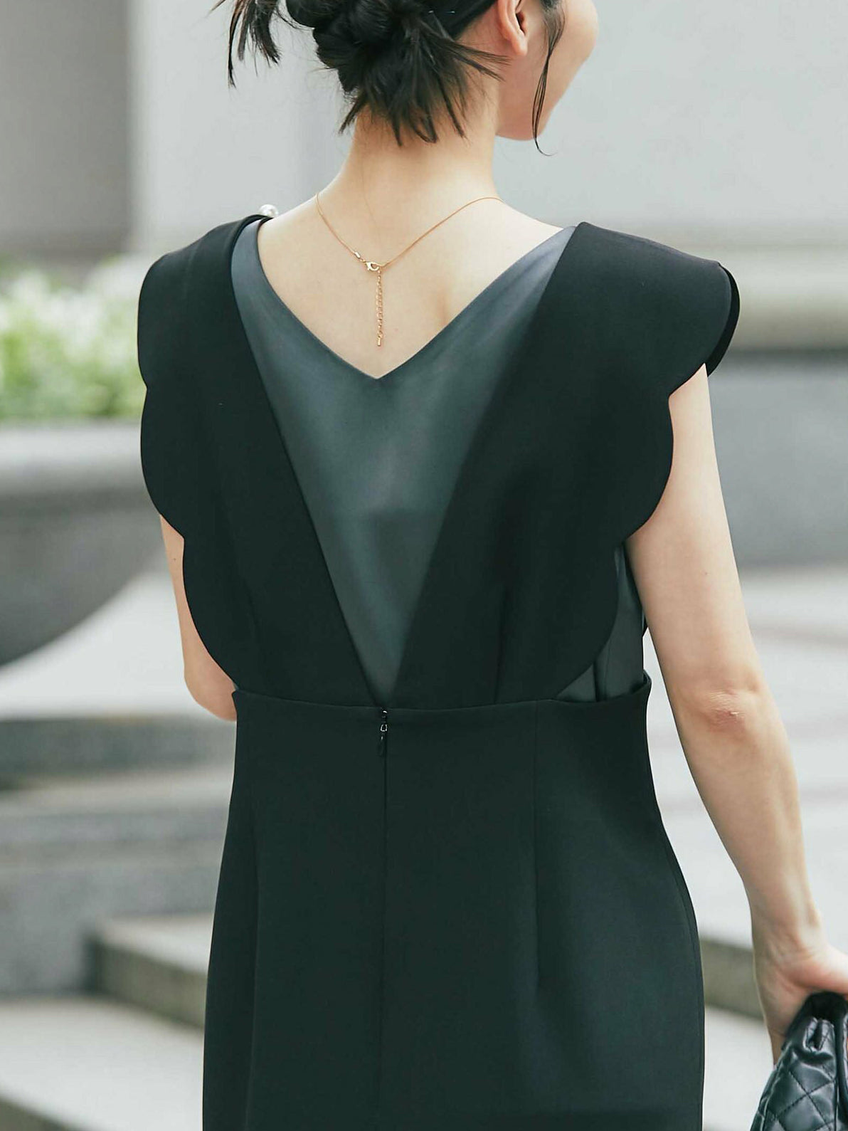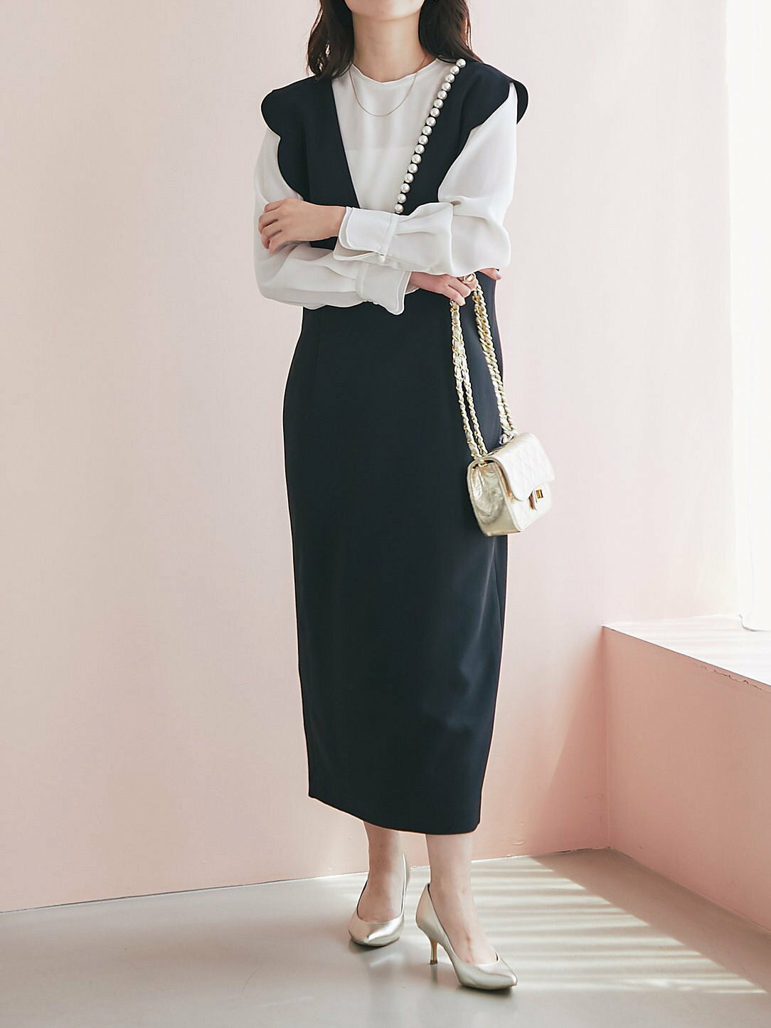 ☆スカラップでフェミニンな雰囲気がありながら、Iラインですっきりと大人の女性に似合う