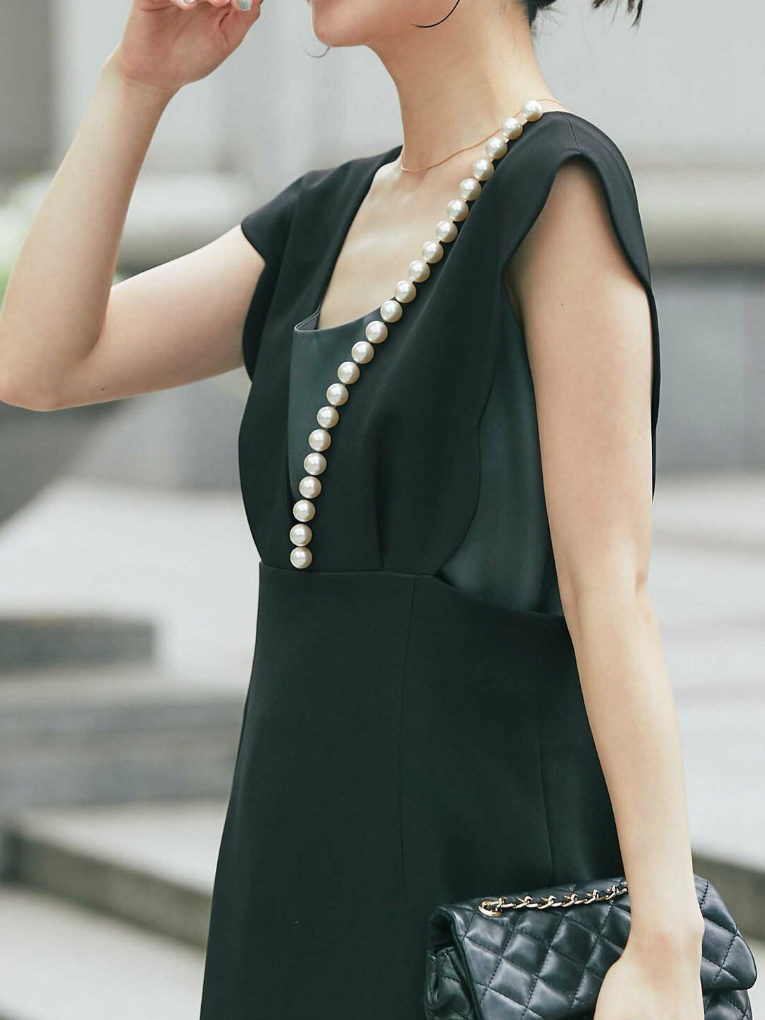 大きめパールが顔回りを華やかにしてくれる一枚です。