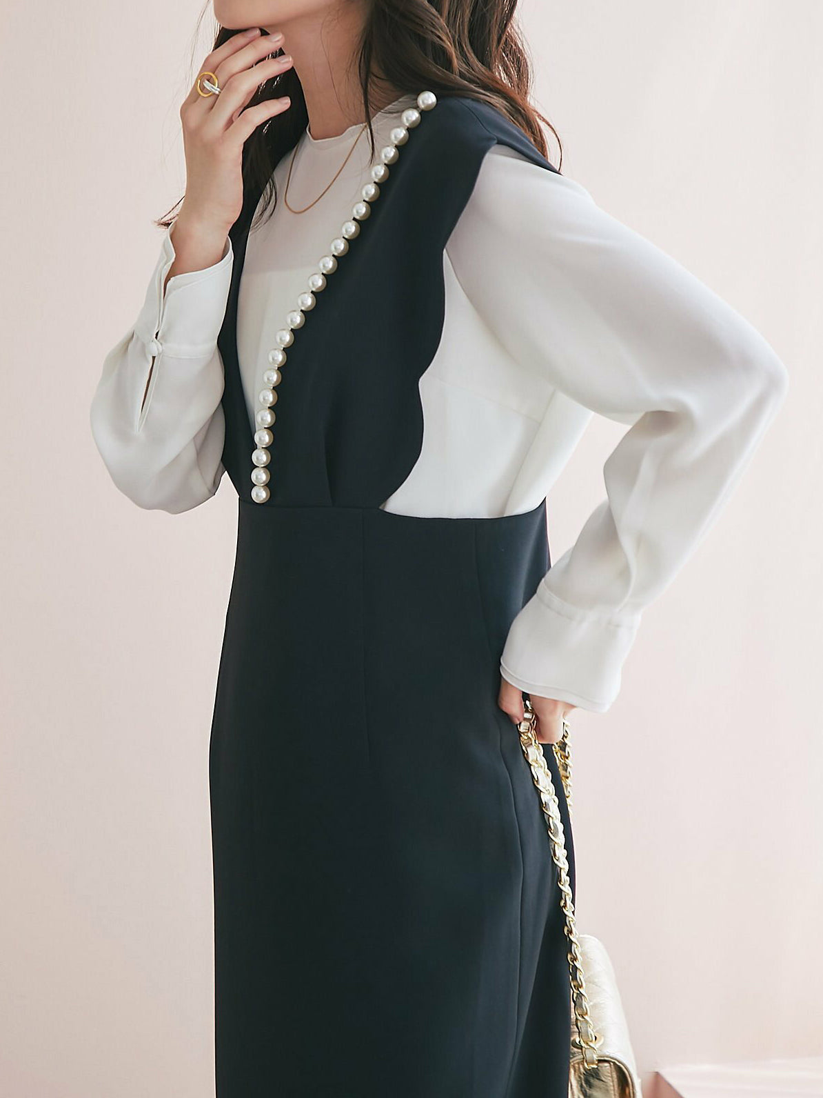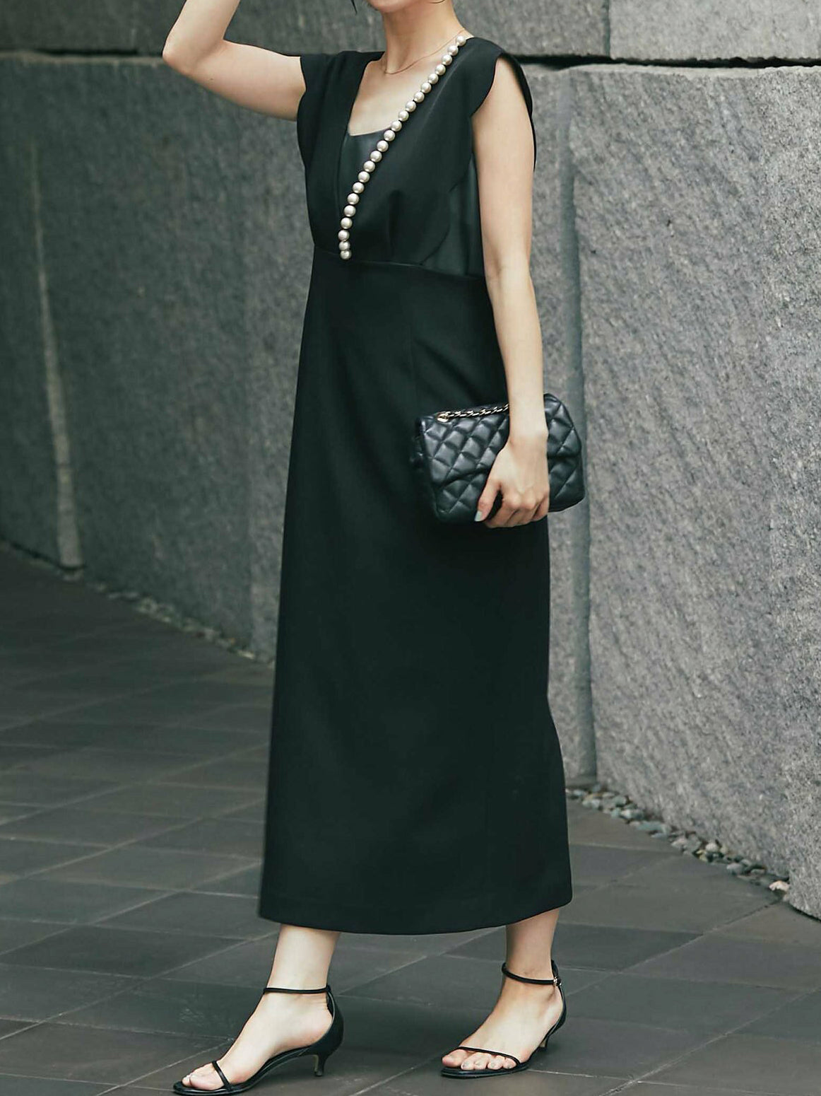 夏はノースリワンピースとして、秋以降はインナーをレイヤードして様々に印象を変化させて着ていただけます。