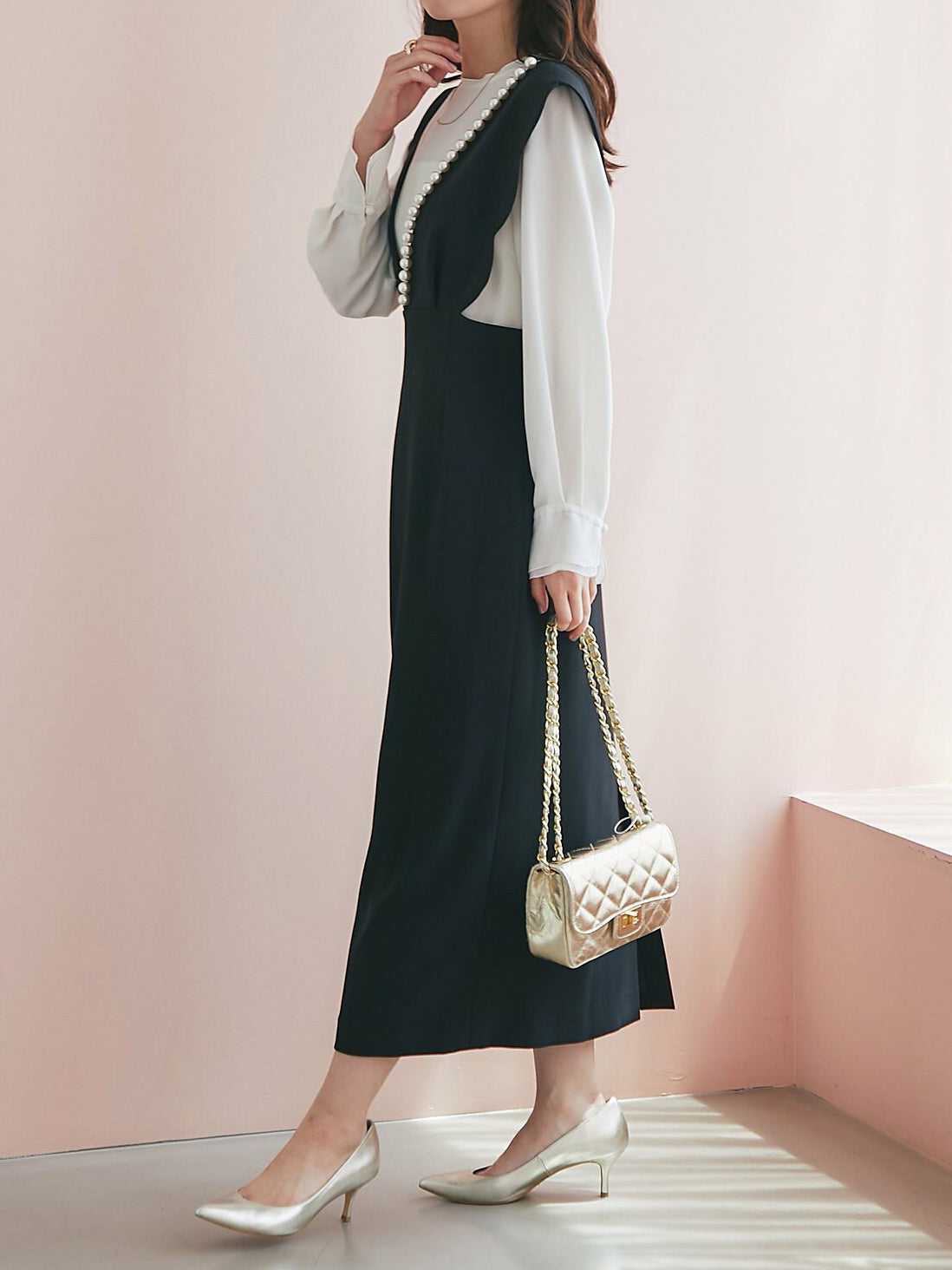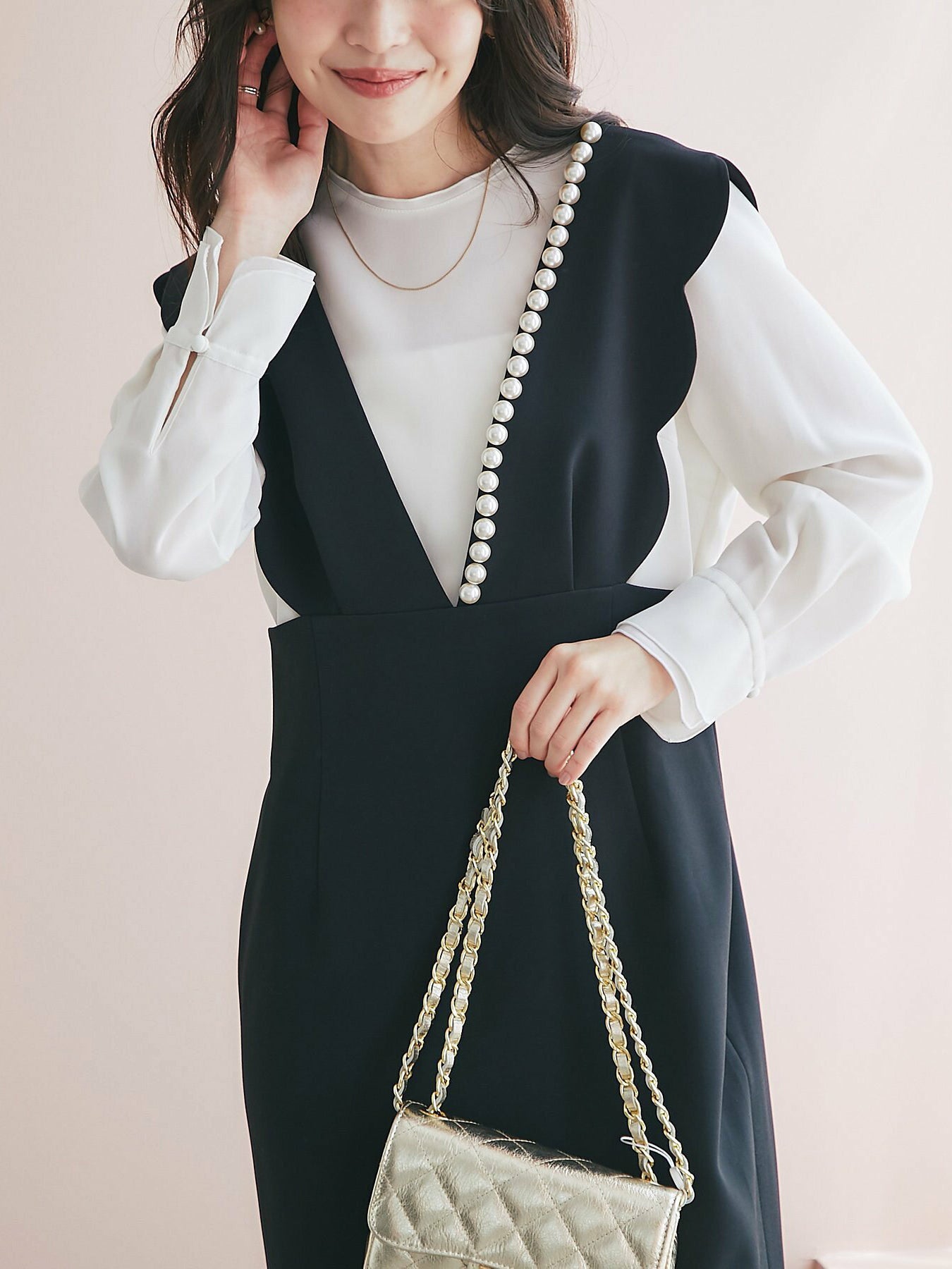 きれいめに着ていただけるので、オフィスシーンにもお呼ばれにもお使いいただけるおすすめのアイテムです。