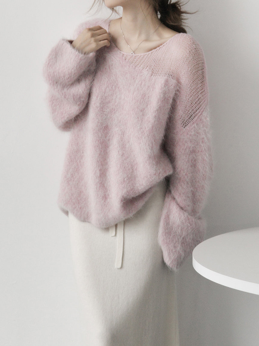 ふんわりと優しいさとゆるっとしたシルエットで、着るだけで季節感漂う大人のフェミニンニット。