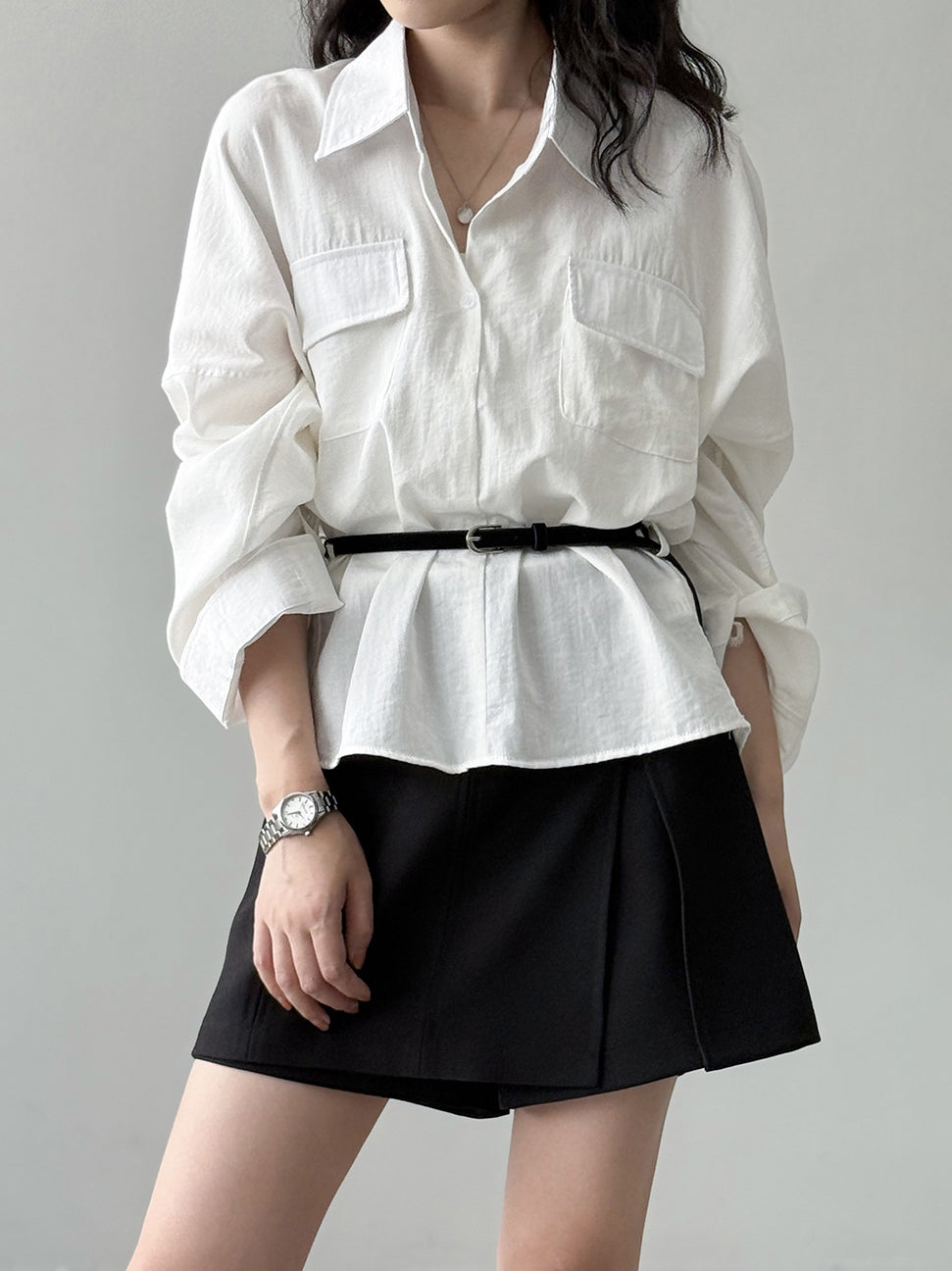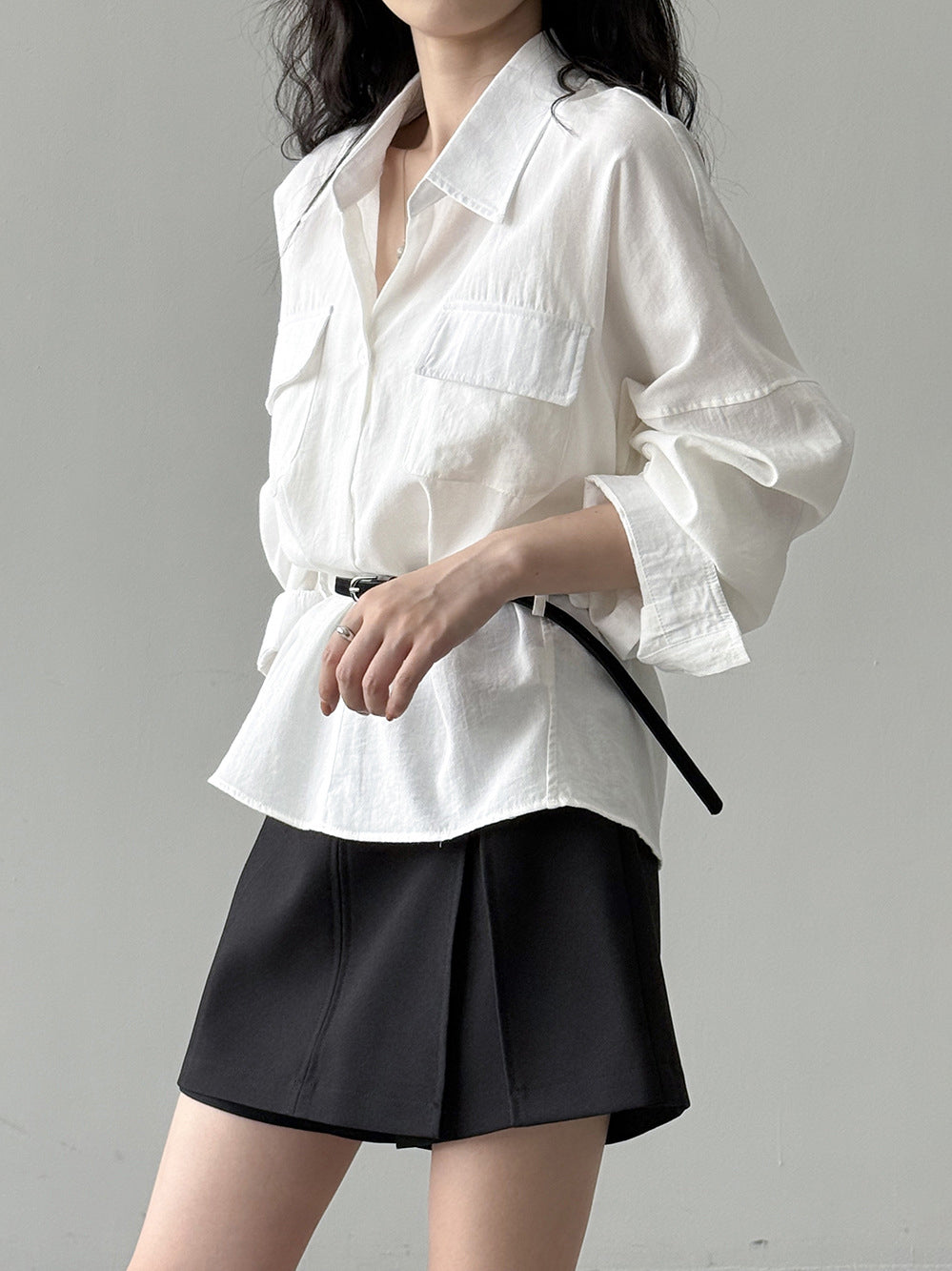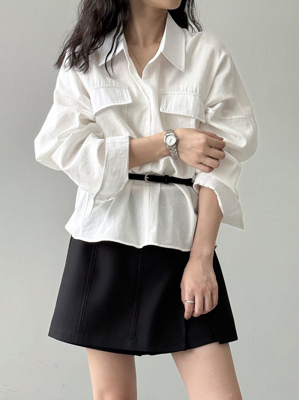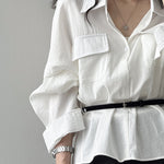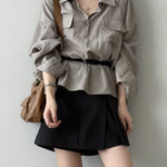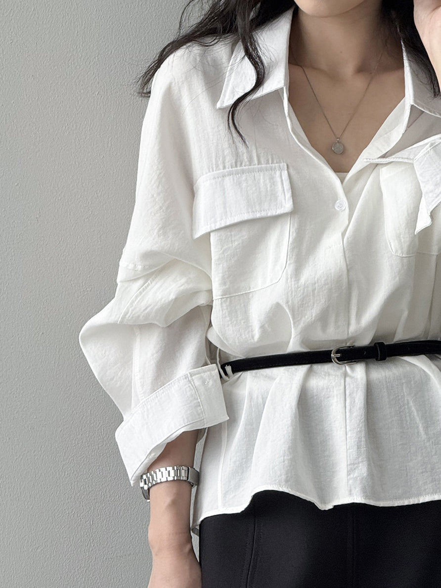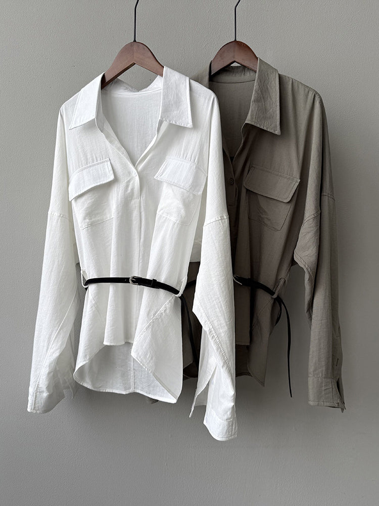 ベルト付フラップポケットシャツ 2色入