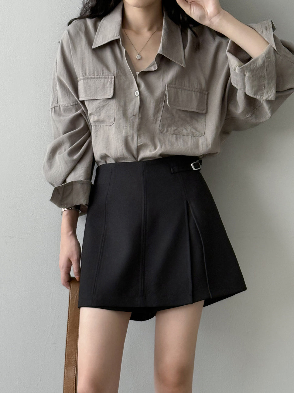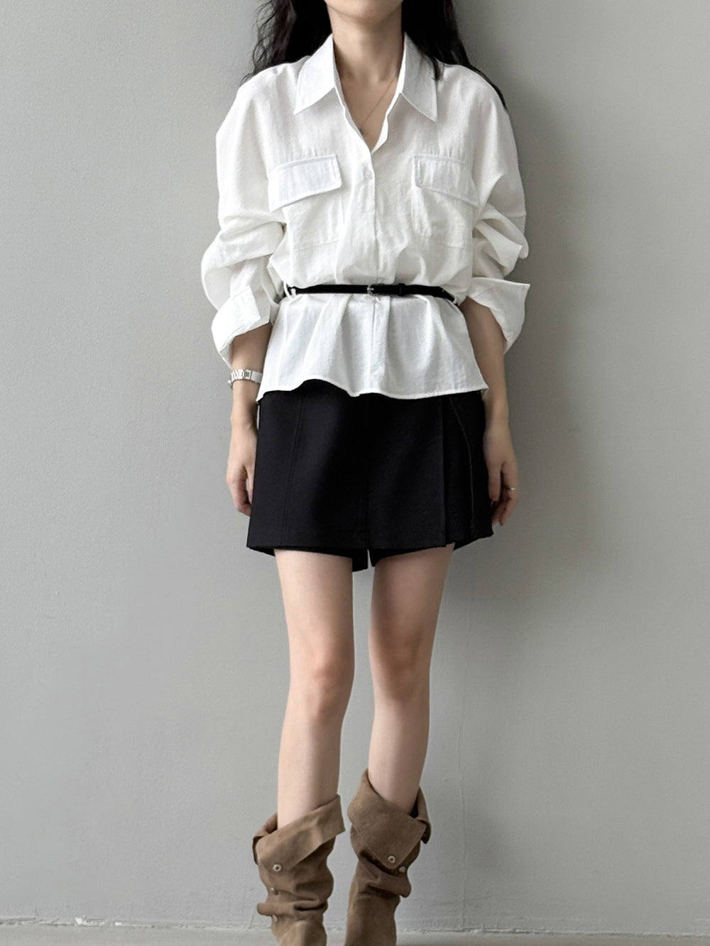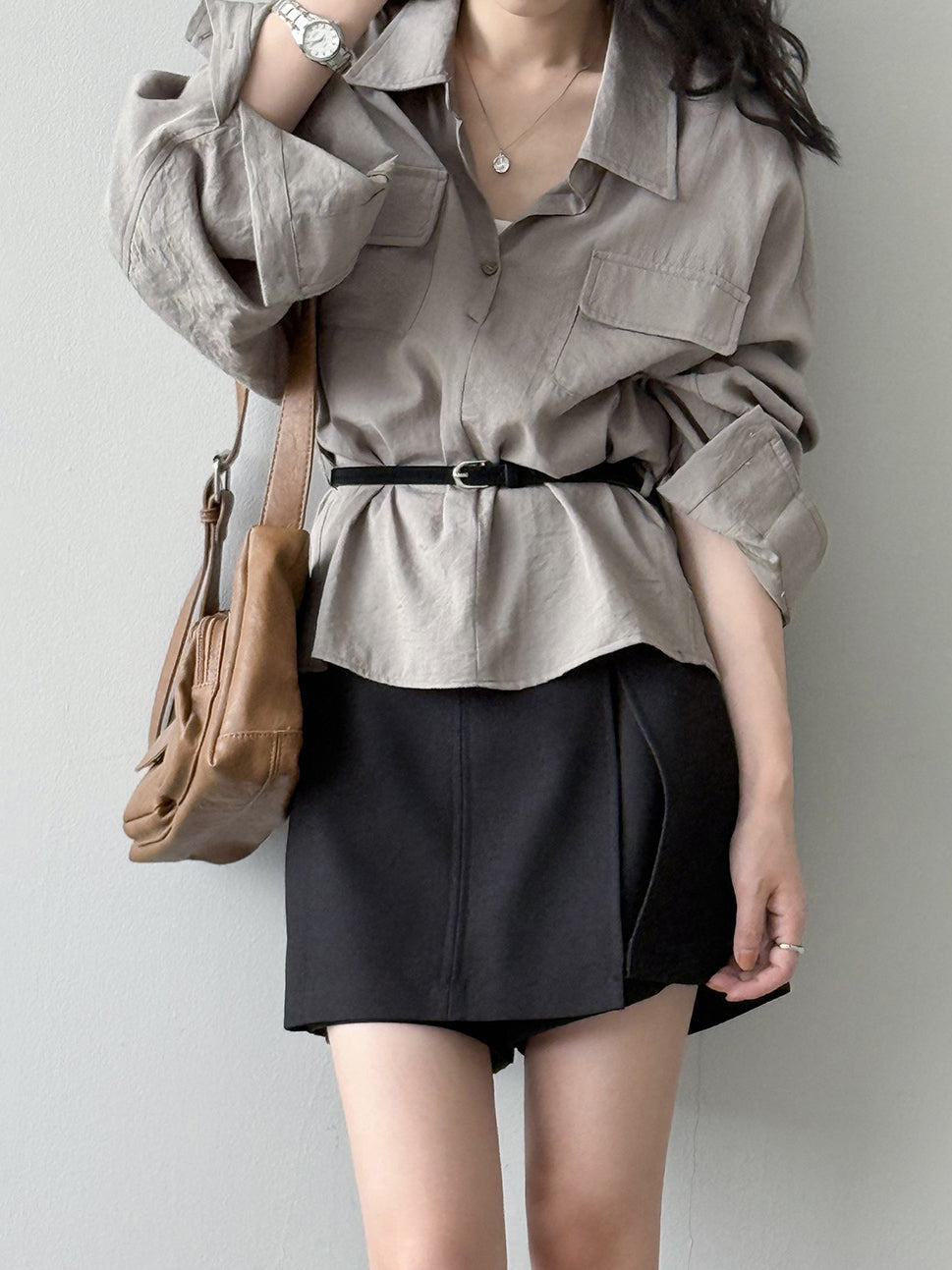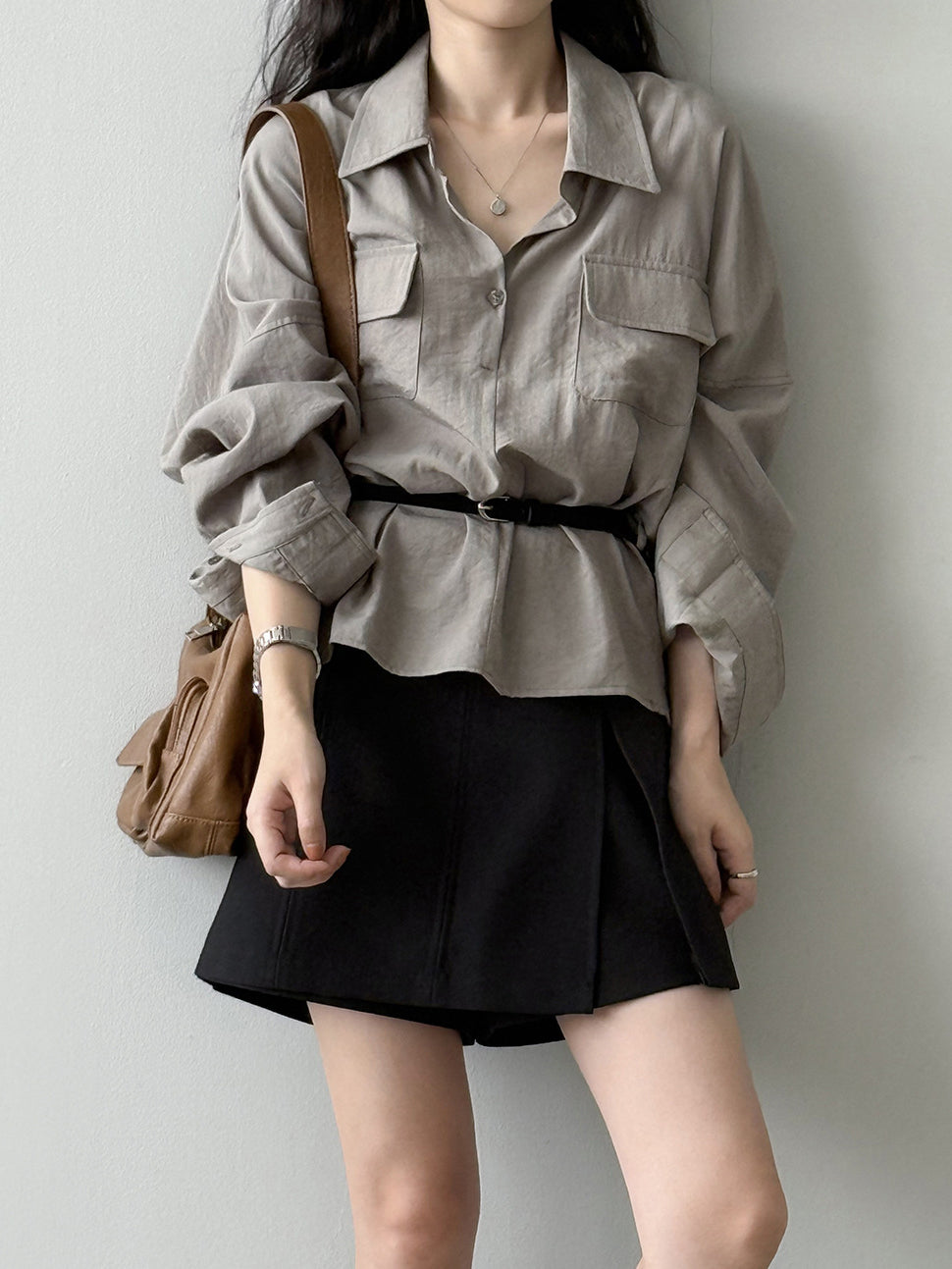 ベルト付フラップポケットシャツ 2色入