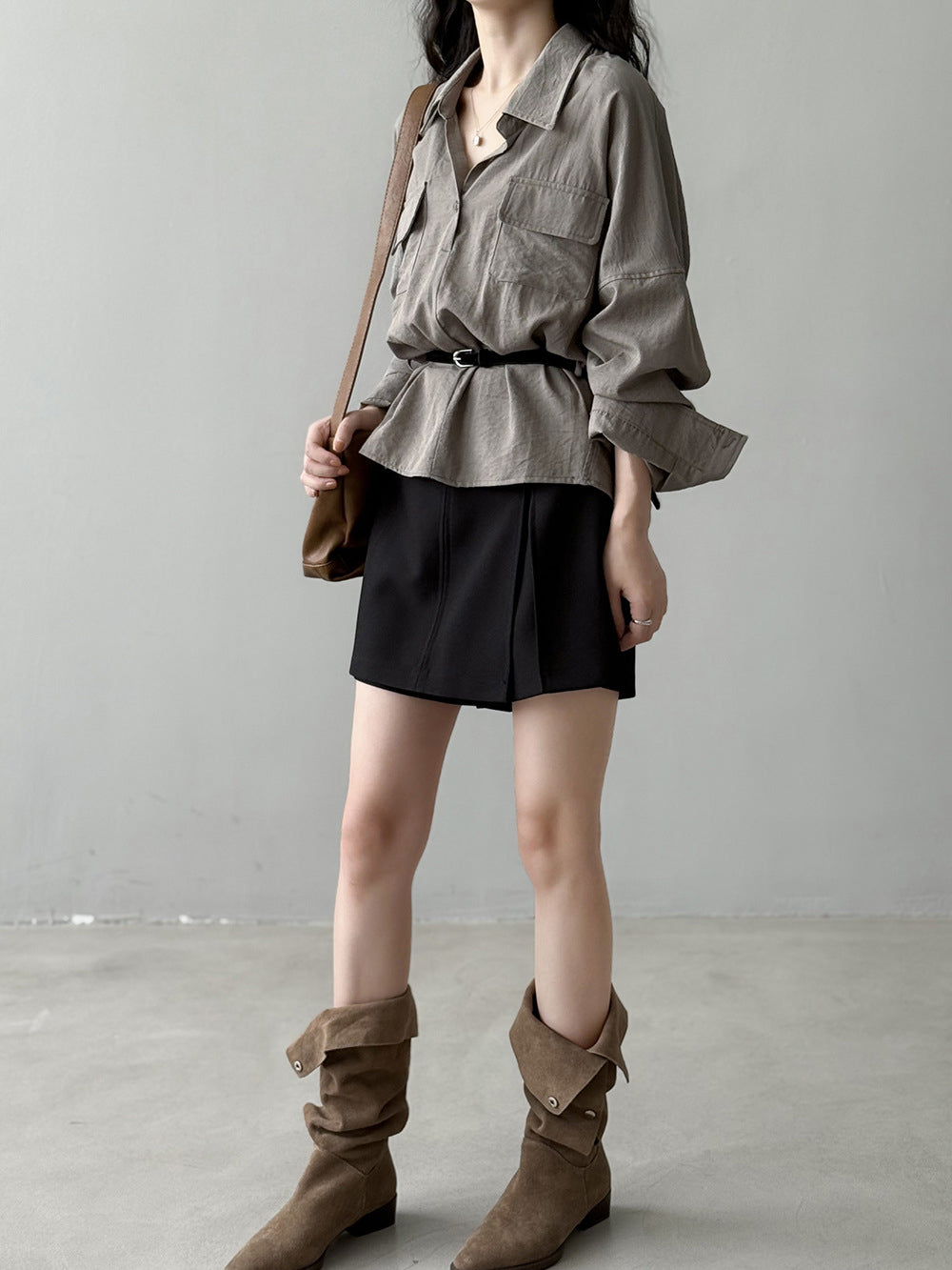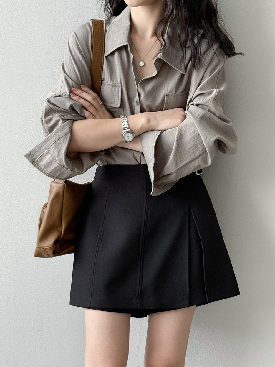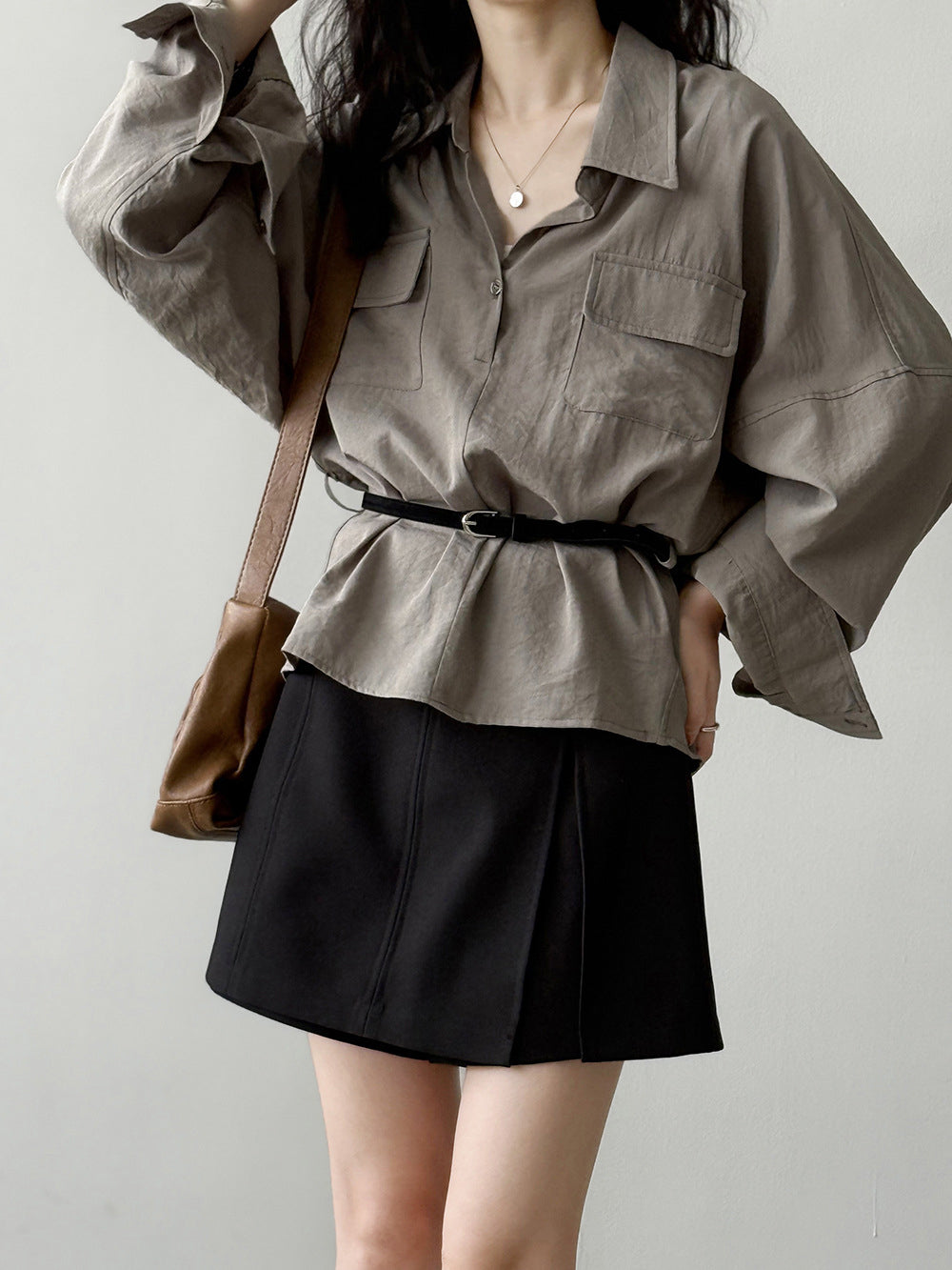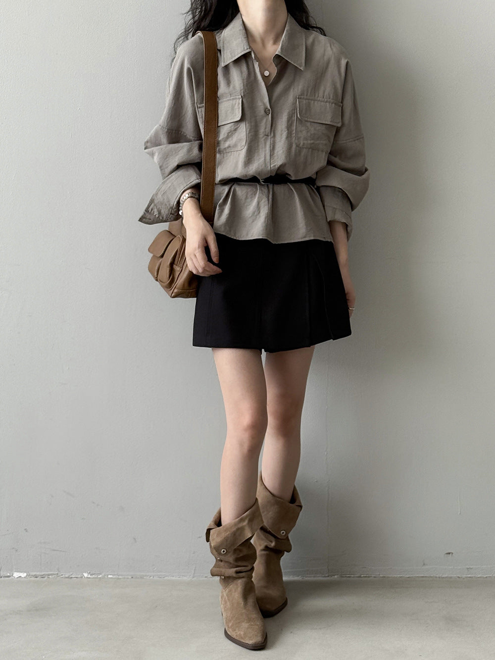 ベルト付フラップポケットシャツ 2色入