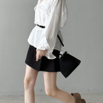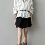 ☆胸元に抜け感を与えるネックラインは襟付きのためきちんと感があり、顏まわりをすっきりと見せてくれる嬉しい効果も◎