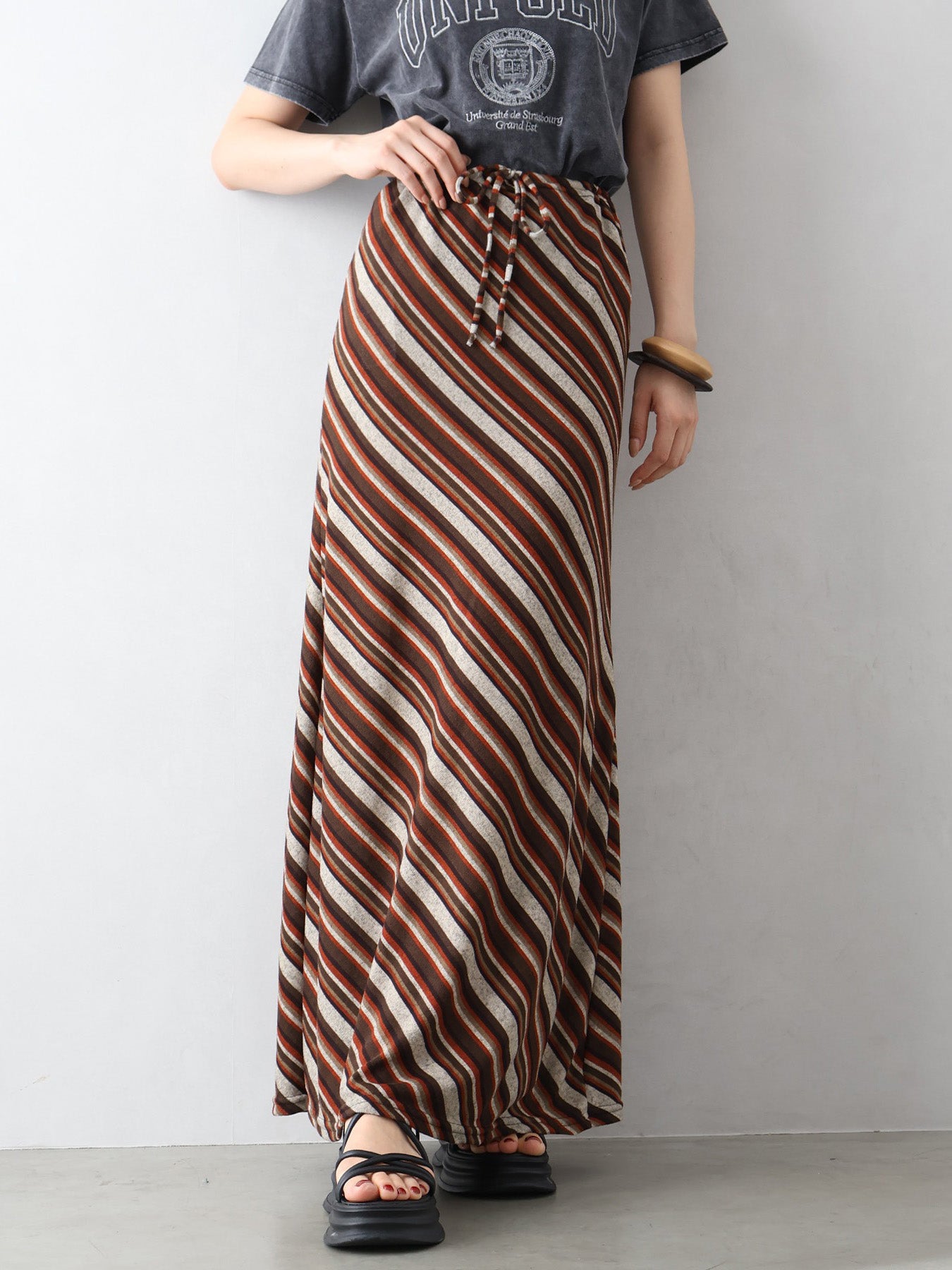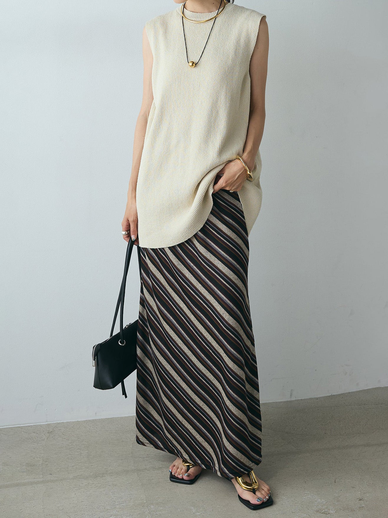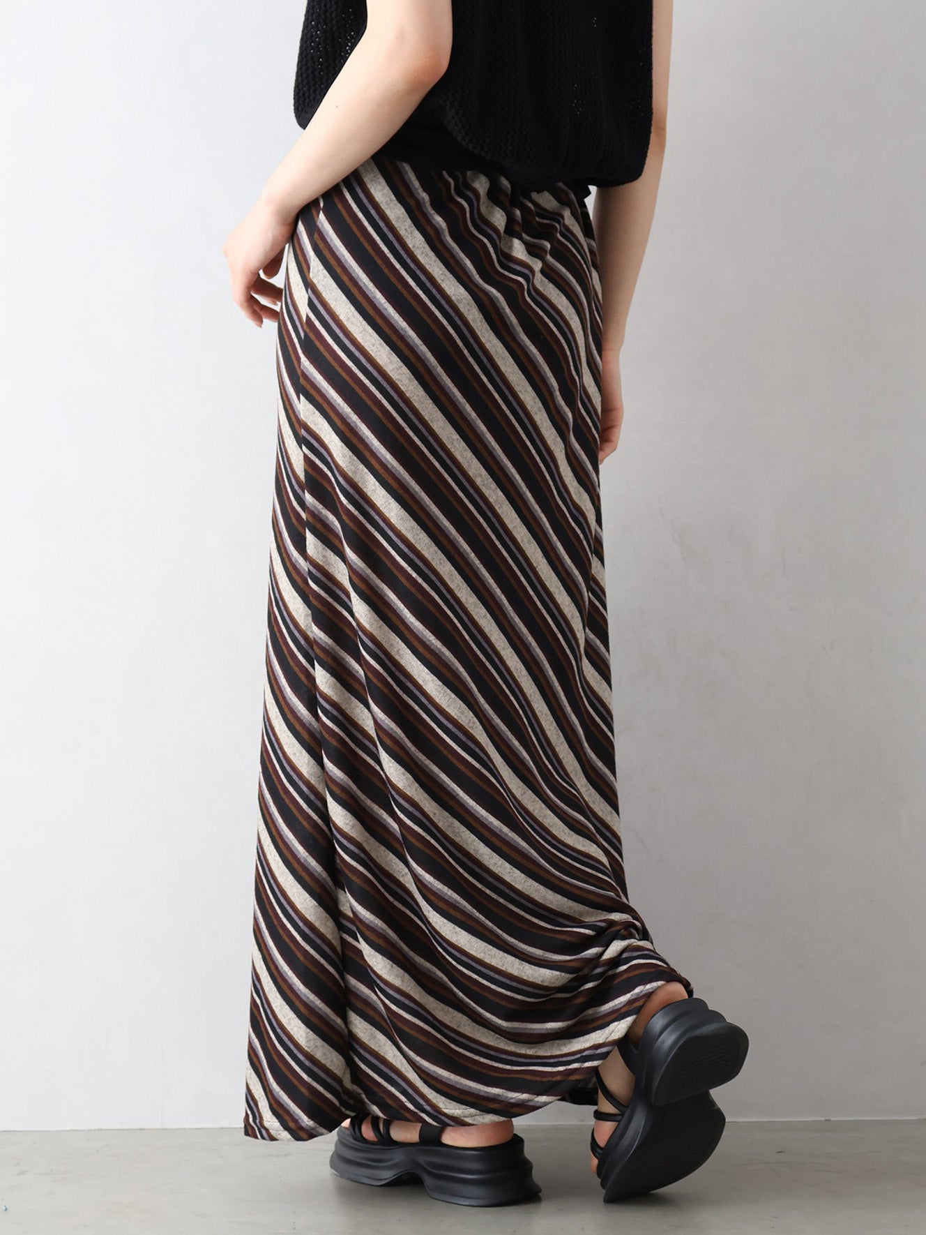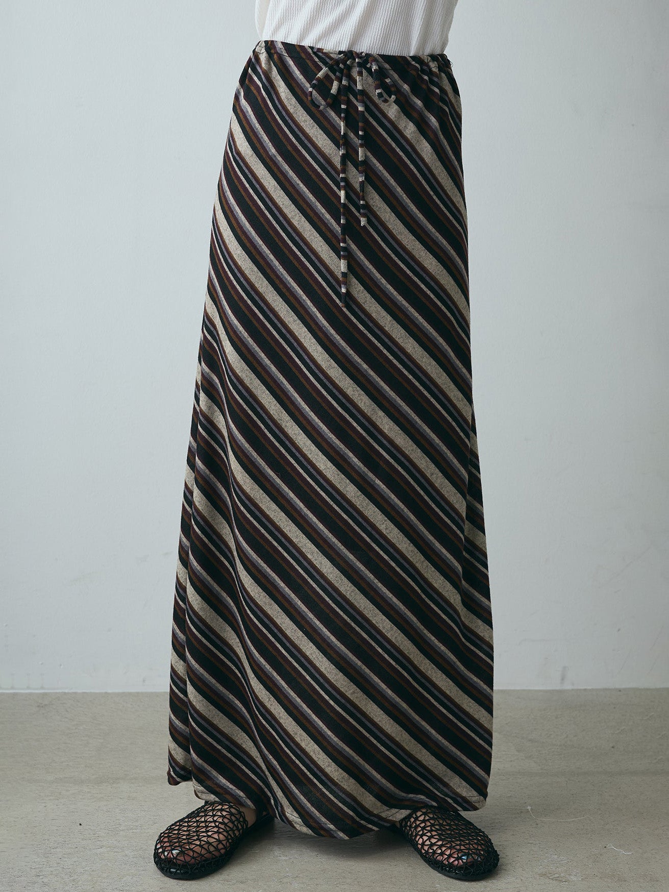 ☆斜めに入ったバイヤスボーダー柄が特徴的で、バイヤスカットならではの立体感で抜け感と女性らしさのバランスが絶妙です。
