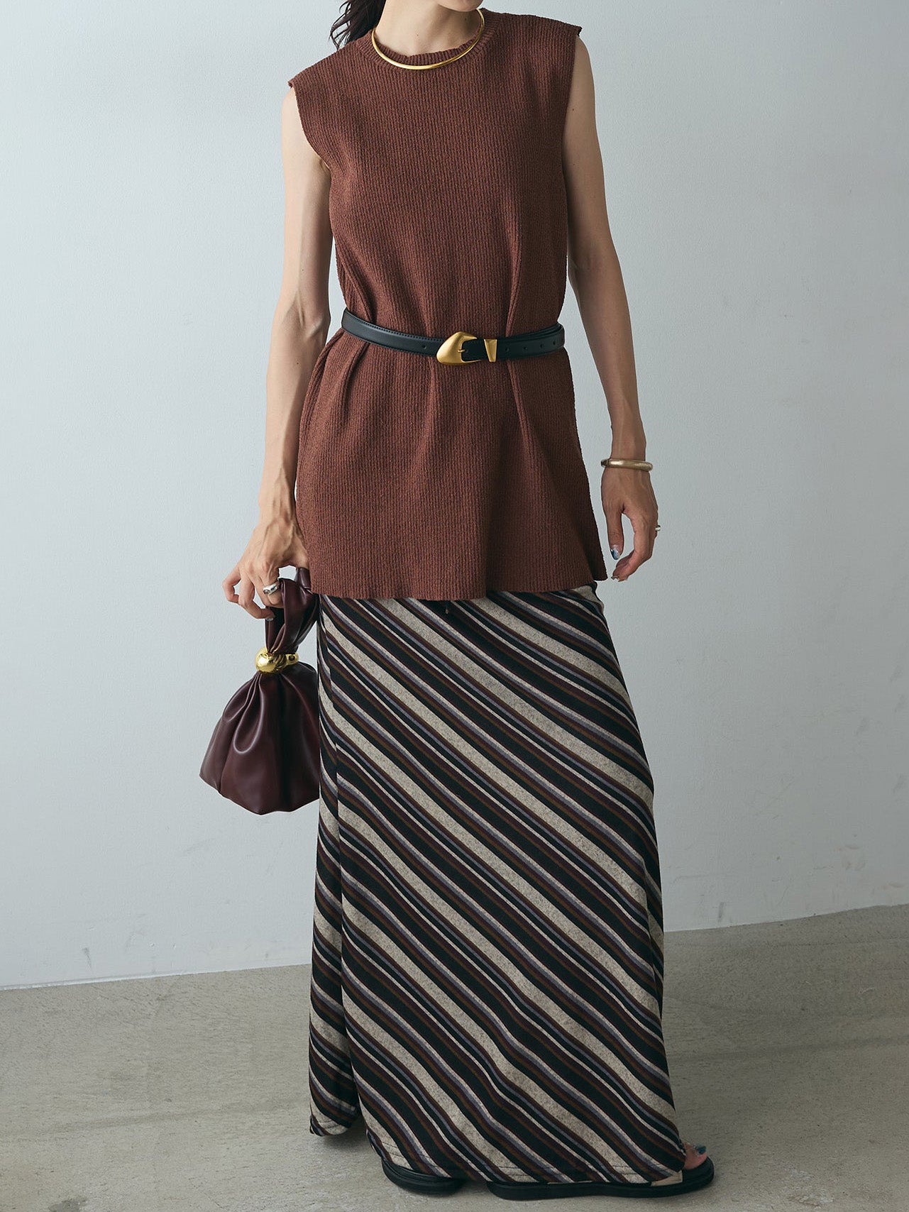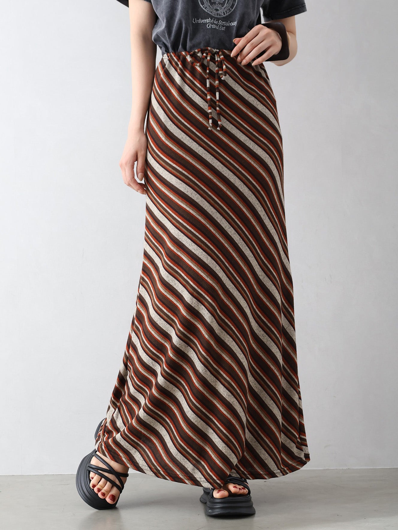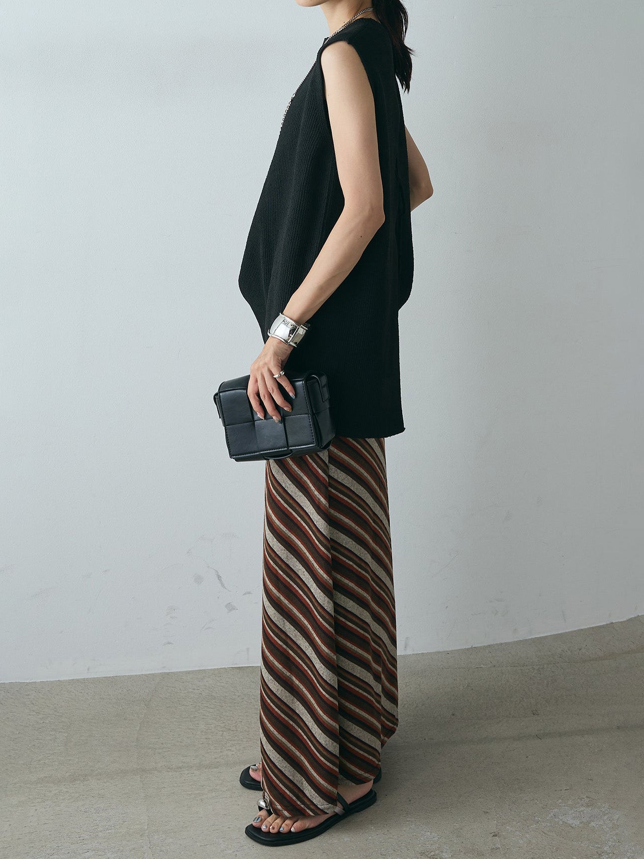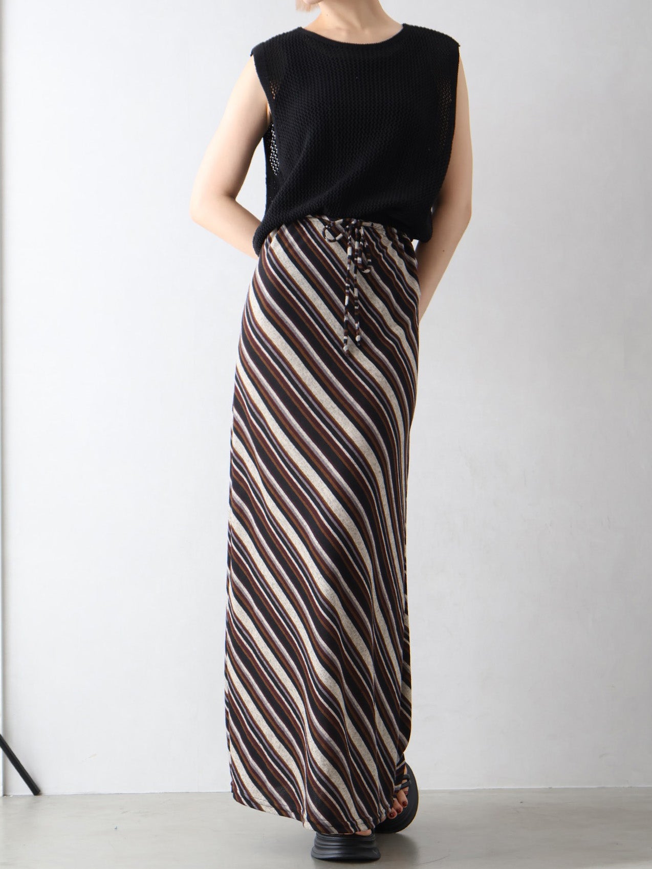 ☆斜めに入ったバイヤスボーダー柄が特徴的で、バイヤスカットならではの立体感で抜け感と女性らしさのバランスが絶妙です。