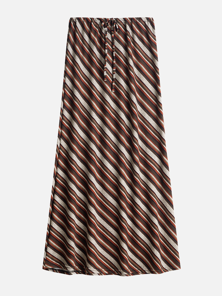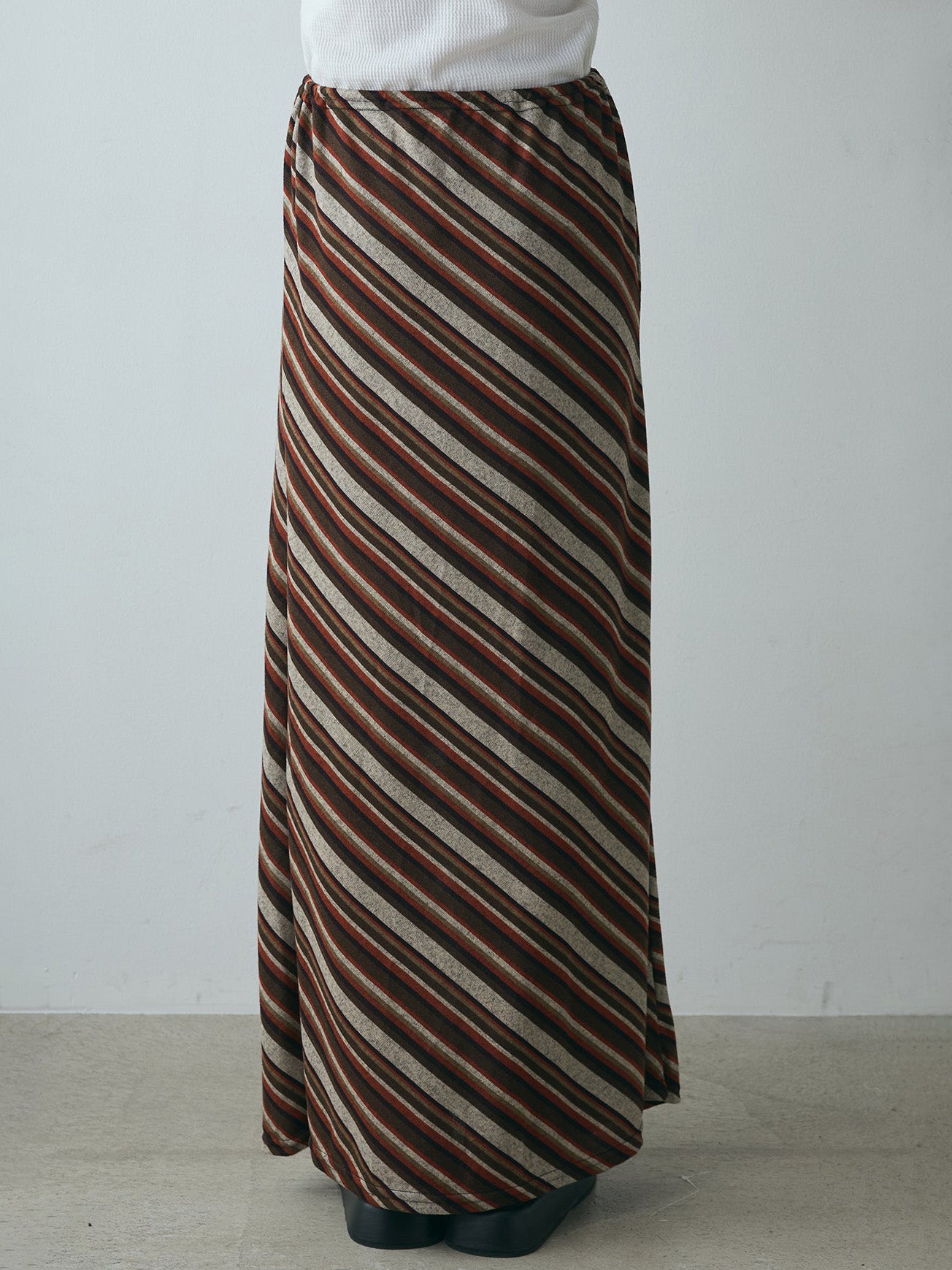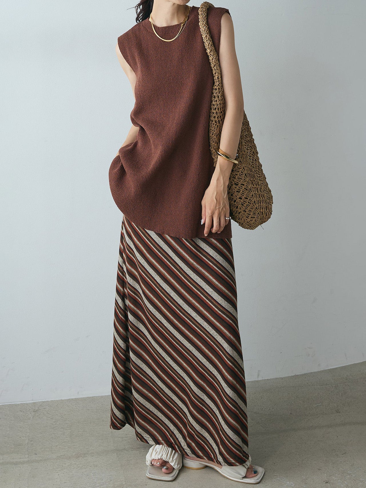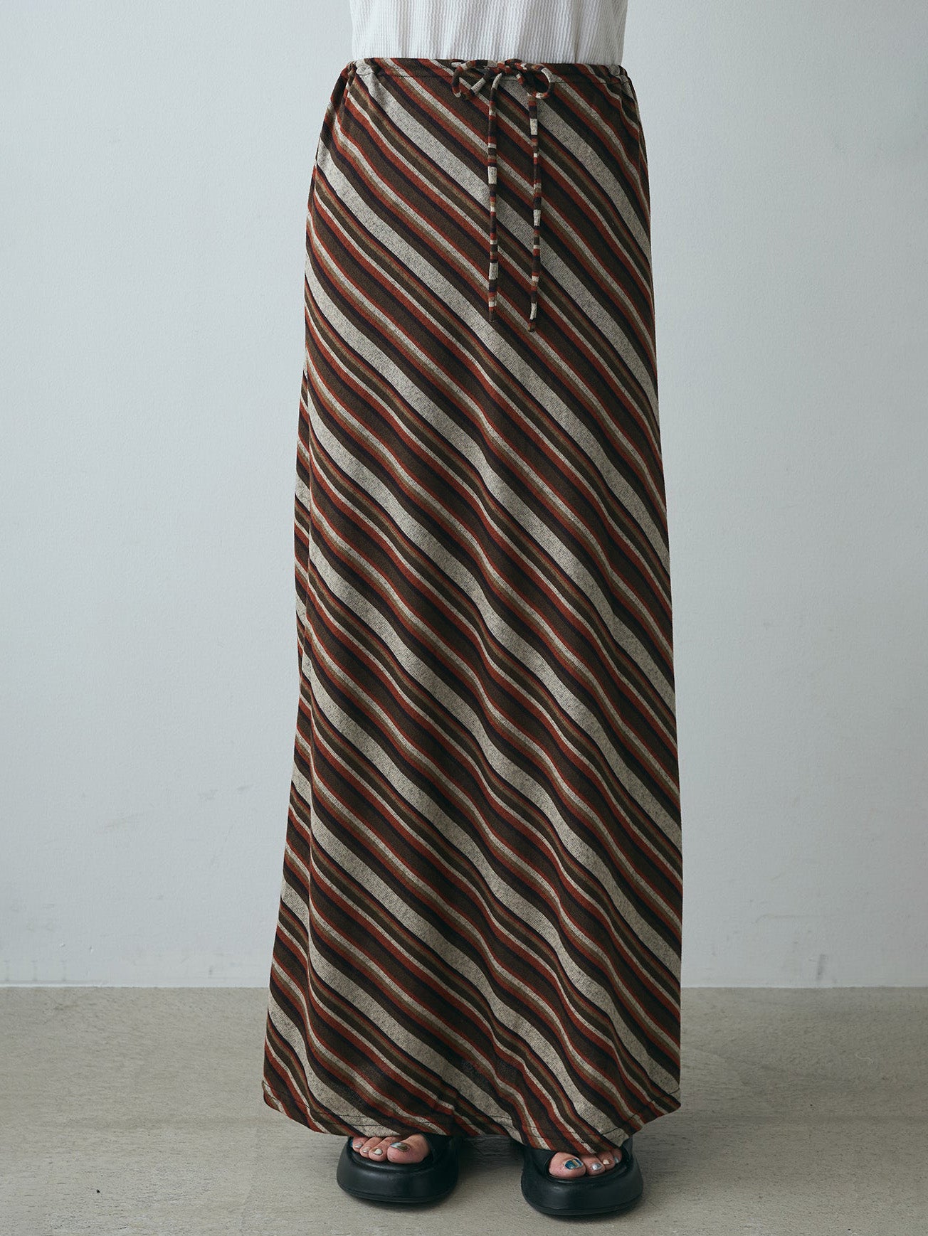 ☆斜めに入ったバイヤスボーダー柄が特徴的で、バイヤスカットならではの立体感で抜け感と女性らしさのバランスが絶妙です。