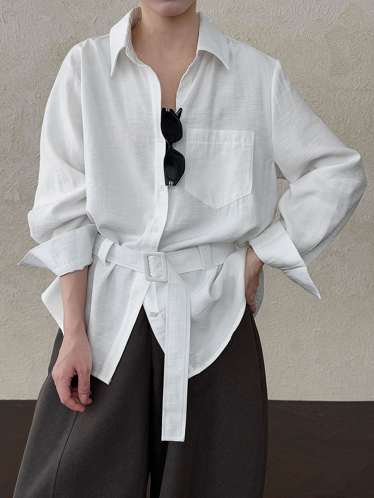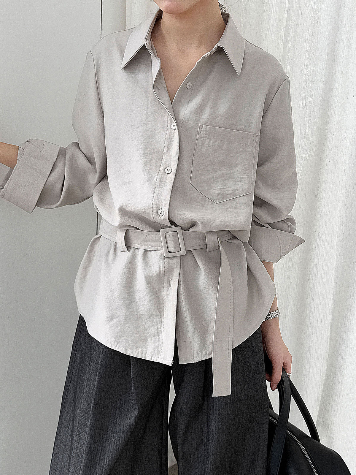 バックルベルテッドシャツ 2色入