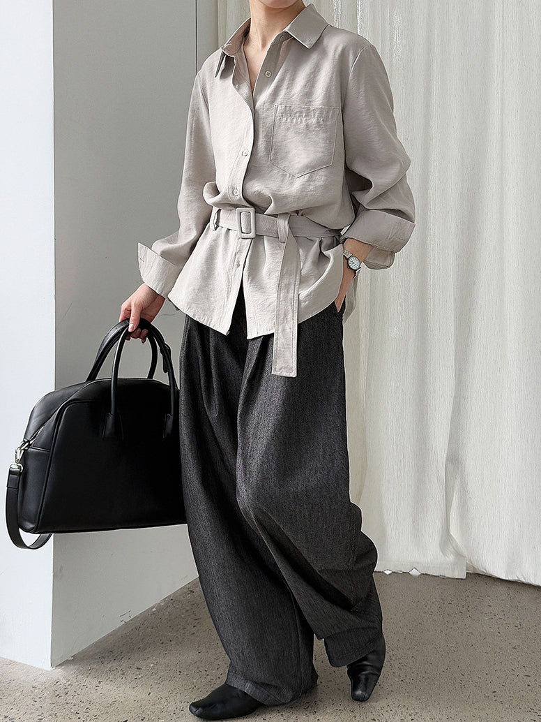 デザイン性とシルエットが魅力のバックルベルテッドシャツ。