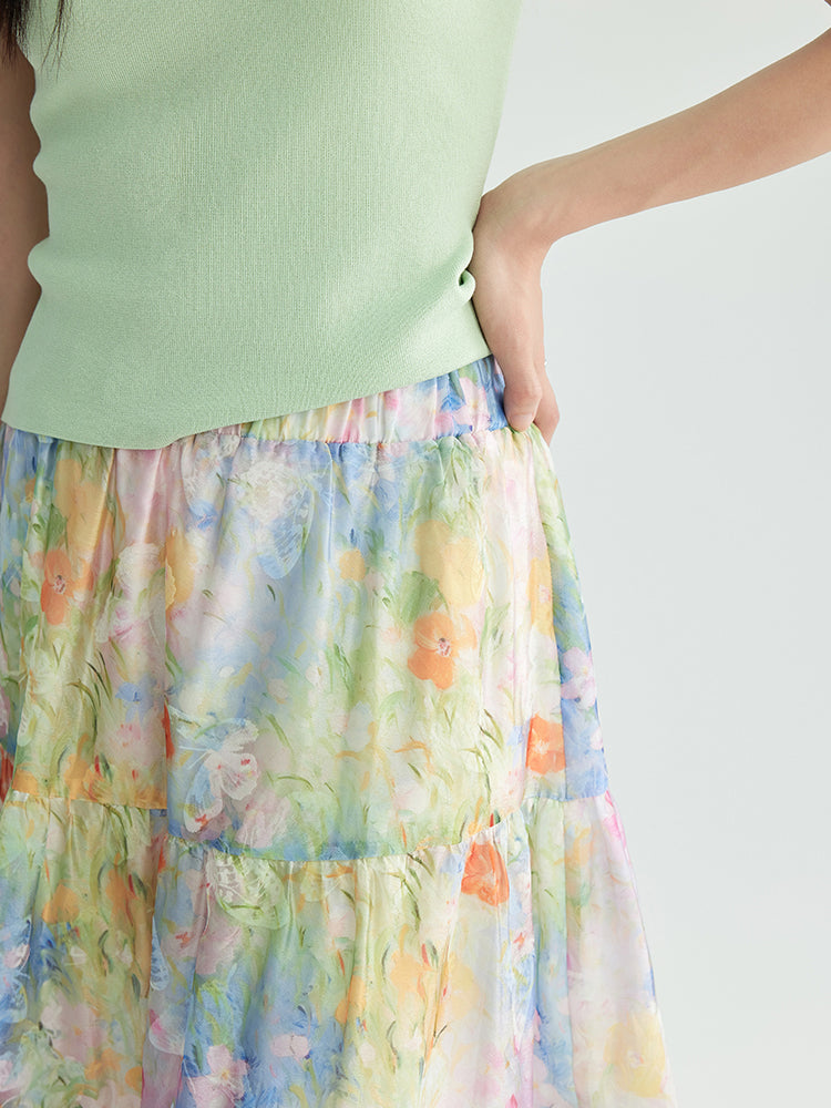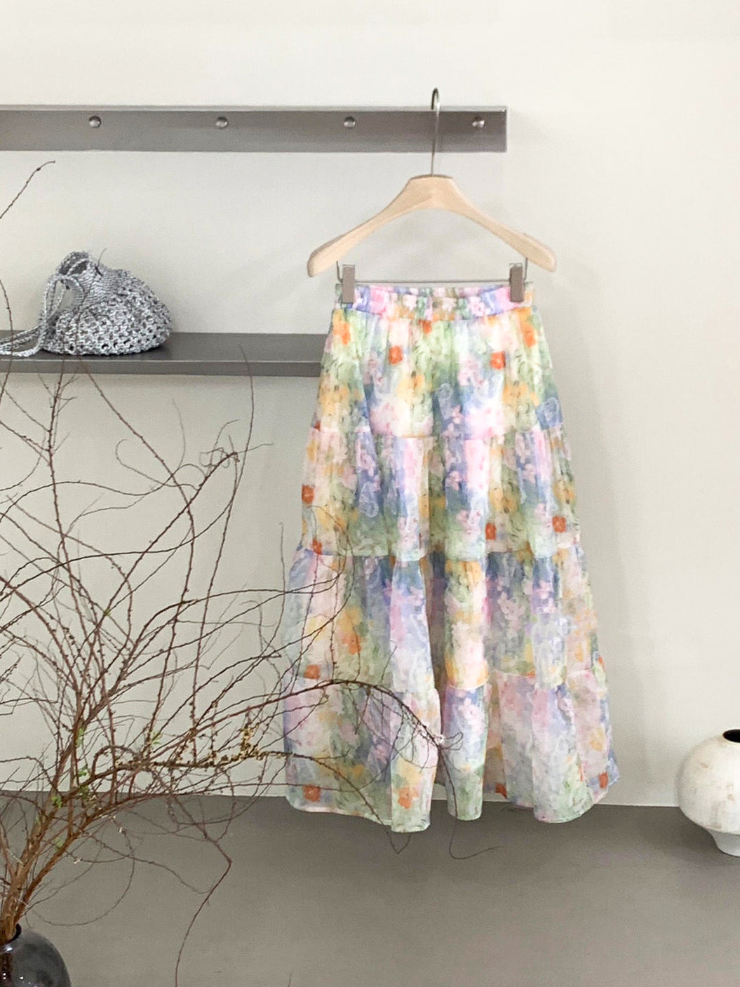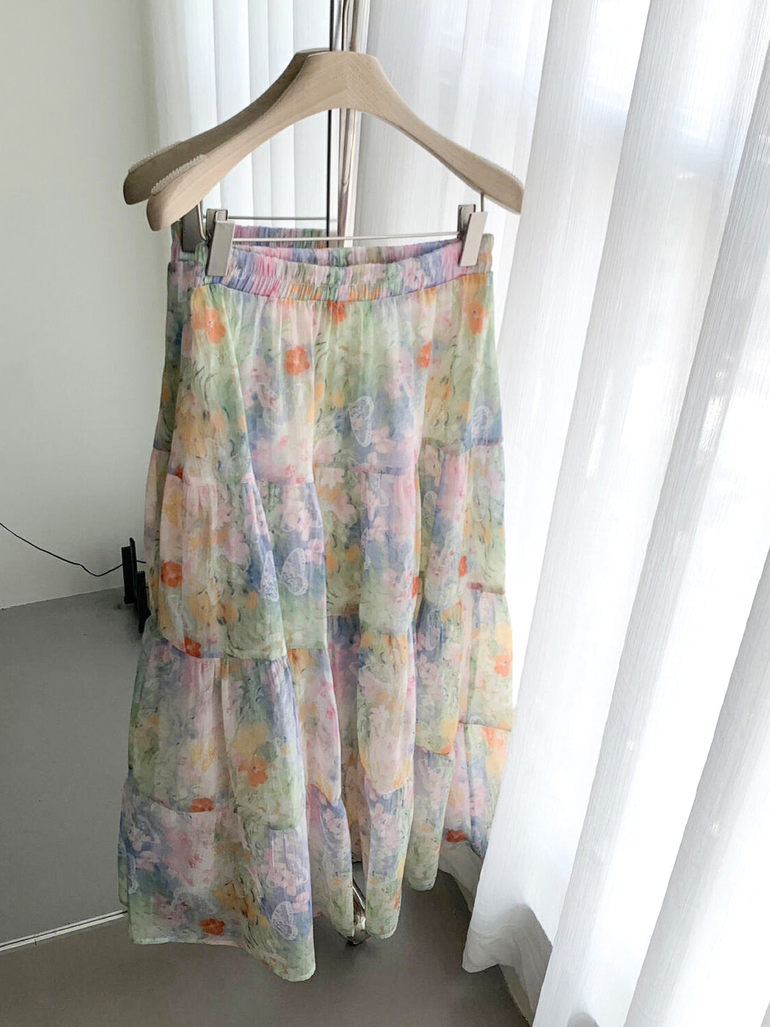 フラワープリントシフォンティアードスカート