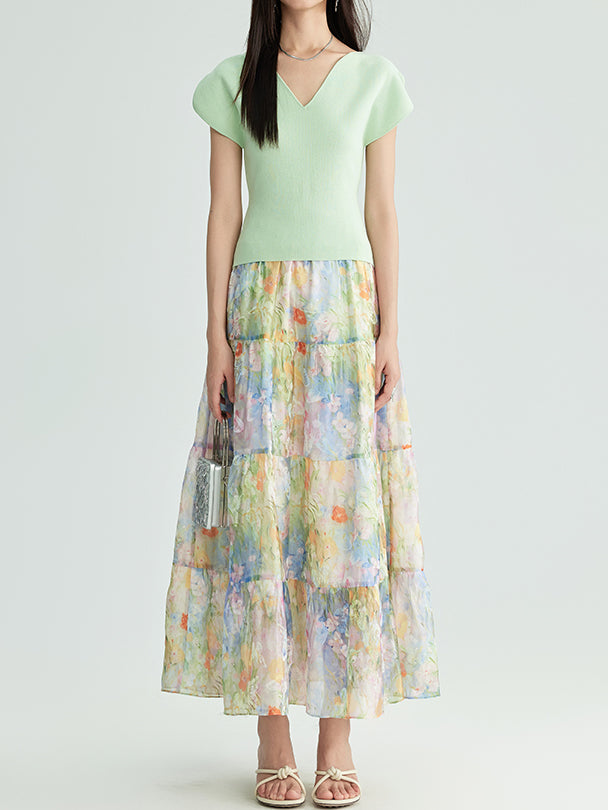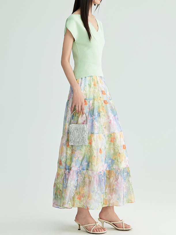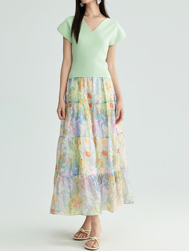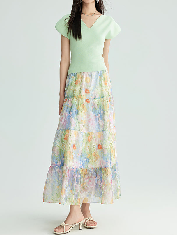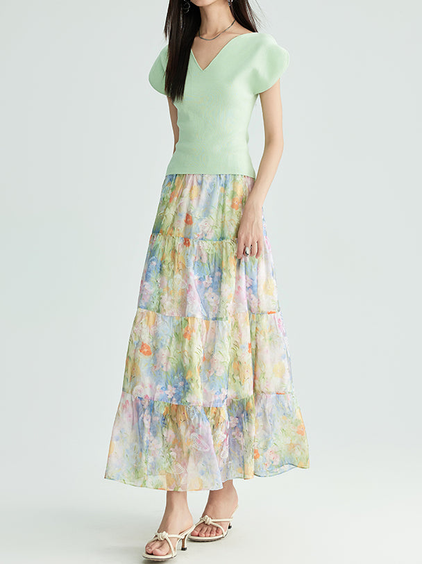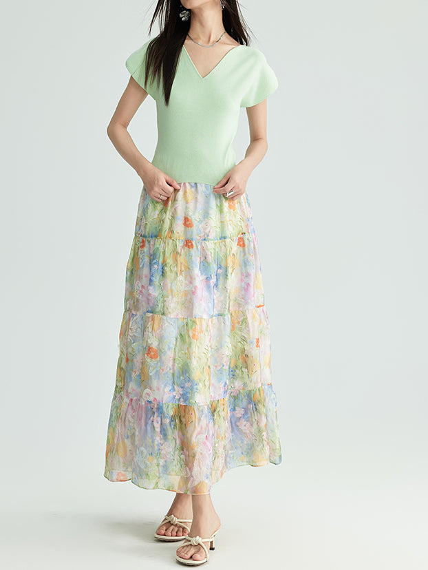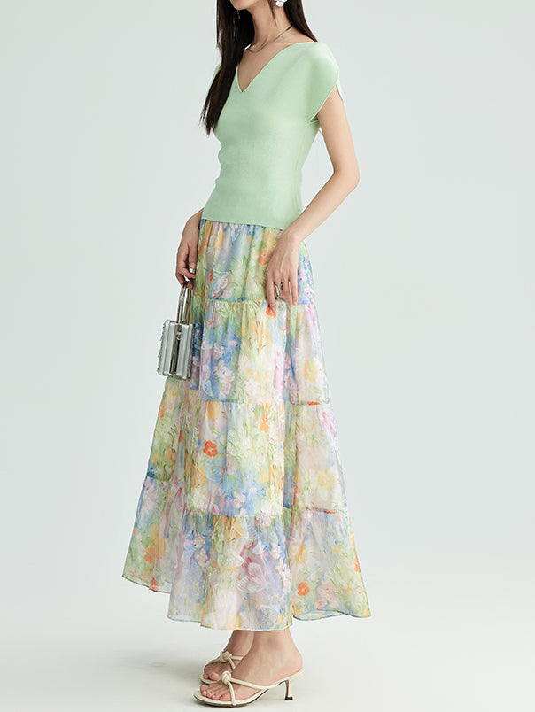 フラワープリントシフォンティアードスカート
