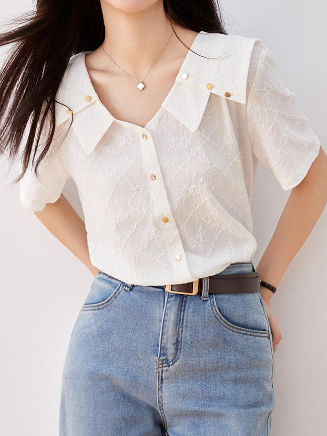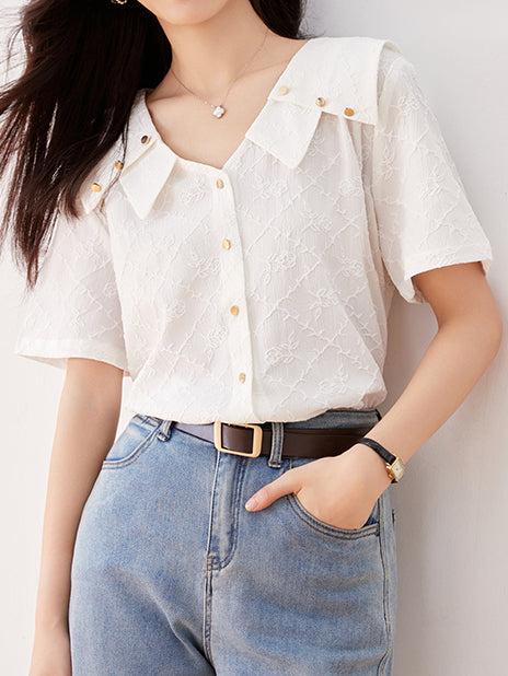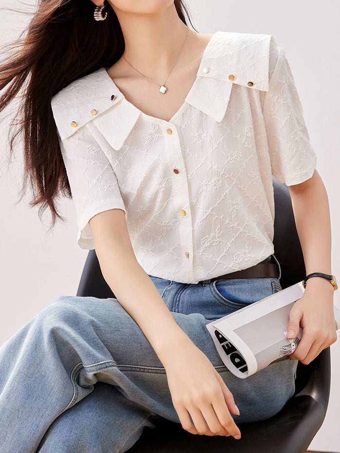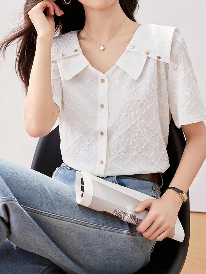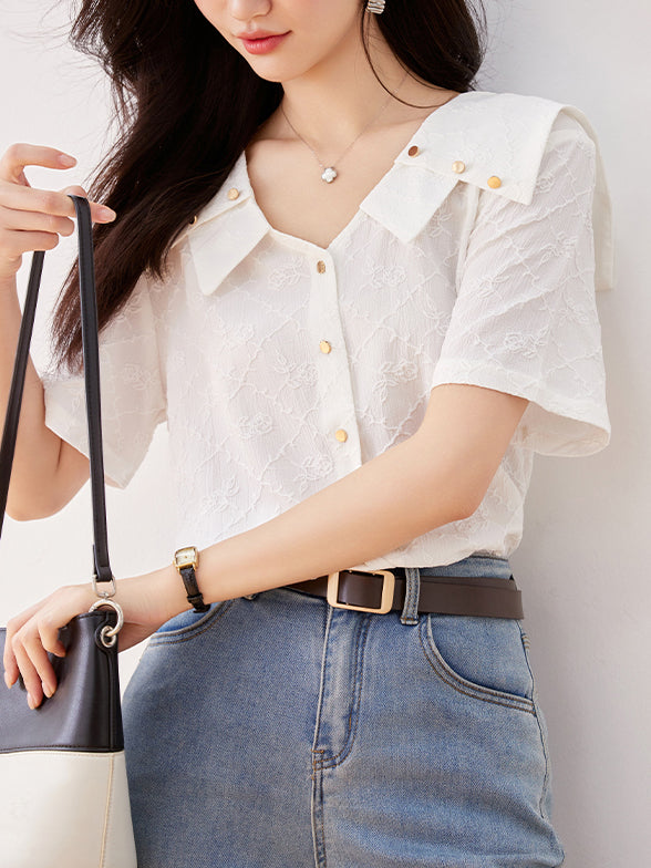 【大きめのフラットカラーが特徴的、メタルが存在感を放ち一枚】