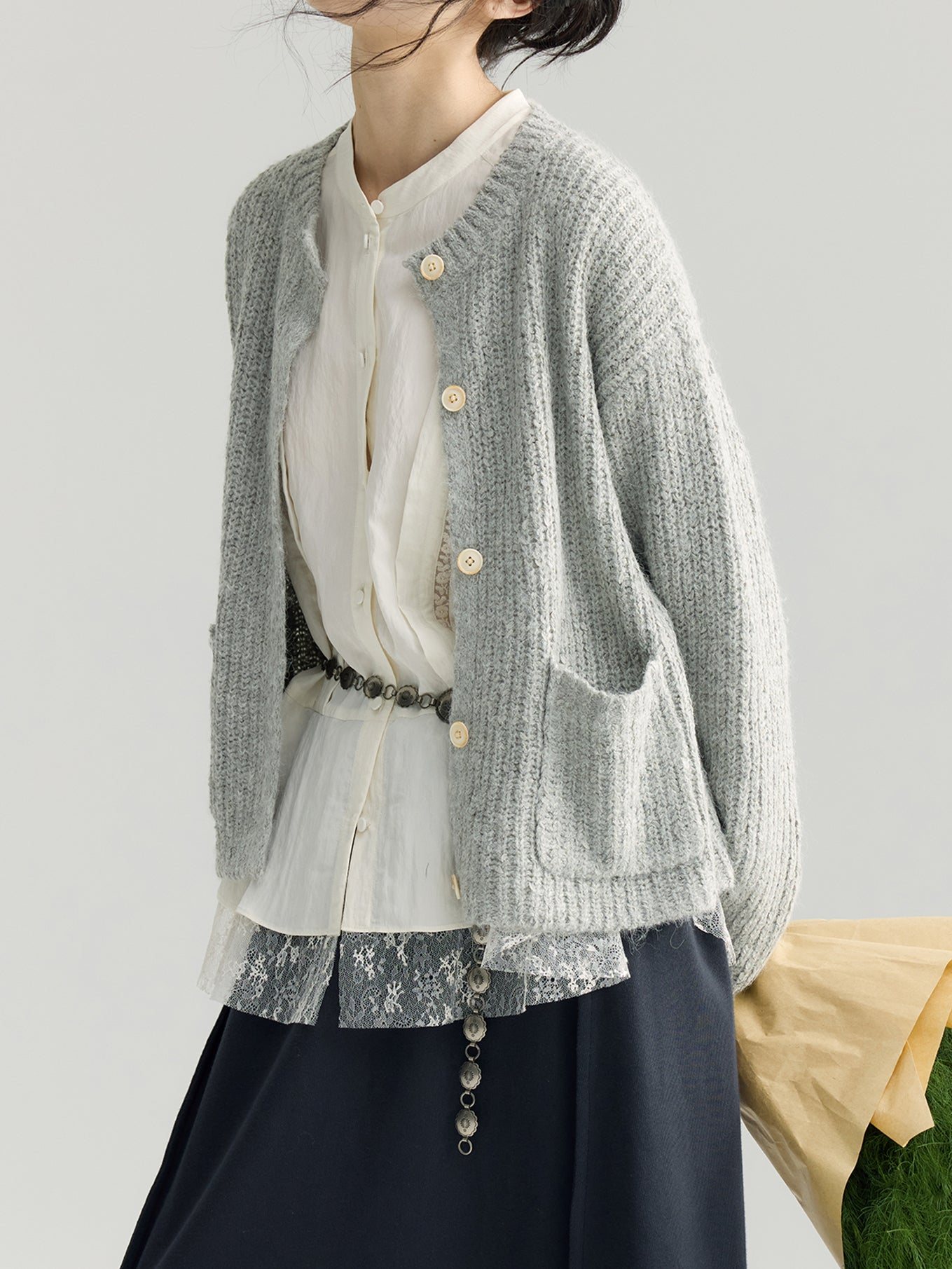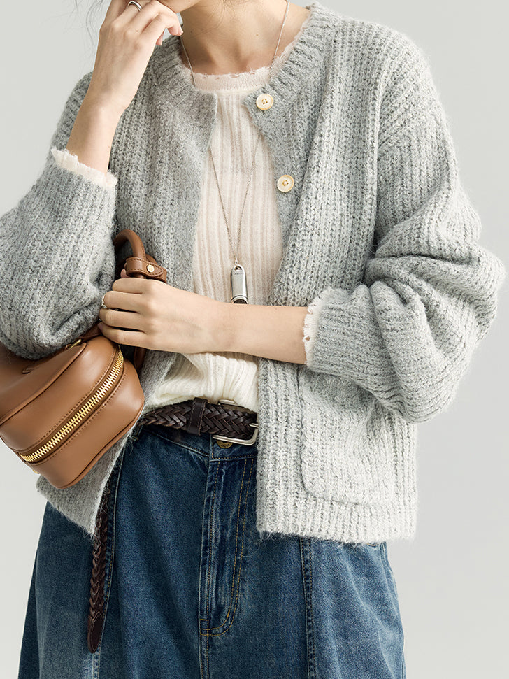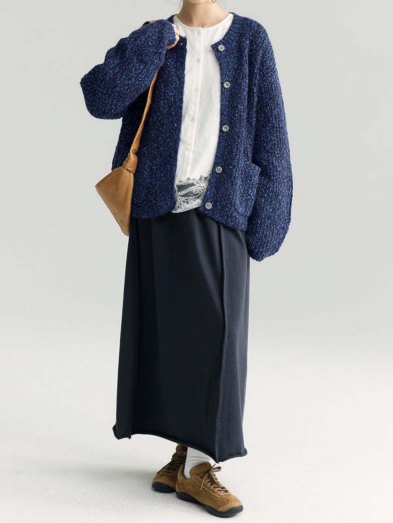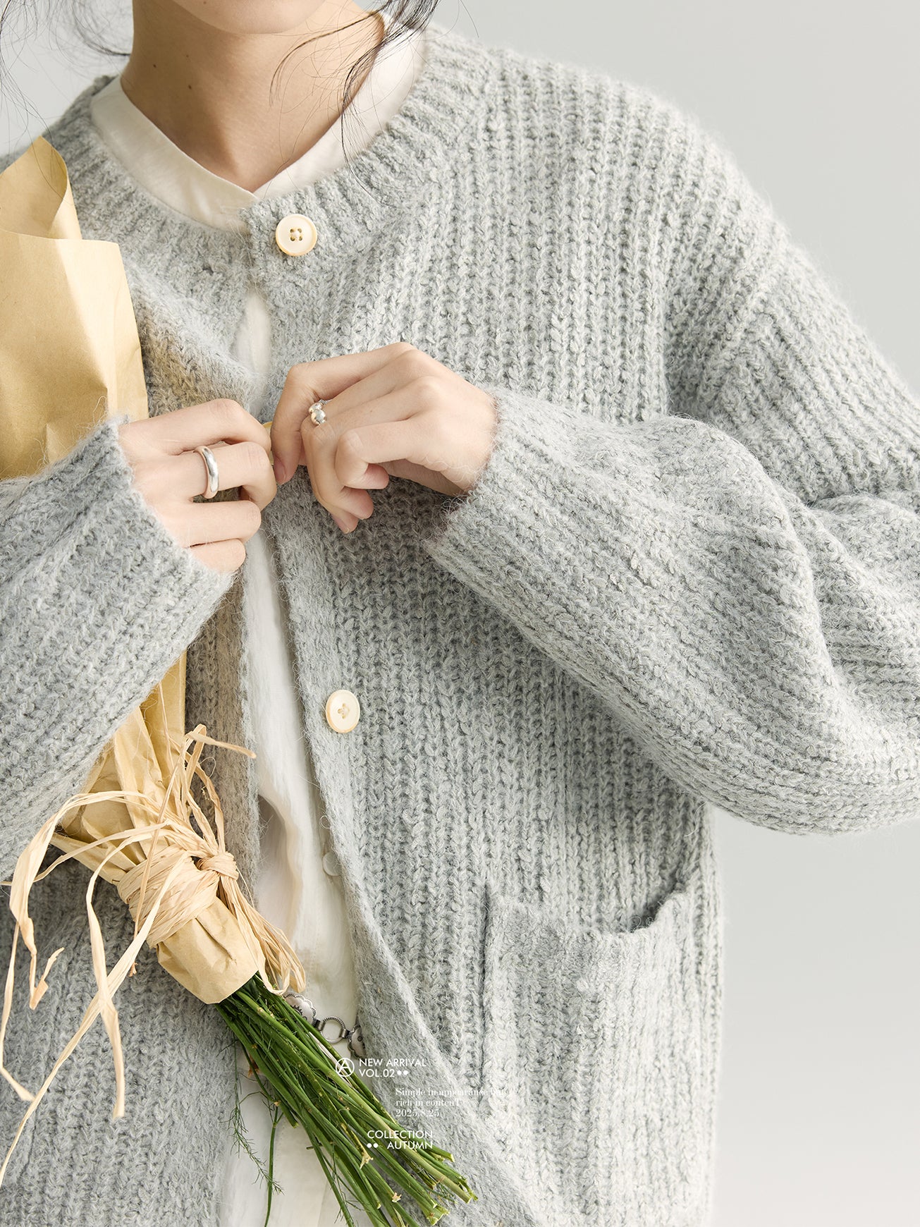 見た目だけでなく、着心地にもゆるっと癒されるニットカーディガン。