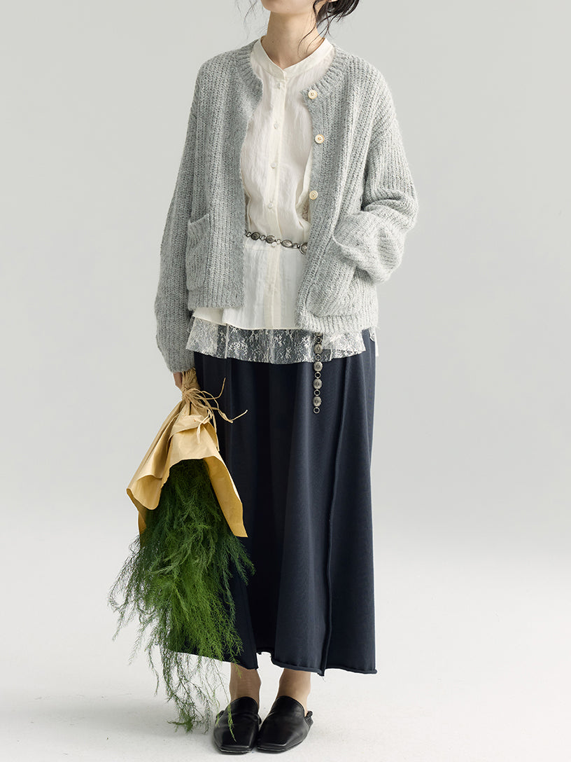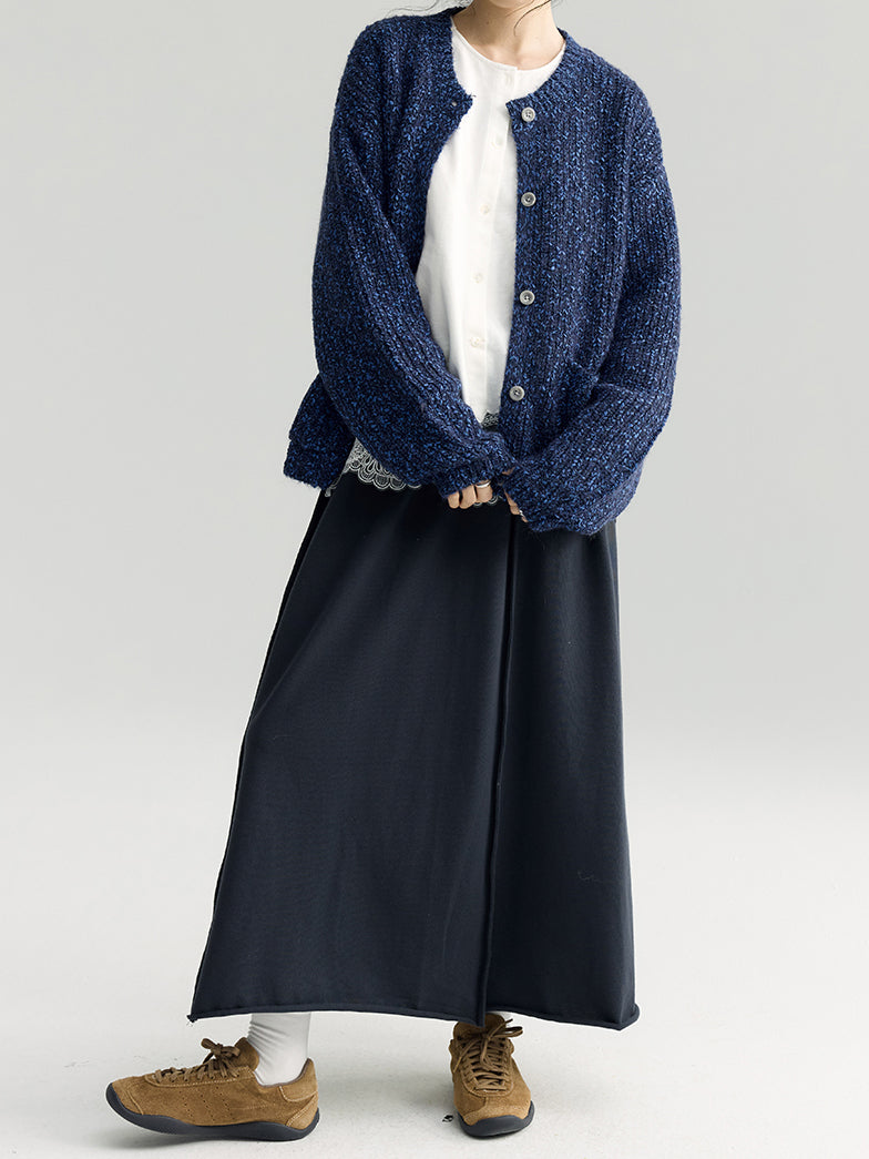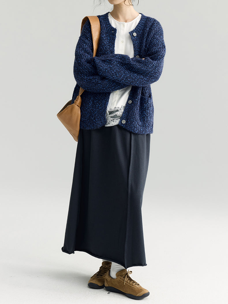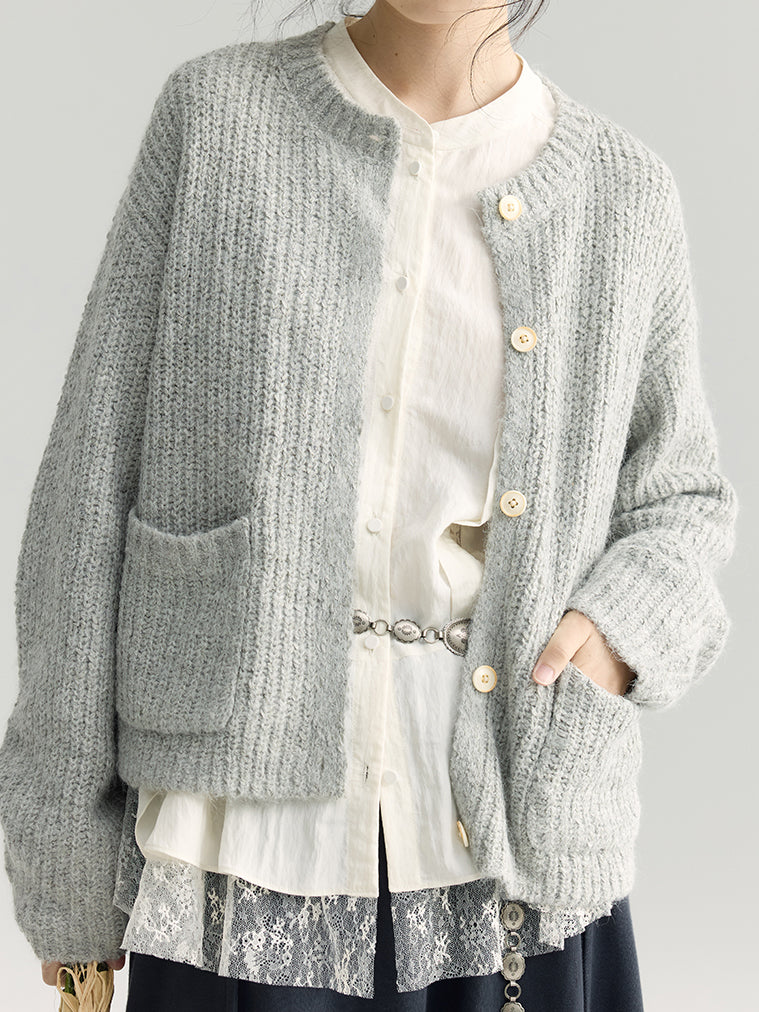 見た目だけでなく、着心地にもゆるっと癒されるニットカーディガン。