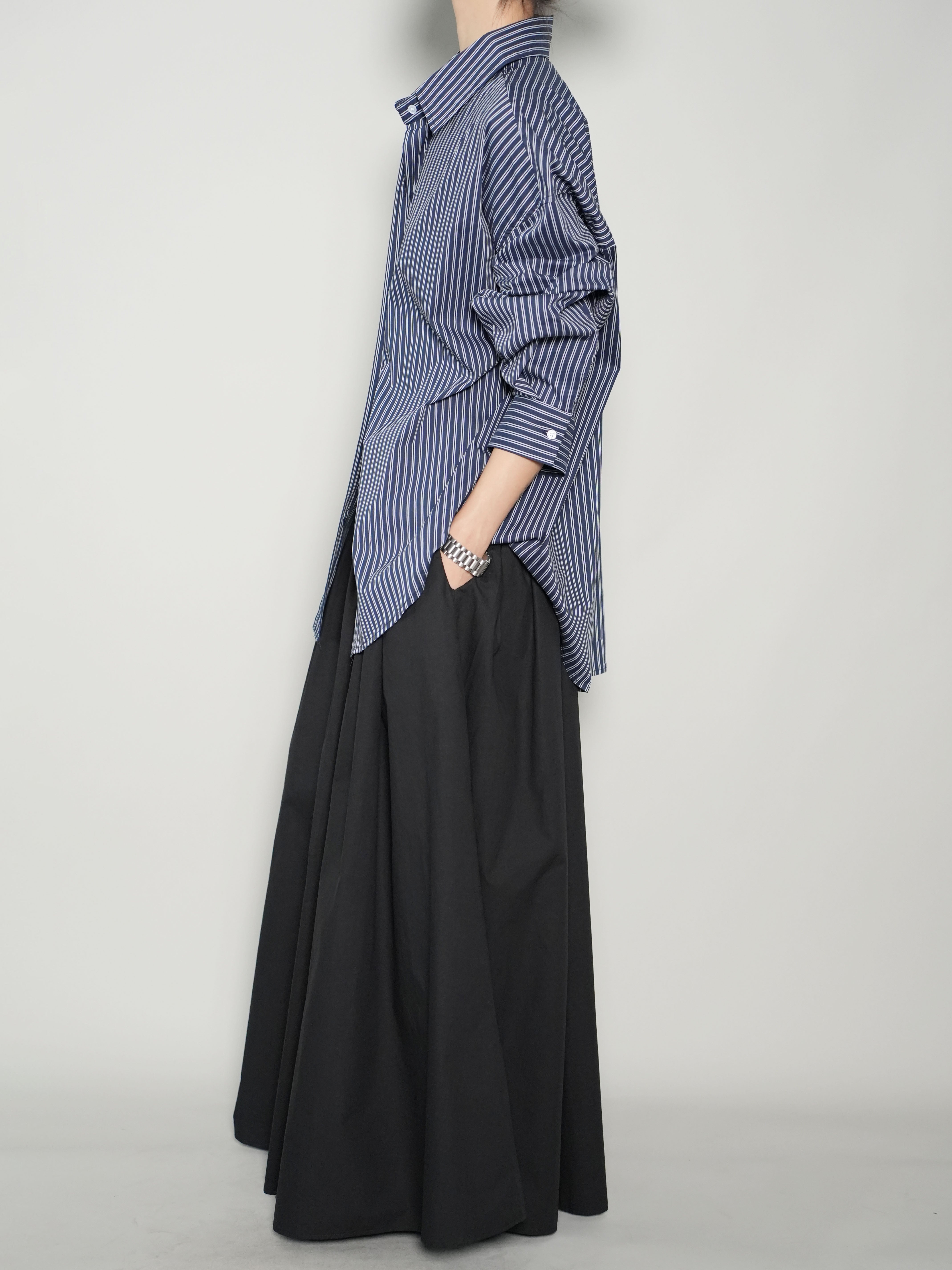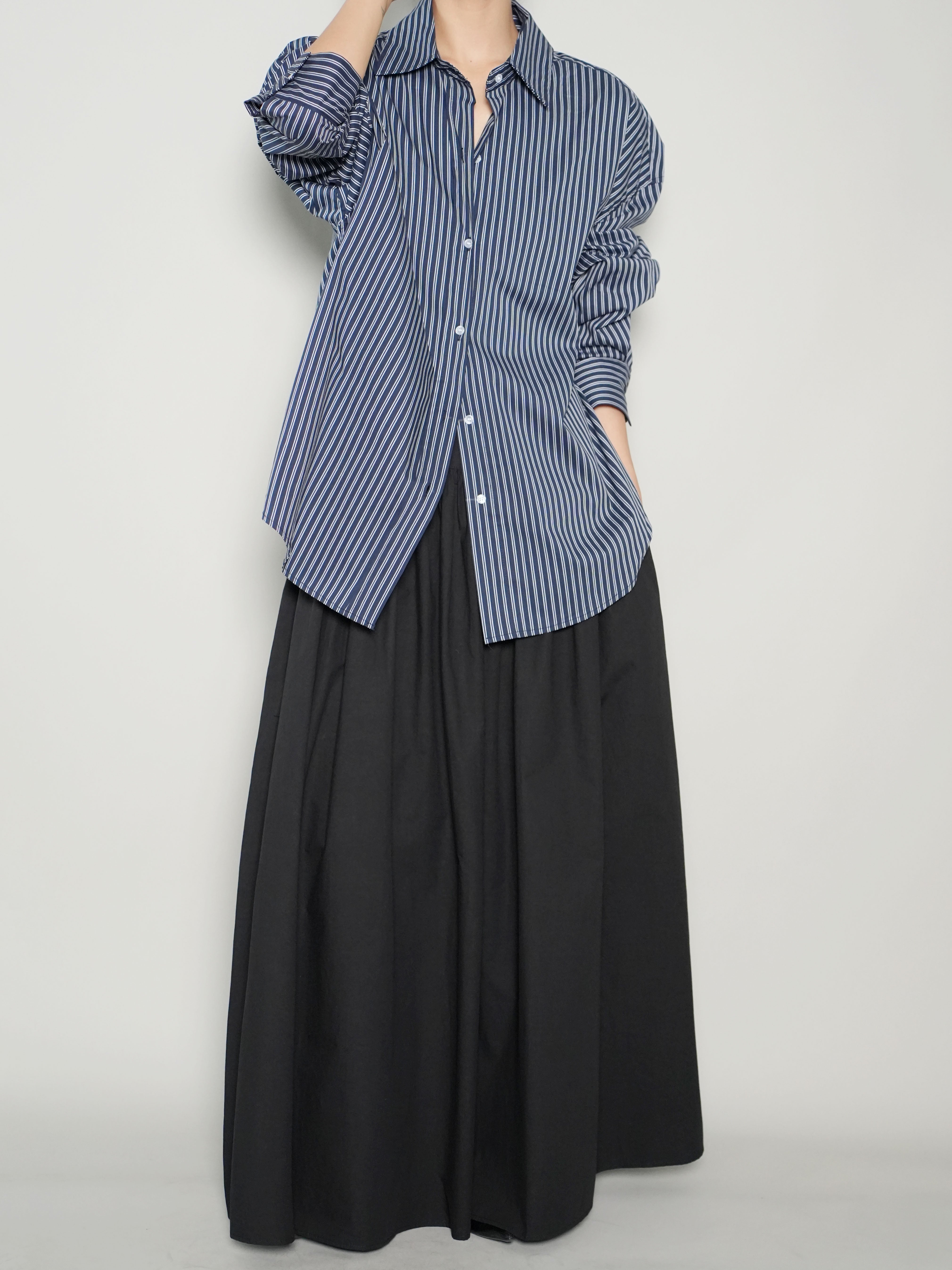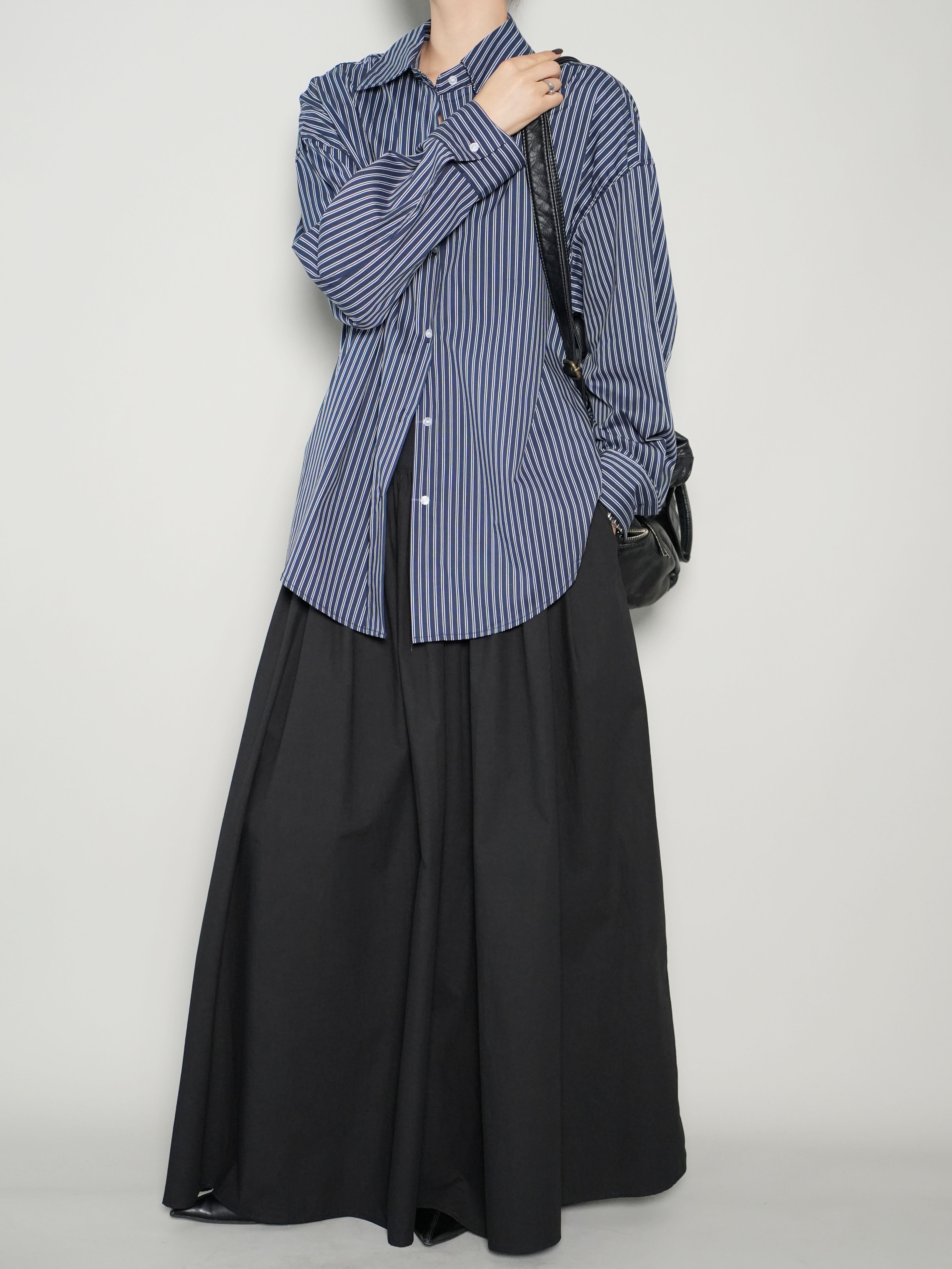 ・ボタンを全て留めてスカートにウエストインした少しレトロで女性らしいコーデも◎