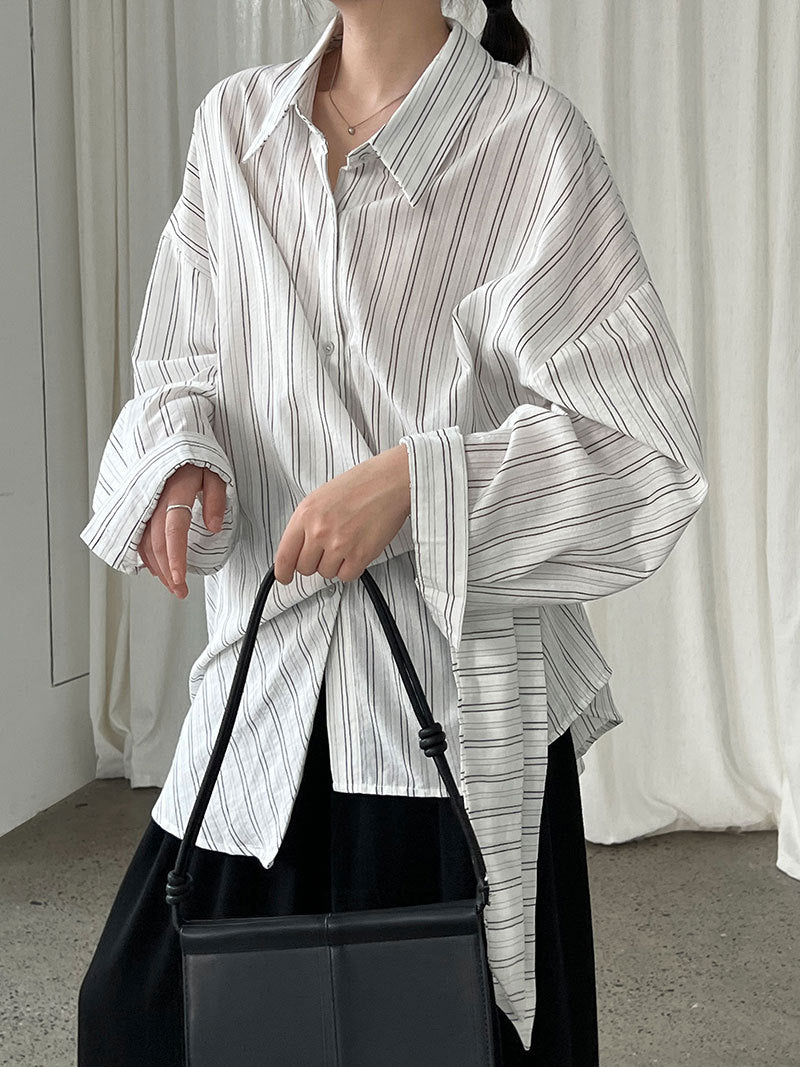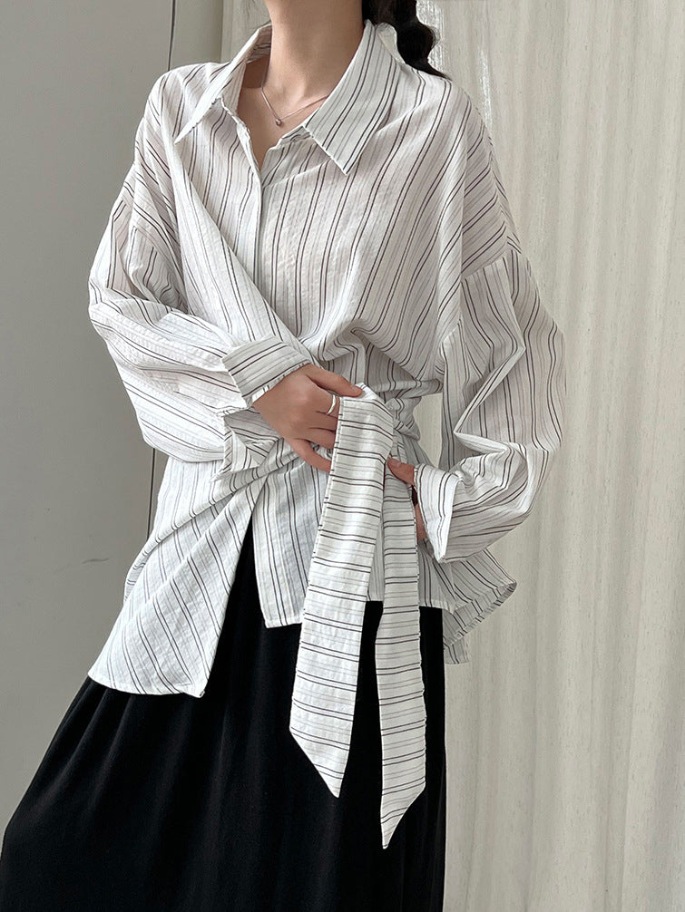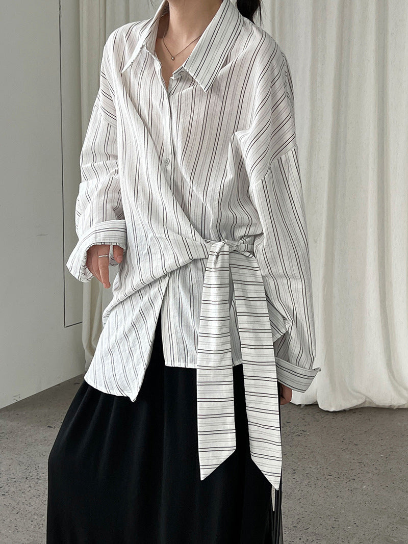 サイドリボンストライプシャツ 2色入