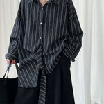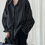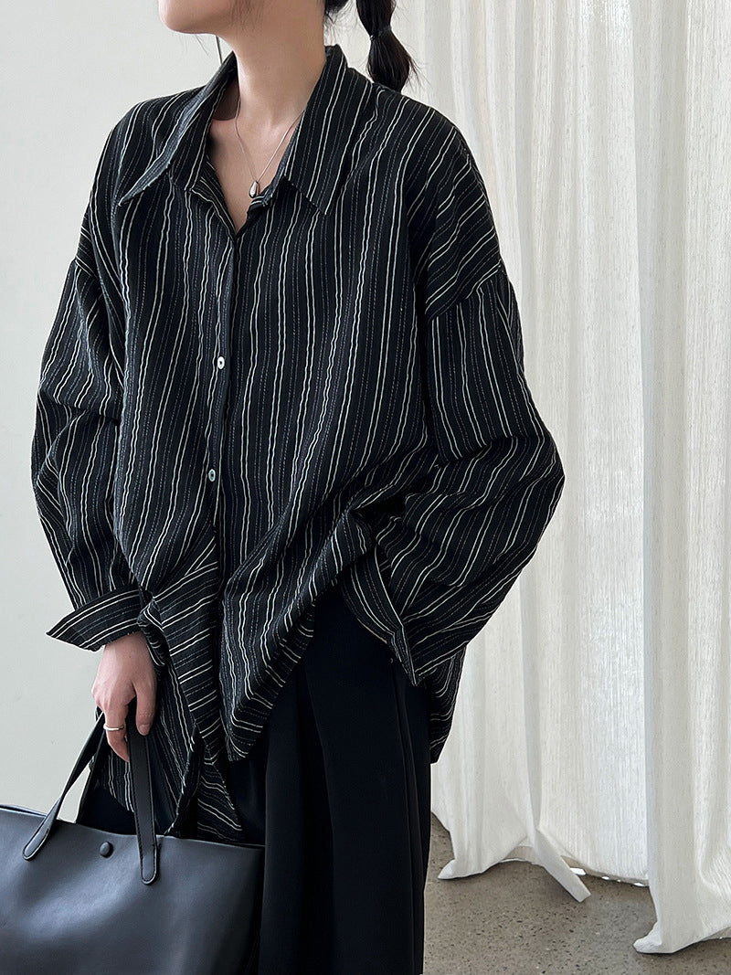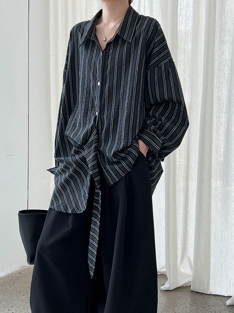 秋に一枚で着たい、ストライプのデザインシャツ。