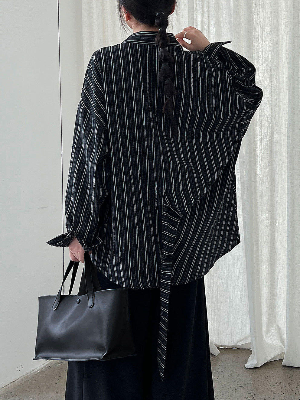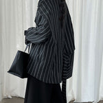 ☆モノトーンカラーのストライプ柄はカジュアルな印象にならずキレイめに。