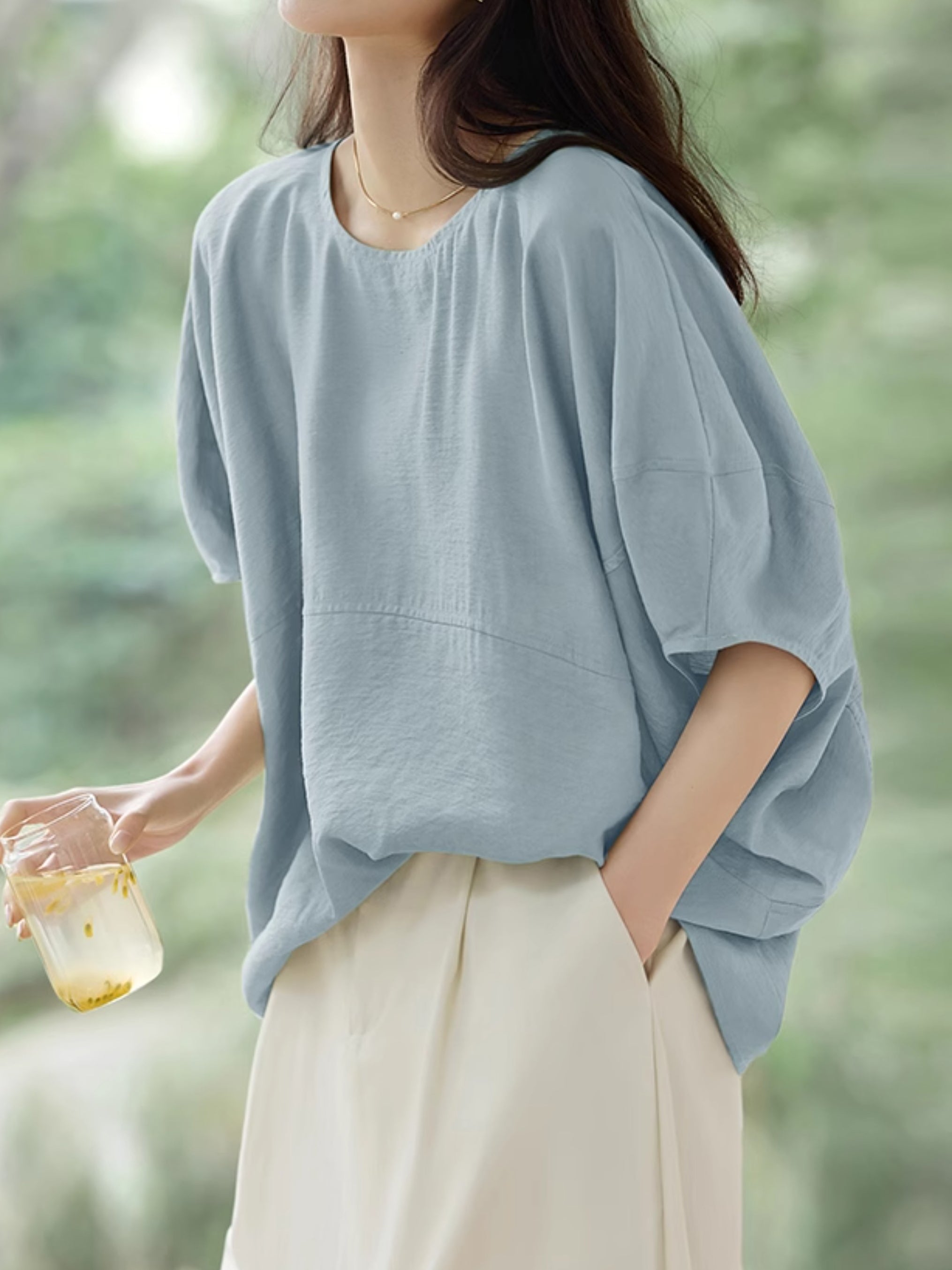 ナチュラルリネンフレンチスリーブブラウス 3色入