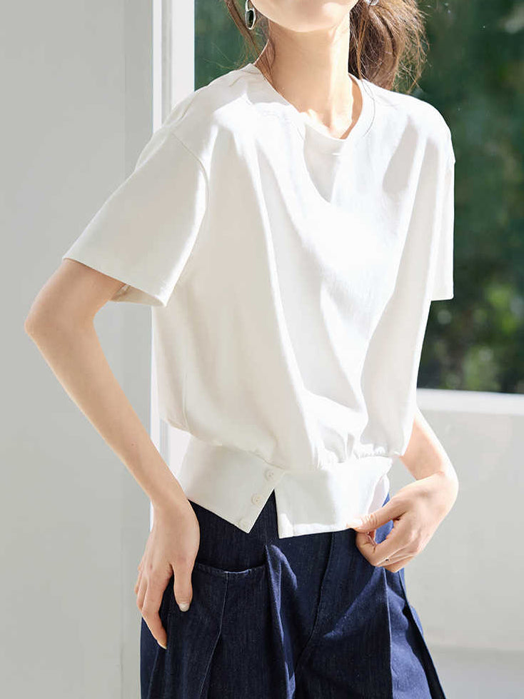 スキッパー衿クロワッサンスリーブシャツ 2色入