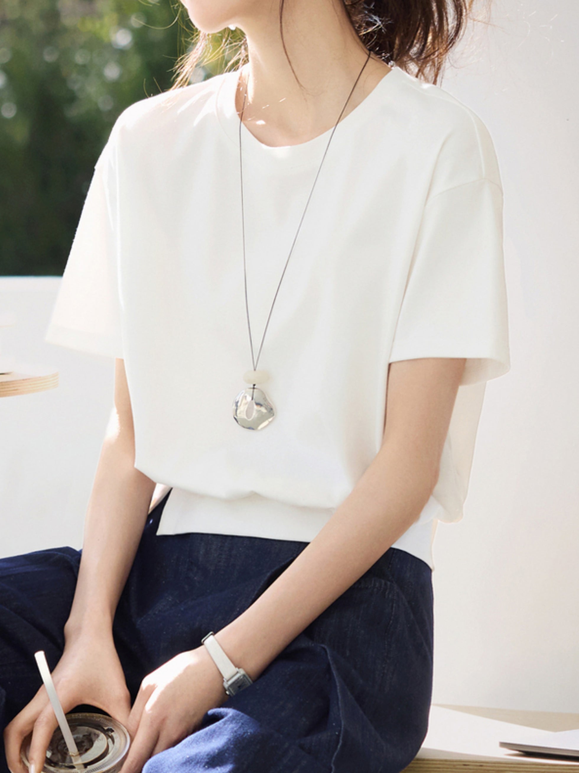 ラウンド半袖スウェットカットソー+ダイヤゴナルプレスイージースカートSET 2色入