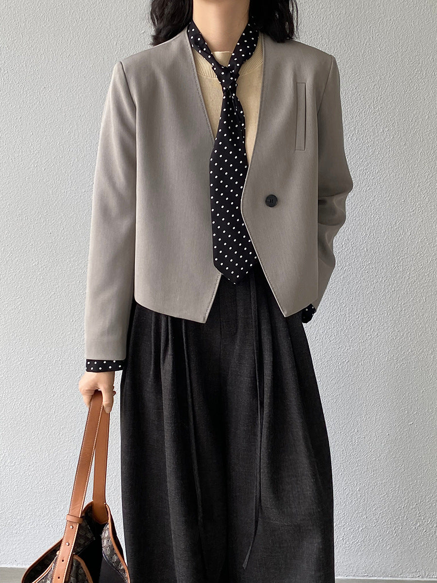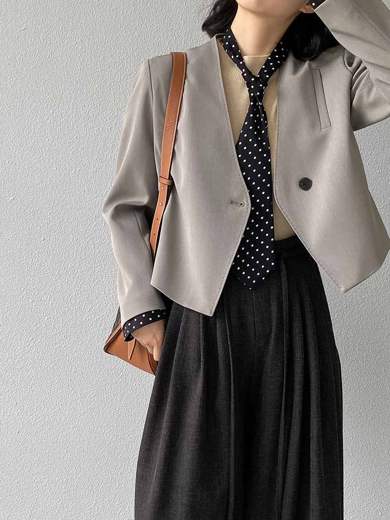 ドットネックタイ付きVネックテーラードジャケット 2色入