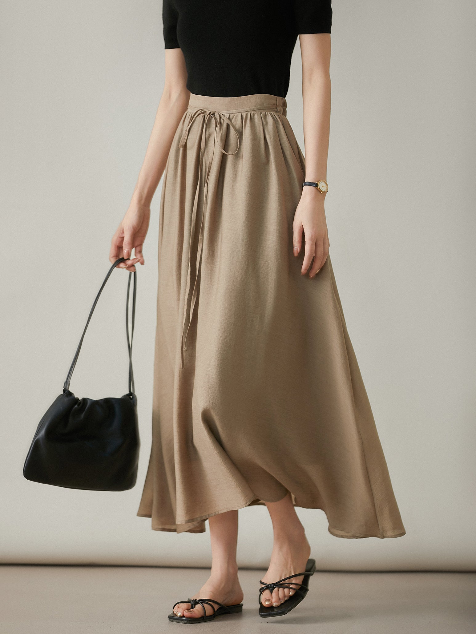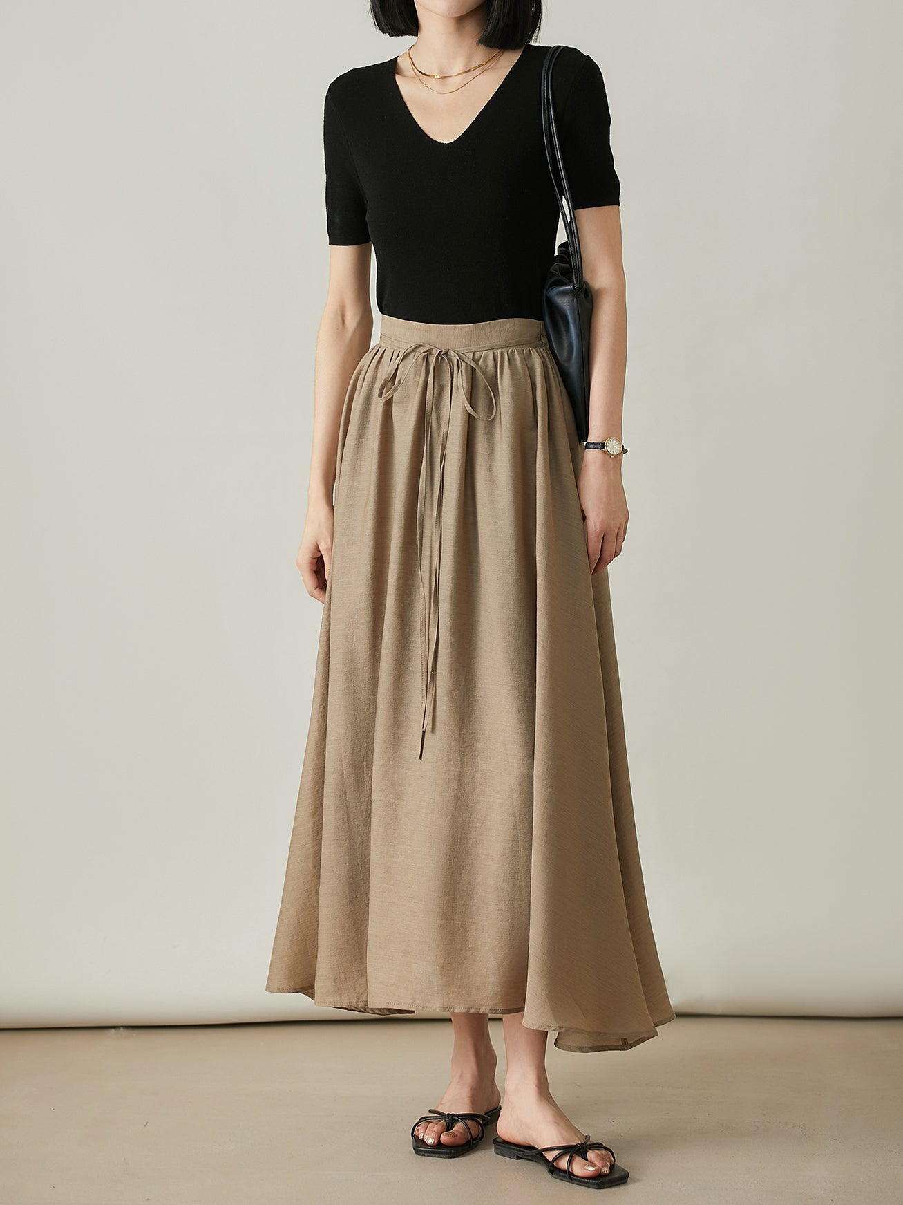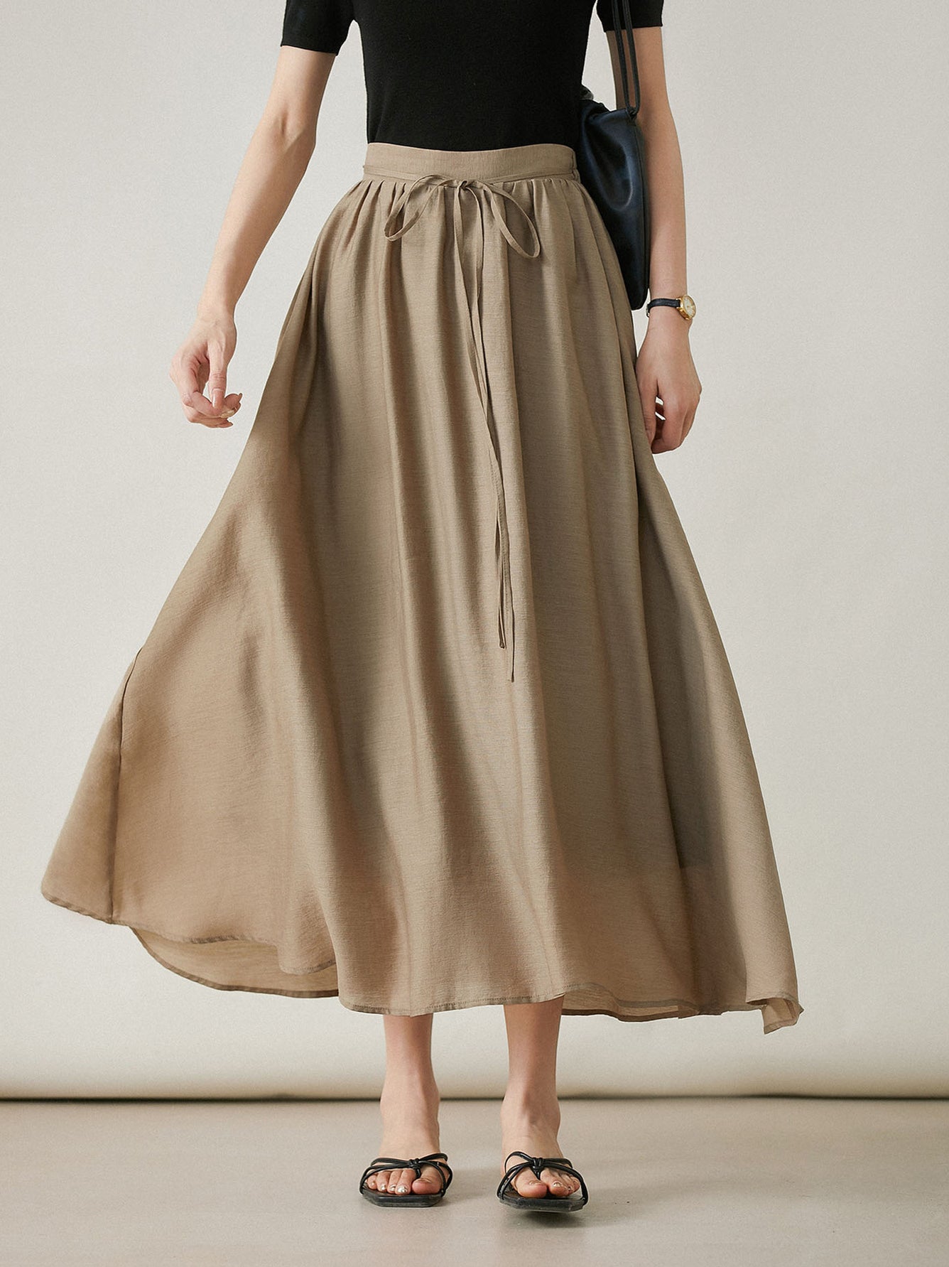 【大人カジュアルにぴったりなシアーリボン紐フレアスカート】