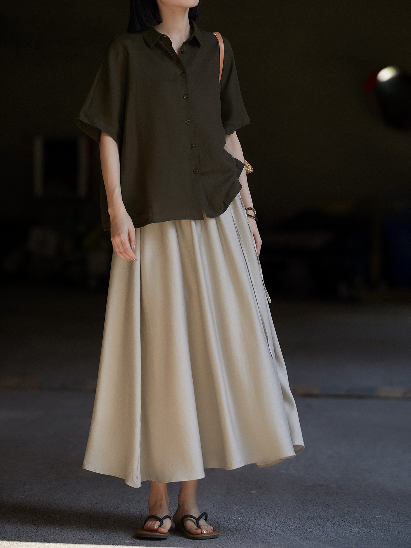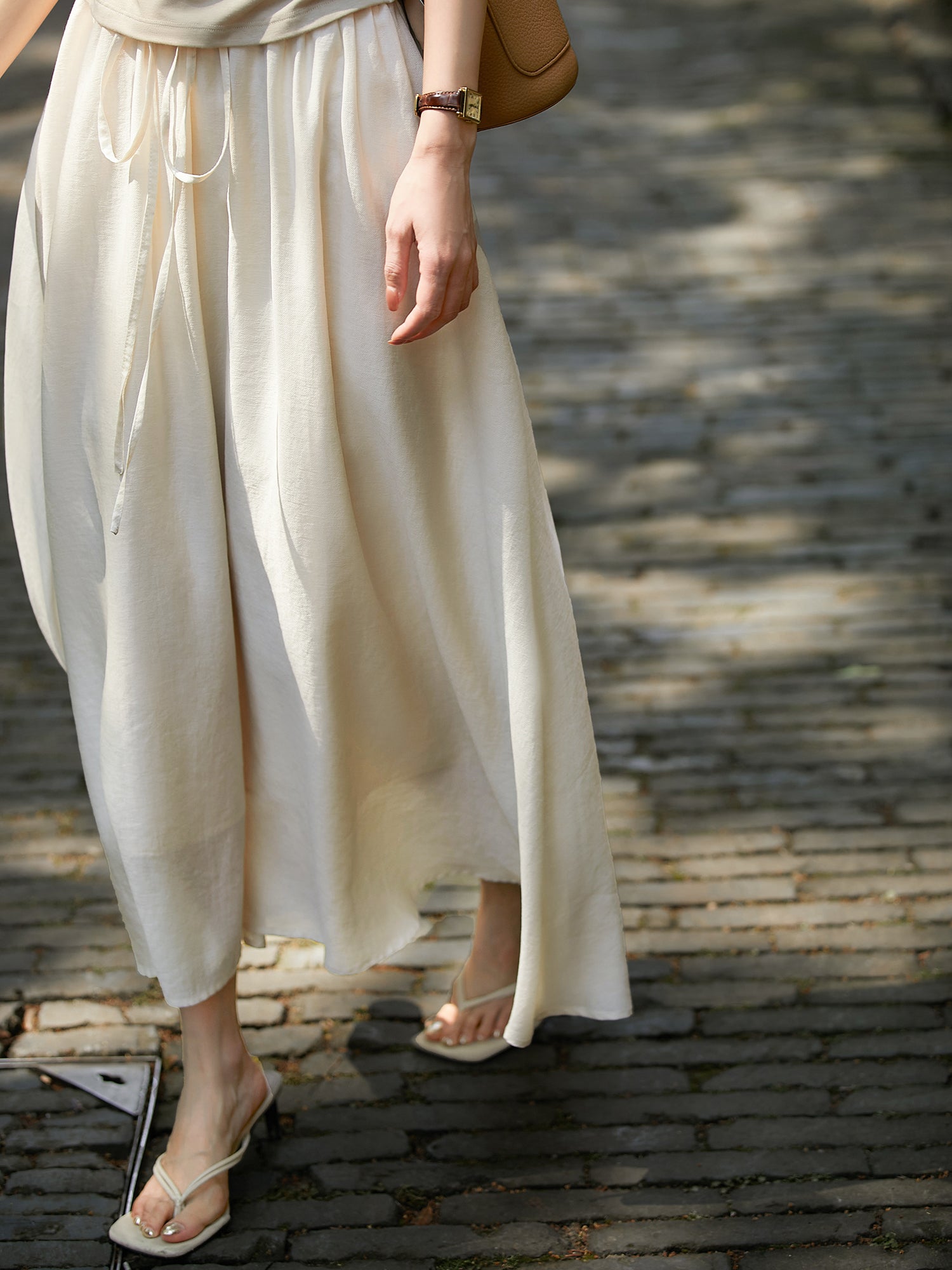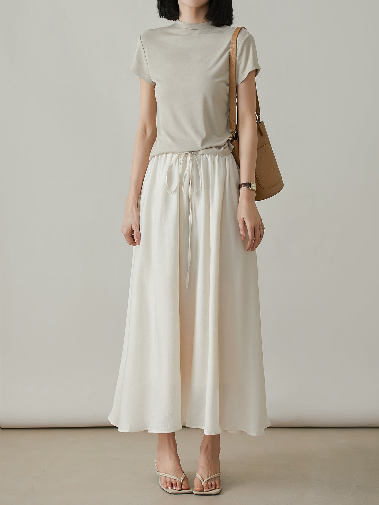 【大人カジュアルにぴったりなシアーリボン紐フレアスカート】