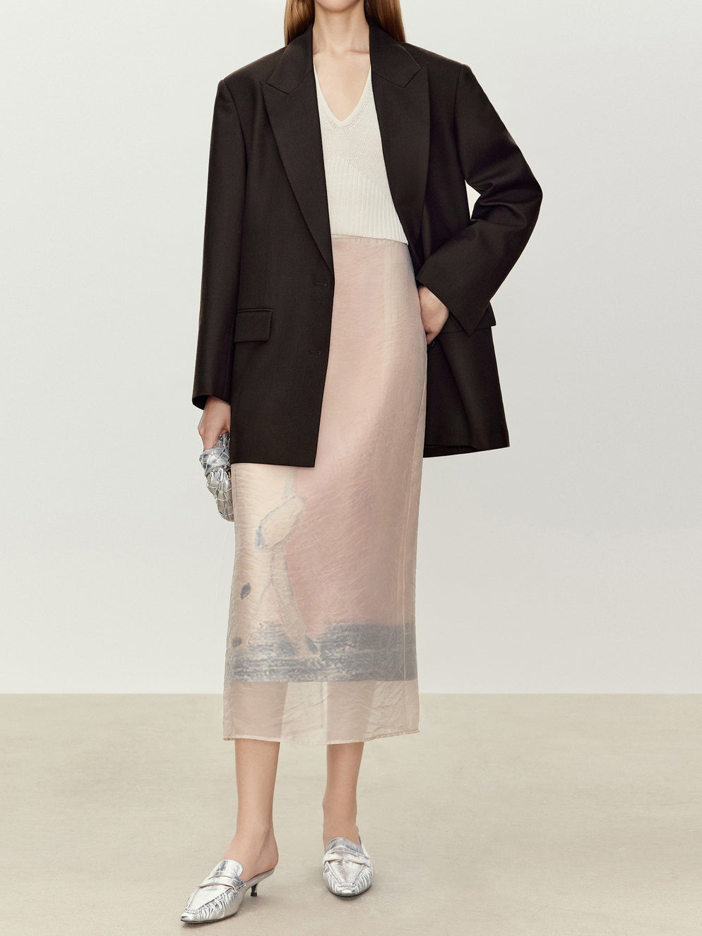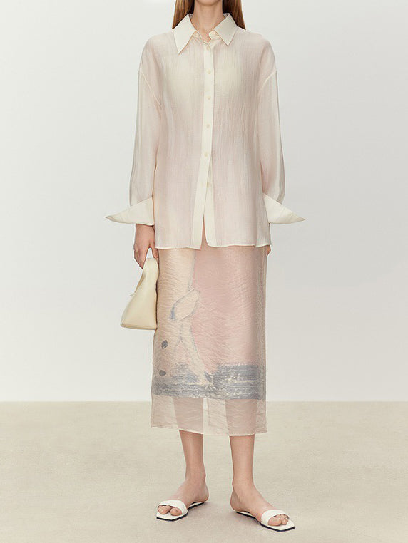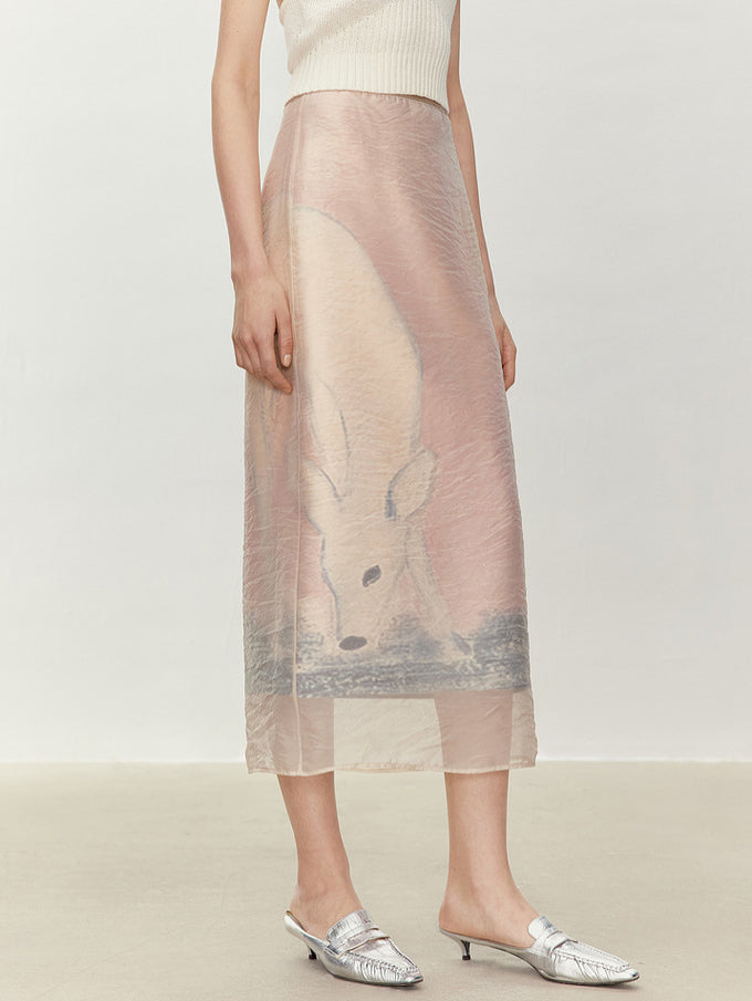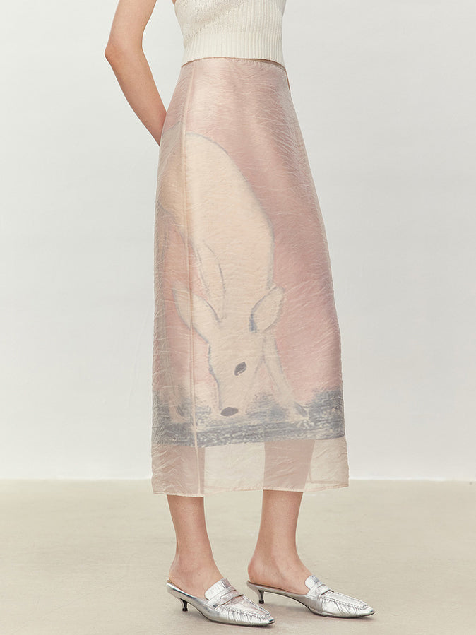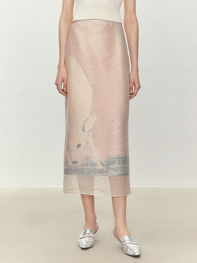 アニマル柄のオーガンジー素材を重ねた、華やかで存在感のあるナロースカート。