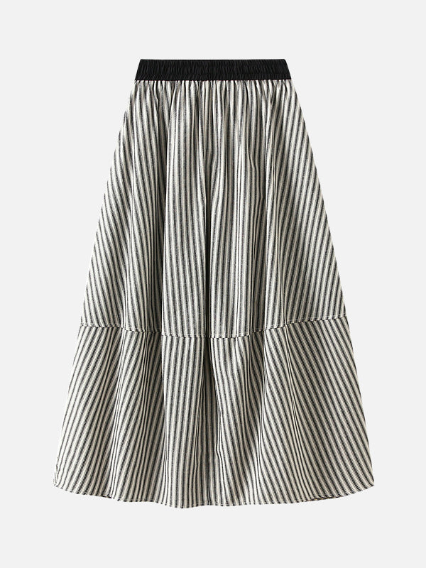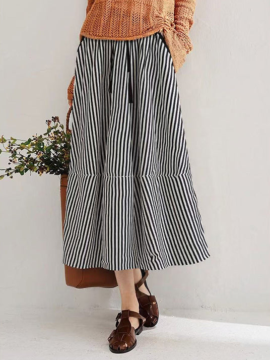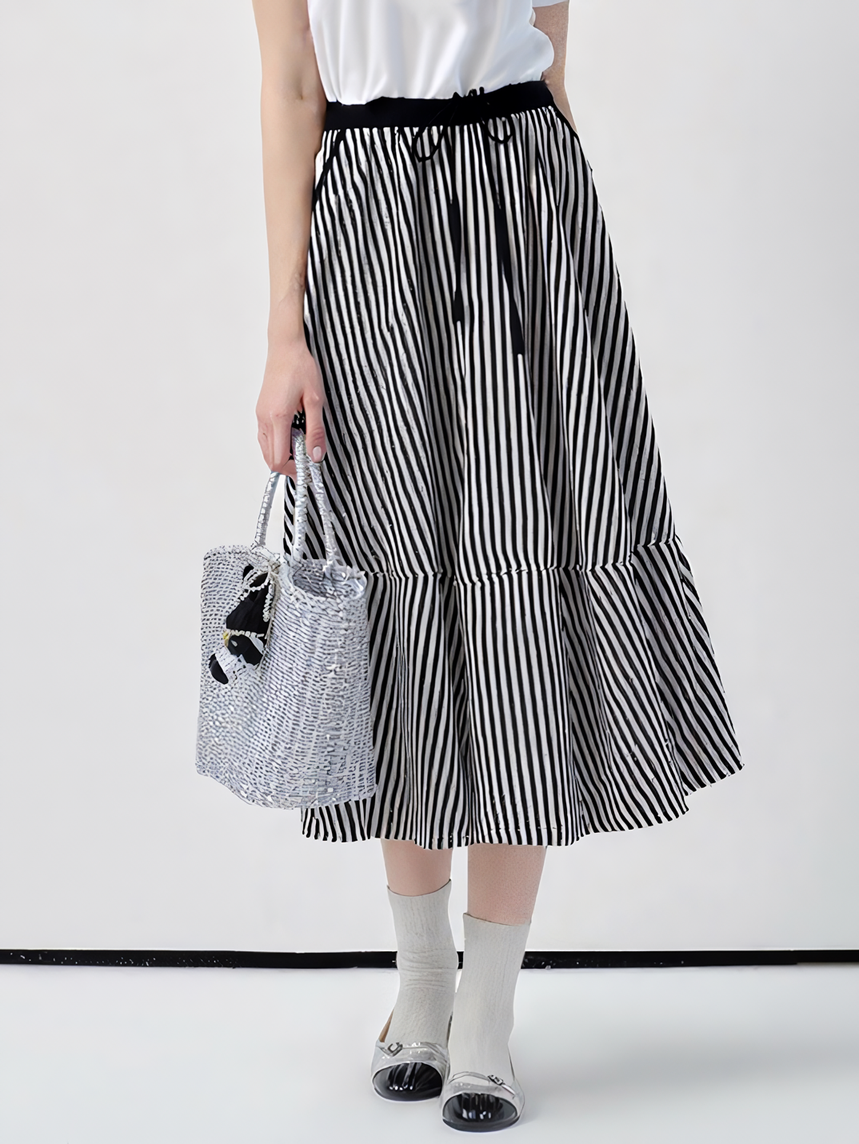 旬のカジュアルな雰囲気を漂いストライプスカート。